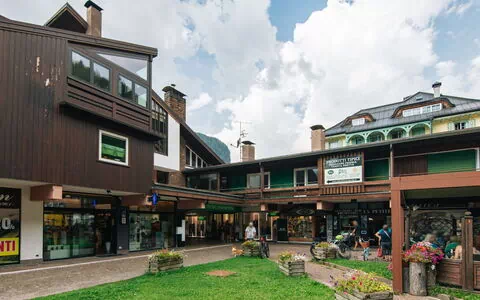 The apartment house is conveniently located in a central position within the city of Canazei. While public parking is available 300 meters away, the property's proximity to various amenities, such as a supermarket, restaurant, and bar, ensures a comfortable and convenient stay.