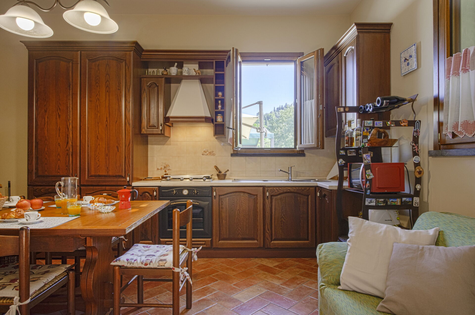 Upon arrival you’ll find a nice clean well-maintained property ideal for a peaceful holiday in Tuscany. For your enjoyment you will find a private garden where you can relax while enjoying a nice cold beverage after a hectic day of sightseeing. A real benefit of renting a home, instead of multiple hotel rooms, is the ability to relax after a busy day of sightseeing with family and friends. Enjoy a meal together along with some local wine to finish the day. If you enjoy cooking for family and friends there is a well-equipped kitchen including coffee machine, microwave, toaster and refrigerator, as well as, plenty of tableware and cutlery for up to four people.
