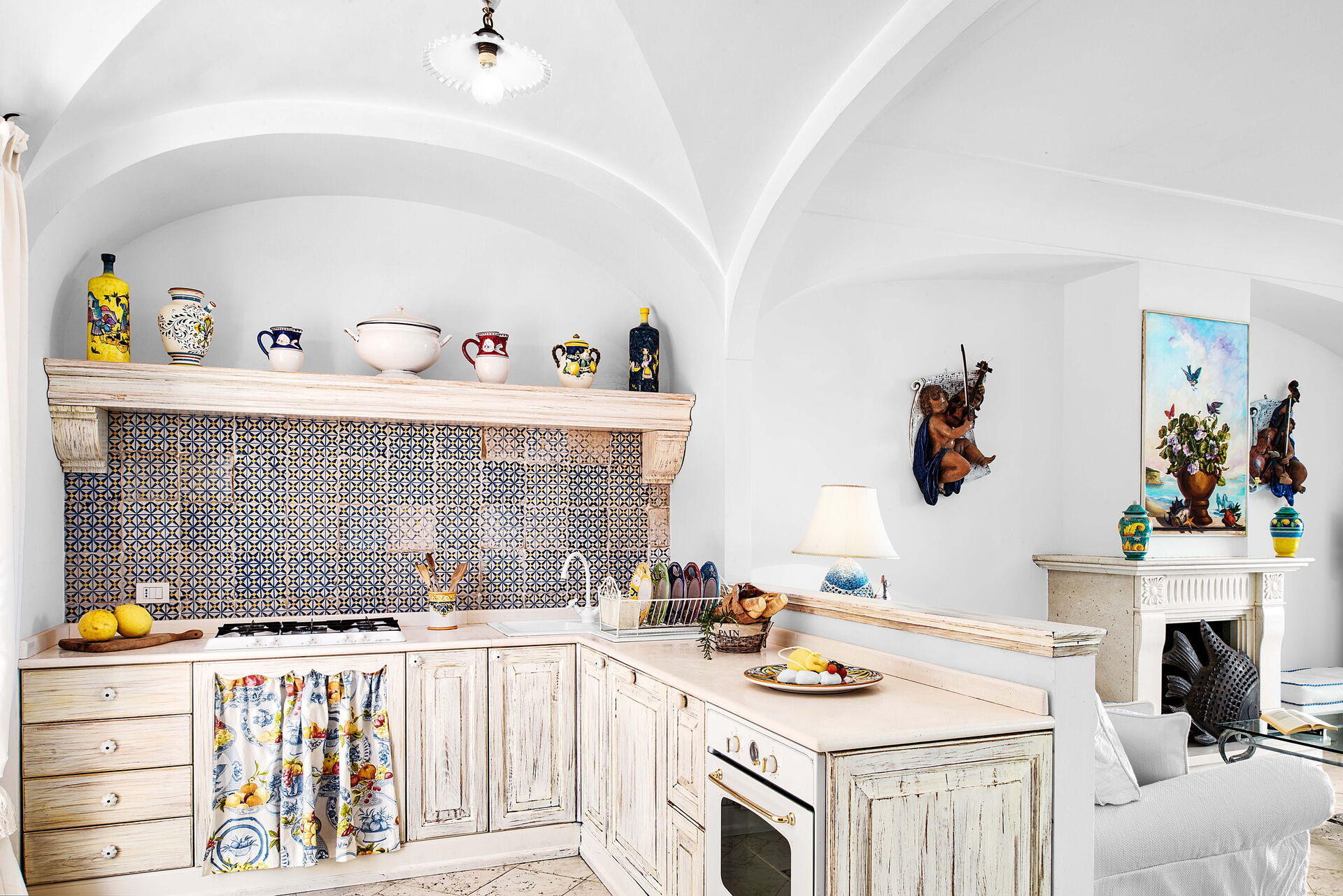 The villa can accommodate up to six people with three double bedrooms and three bathrooms, and offers breathtaking views of the Gulf of Naples and Mount Vesuvius. Spread over two levels, the villa features a large open-plan living area, a fully equipped kitchen and a bathroom on the ground floor.