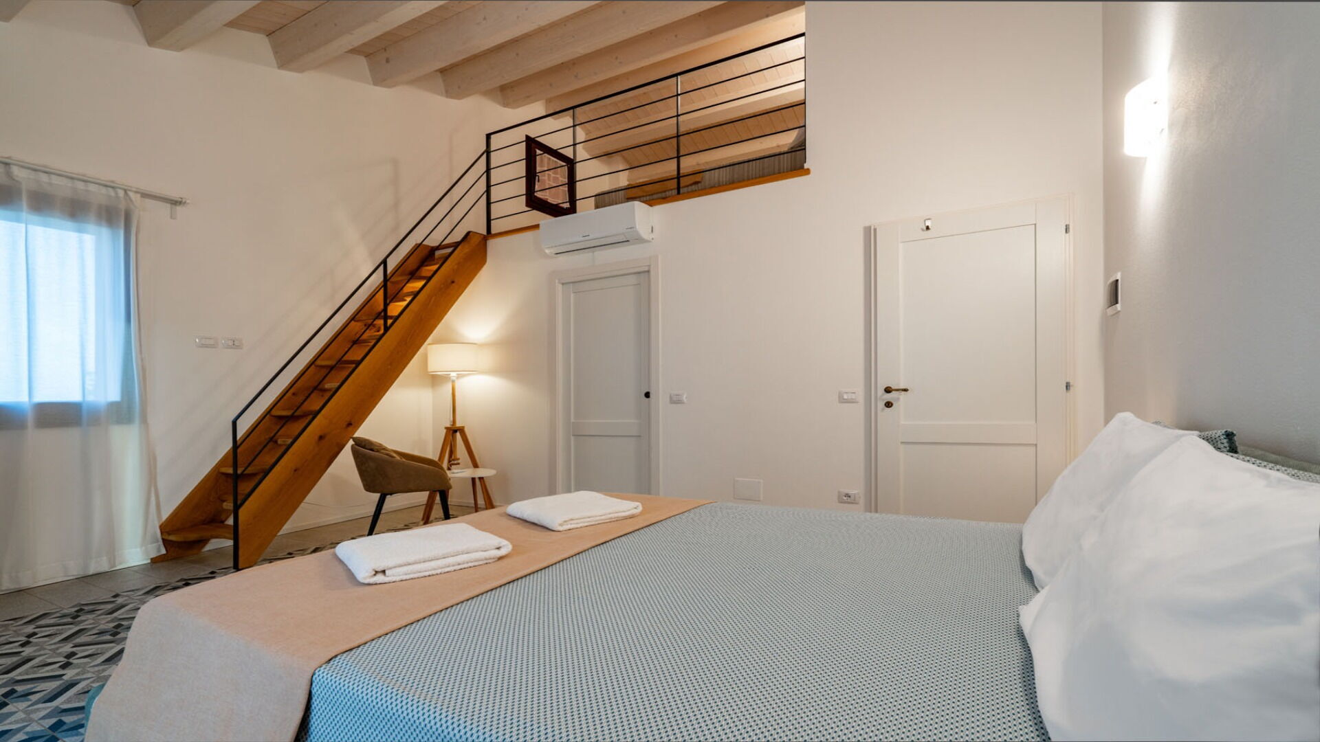 Bedroom + Ensuite Bathroom 1: double bed, basin, toilet, bidet, shower, hairdryer.