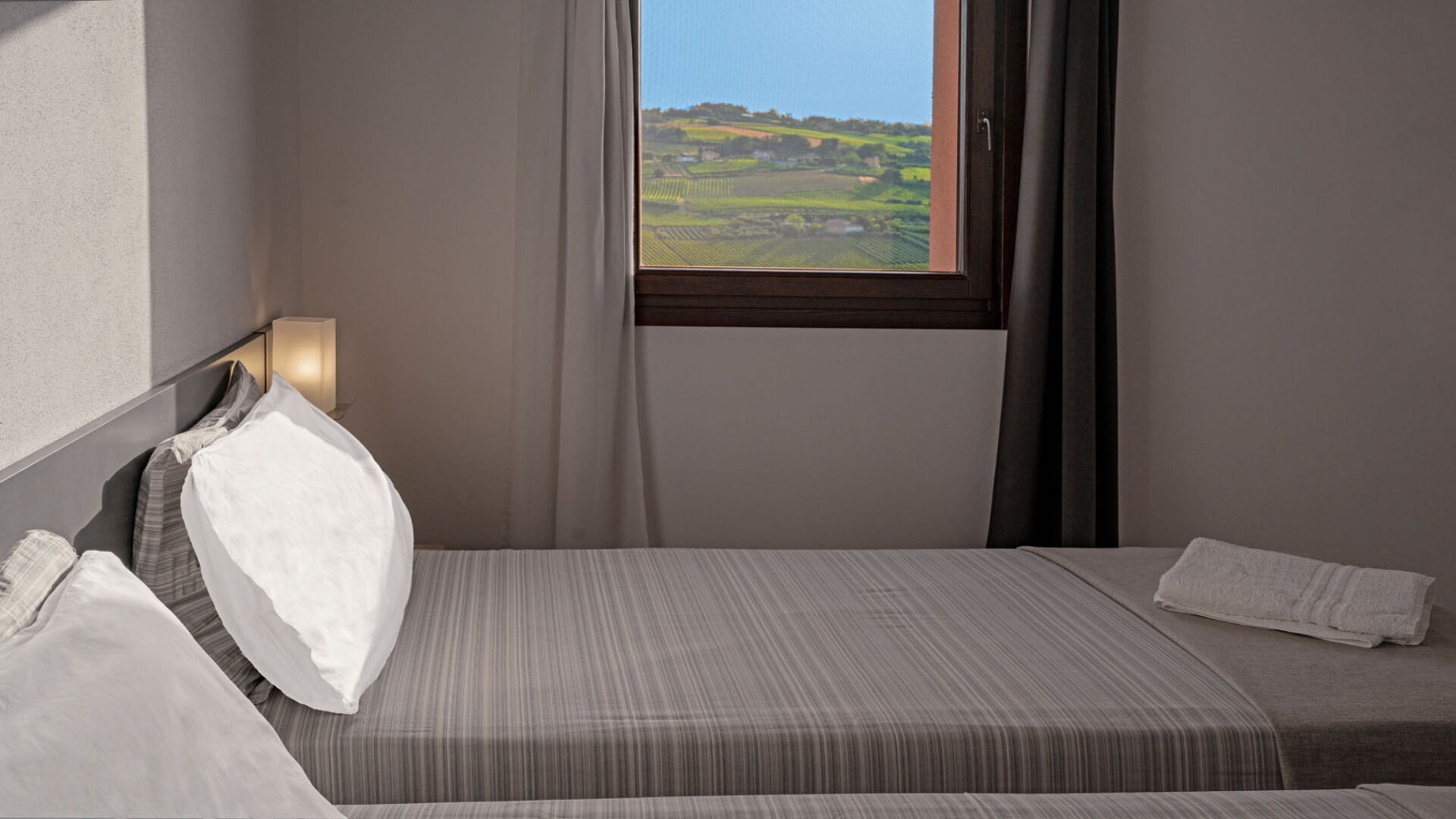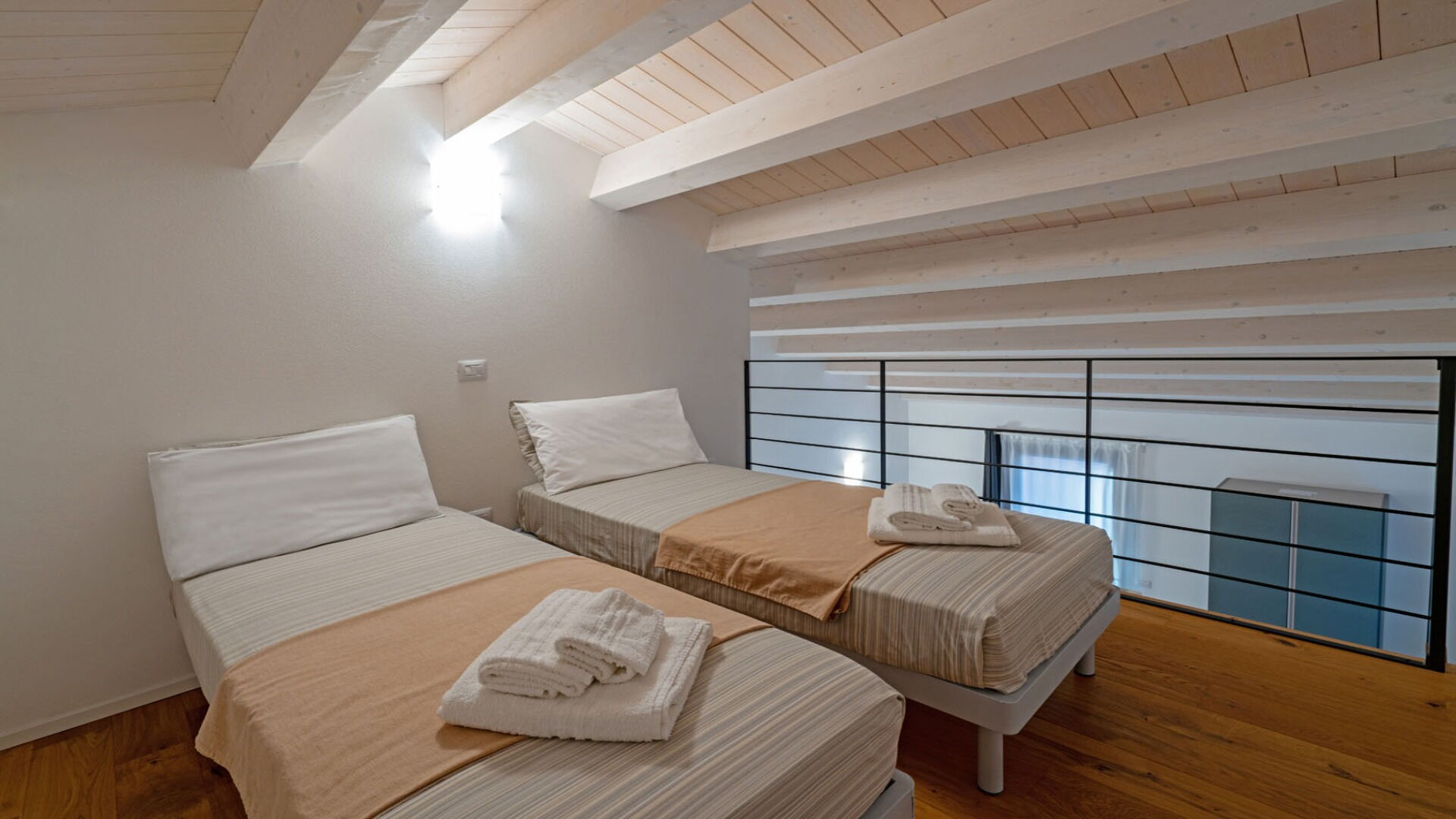 Bedroom + Ensuite Bathroom 2: two single beds, basin, toilet, bidet, shower, hairdryer.