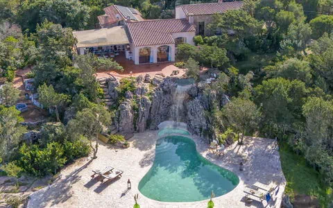 Your holiday rental is Comfortable villa "La Giulia Porto Cervo" located in the resort Monticanaglia, 10 km from the center of Porto Cervo, Italy. This secluded and sunny villa offers a private garden with wildlife and flowers, a natural garden, and a seasonal kidney-shaped swimming pool (12 x 6 m, 72 m2, depth 150 - 180 cm, available from April 19 to October 31). Enjoy outdoor amenities such as an outdoor shower, hot tub, and parking at the property. The villa is equipped with Internet Wifi, an EV Charging Station, and a yard.