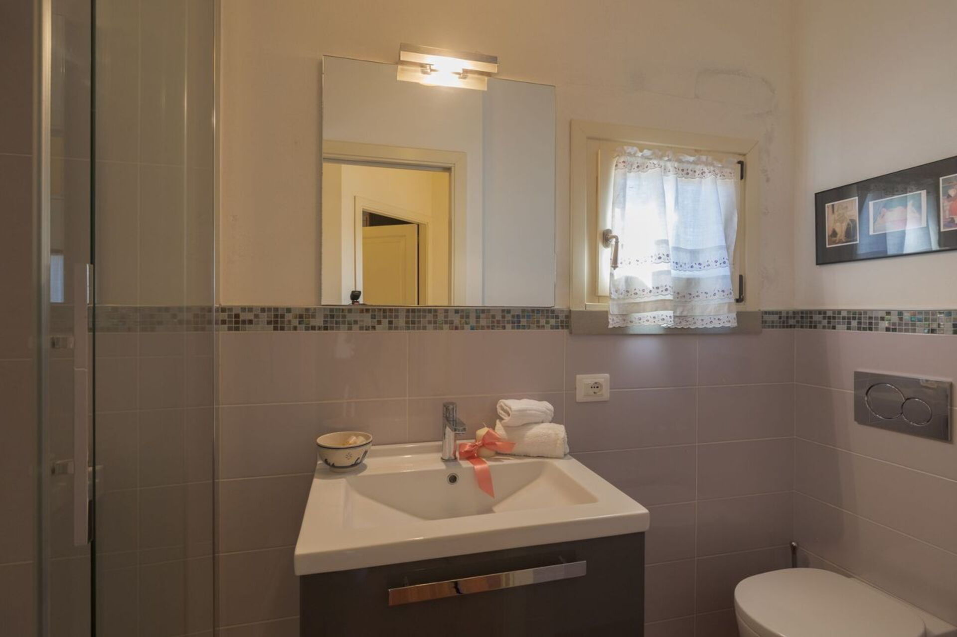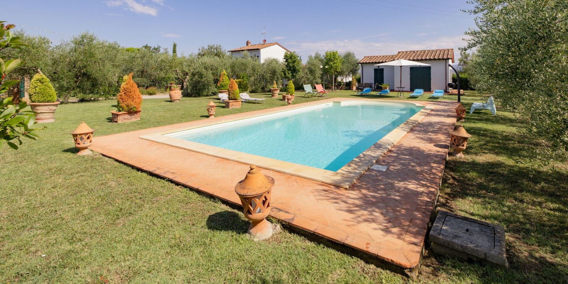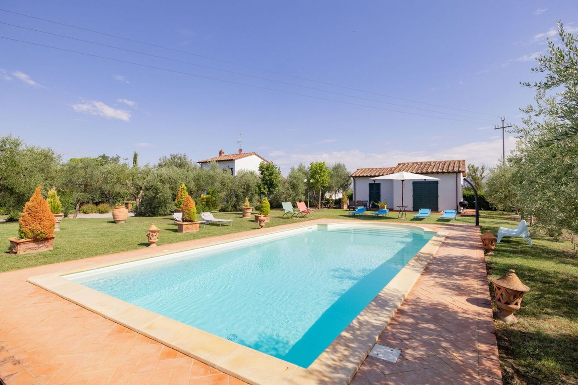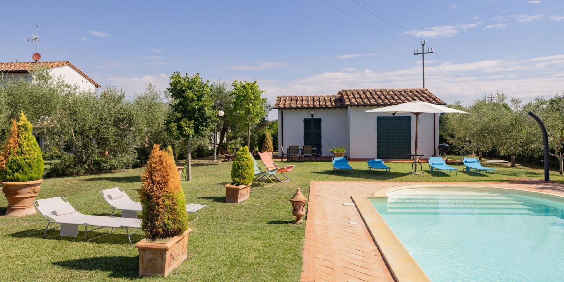 Upon arrival you will be welcomed by the owner or manager where you’ll find a nice clean well-maintained property with views of the hills perfect for a splendid holiday in Tuscany. Regardless of how you spend your days - sightseeing, visiting museums, shopping or just driving in the countryside, when you arrive home you can relax with your family and friends at the pool for a perfect ending to another day in Tuscany. For your pleasure, on the grounds there is a patio and barbecue grill. Sharing a meal with friends and family is a big part of the Tuscan culture. Take advantage of the well-equipped kitchen to prepare meals using local produce while on your holiday. The kitchen includes coffee machine, microwave, toaster, stove and refrigerator, as well as, plenty of tableware and cutlery for up to seven people. Dine 'al fresco' like a real Tuscan, the fully furnished veranda is the perfect setting to enjoy food, family and the beautiful Tuscan weather.