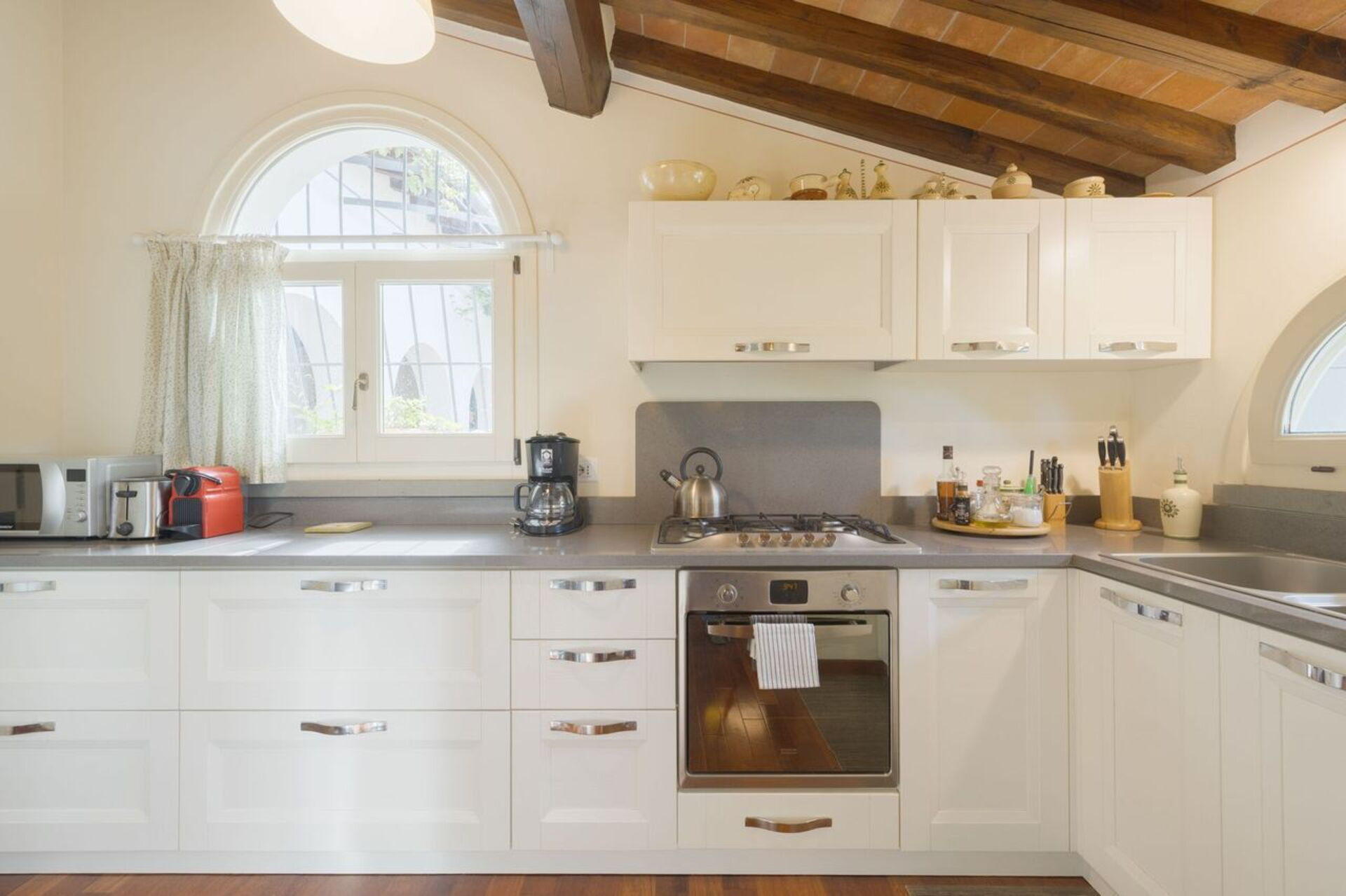 Kitchen: well equipped kitchen, dishwasher, fridge, freezer, microwave, stove top, oven, toaster, italian coffee machine, american coffee machine, WIFI internet, exit to the patio.