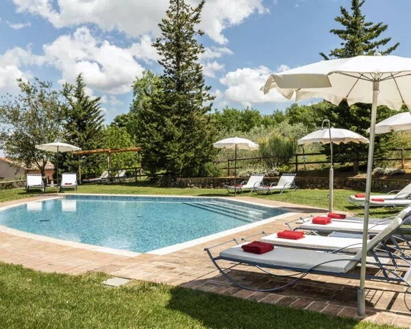 This independent farmhouse vacation rental spans 450 square meters and is nestled on the slopes of Monte Cappuccini, which divides the Val d'Orcia from the Val di Chiana in Montepulciano, Italy. The property has been recently restored with meticulous attention to interior decoration, featuring authentic antique furniture, traditional terracotta ceilings, and antique parquet floors that embody true Tuscan style. You will find this detached residence offers both relaxation and easy access to explore the surrounding vineyards and olive groves that characterize the hills and plains of the region. The property provides convenient parking on site and complimentary Internet Wifi connection throughout your stay, ensuring you remain connected while enjoying the tranquility of the Tuscan countryside.