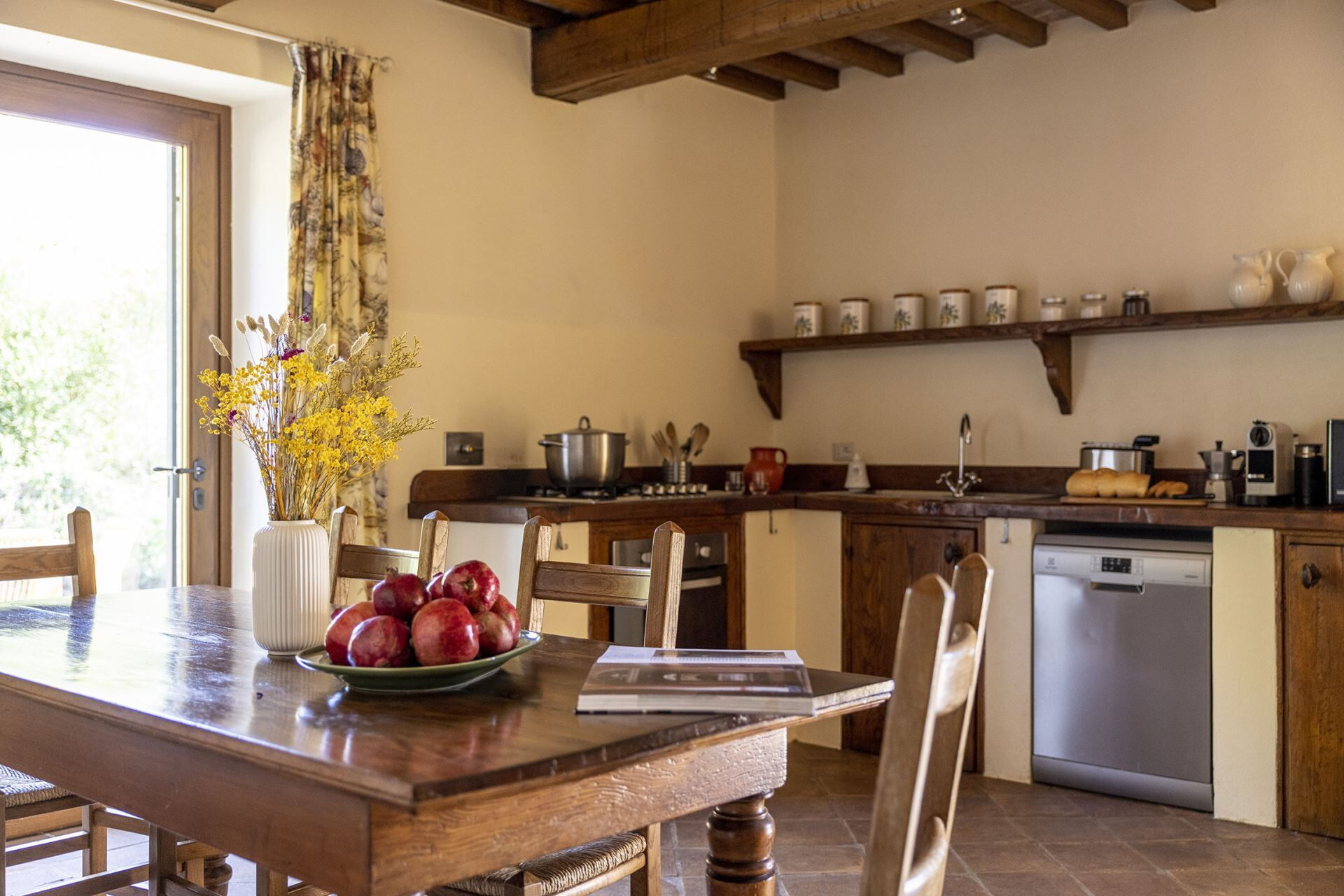 Villa del Cammino is thoughtfully designed to accommodate up to 12 guests across 6 bedrooms and 6 bathrooms, distributed between the main villa and a charming cottage. The ground floor of the main villa features a spacious living room with fireplace, a separate dining room, and a fully equipped kitchen. This level also includes a laundry room and a double bedroom with a queen bed measuring 1.80x2m, complete with an en-suite bathroom featuring a shower. On the first floor, you will find four additional bedrooms, including two double bedrooms with king-size beds measuring 1.95x2m and 2x2m respectively, each with a private bathroom equipped with both shower and bathtub. Two more double bedrooms feature beds measuring 1x2m, each with private bathrooms, one with a shower and the other with a bathtub. The elegant cottage offers an open-plan layout combining the living area, kitchen and dining space, along with a king-size bedroom measuring 2x2m with an en-suite bathroom featuring a shower.
