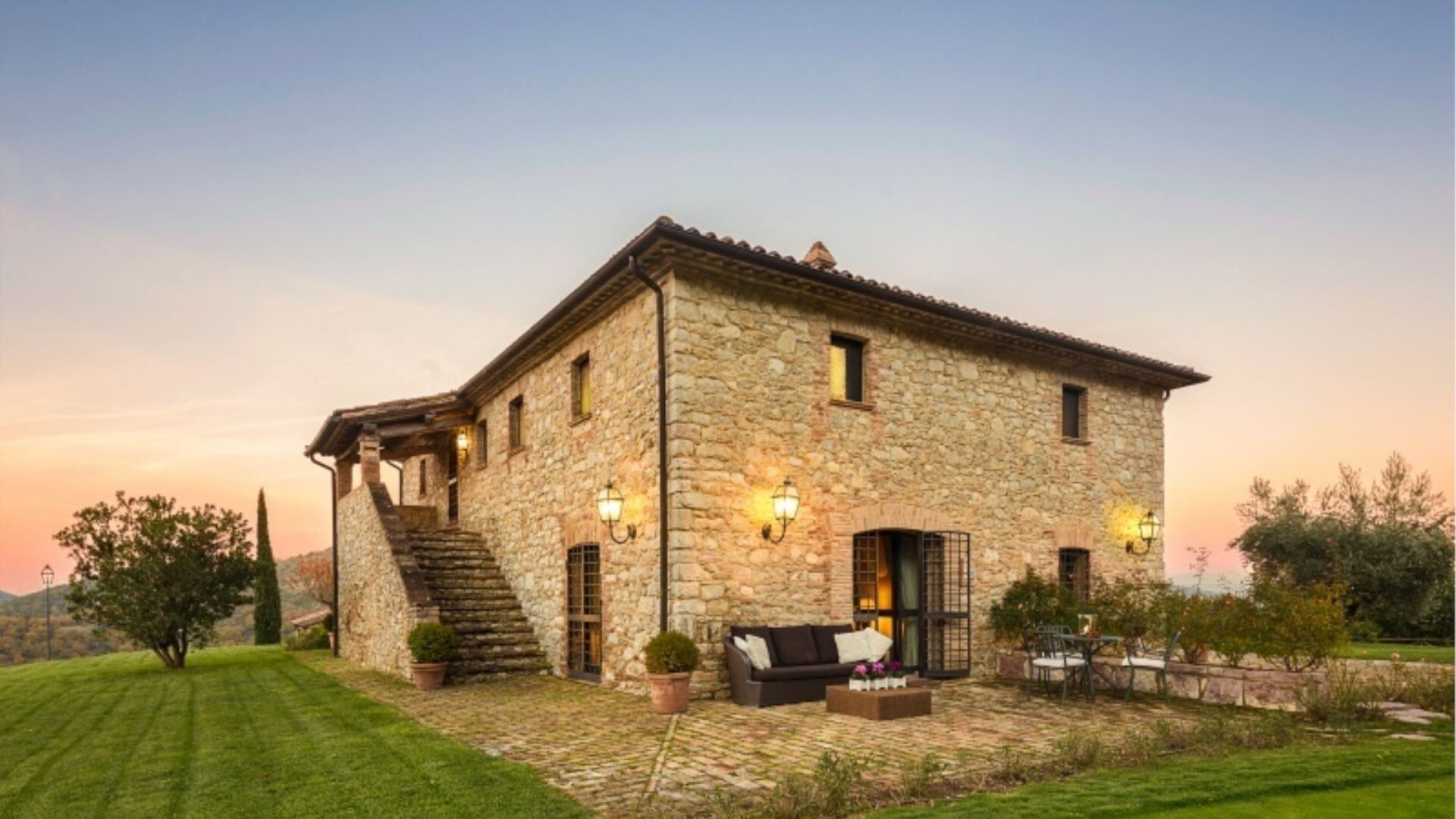 Villa Sibilla is a beautifully restored 16th century farmhouse nestled atop one of the Murlo hills in Perugia, Italy. This distinguished vacation rental commands spectacular views of the medieval castle of Antognolla and its 18-hole golf course, with vistas particularly stunning when admired from the expansive infinity pool complete with jacuzzi. The property forms part of Tenuta Umbra, one of Italy's most exclusive private country estates, renowned for its thousands of acres of pristine woods and olive groves, superb valleys, lakes and rivers. Villa Sibilla offers remarkable levels of comfort and elegance, providing the ideal setting for a relaxing and peaceful holiday. The estate boasts a prime location in the center of Umbria, where the simple pleasures of country life embrace art, history and architecture alongside excellent food and wine. The property provides convenient parking and accommodates guests across the main villa and the separate Olivo apartment, with all modern amenities seamlessly integrated into its historic charm.