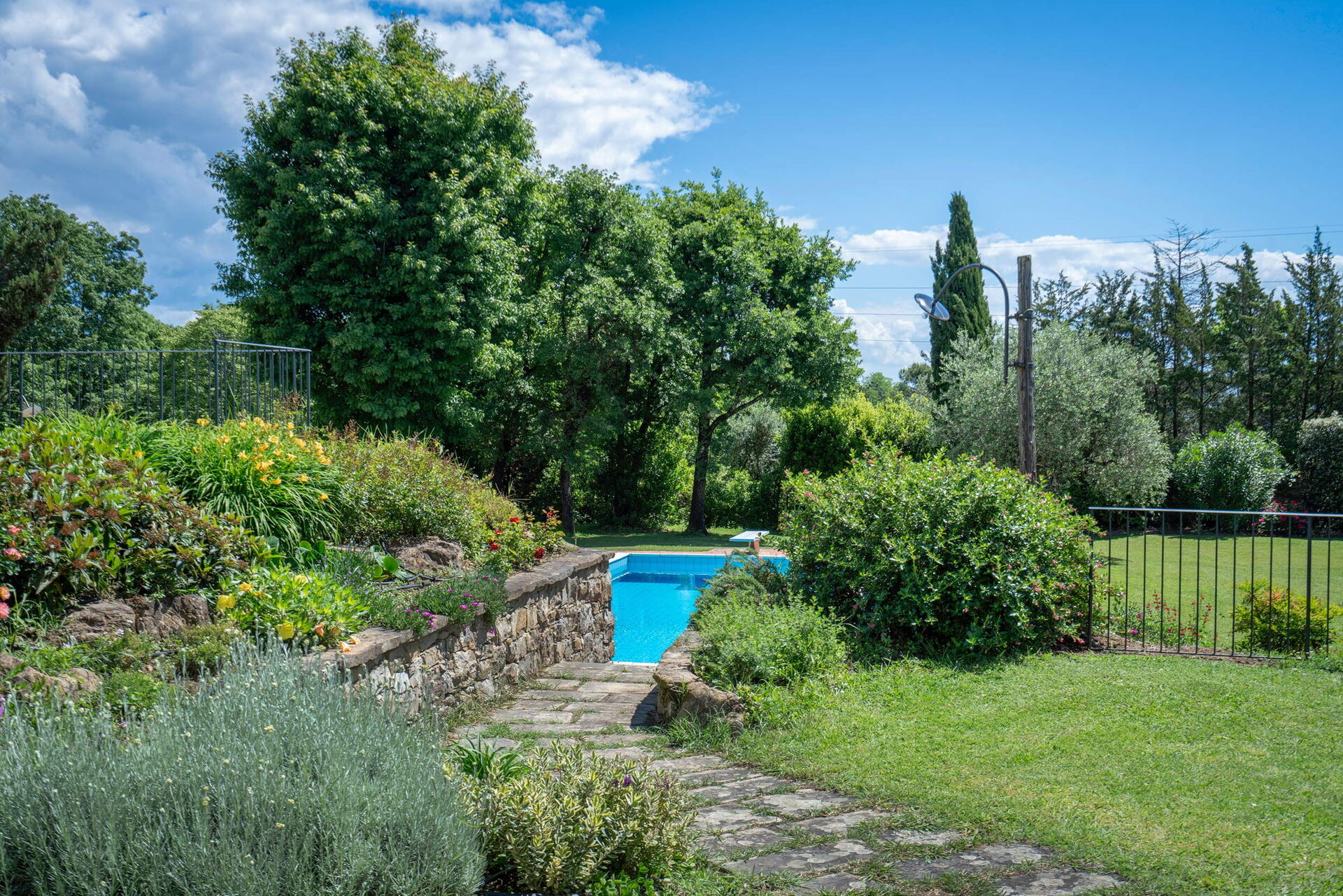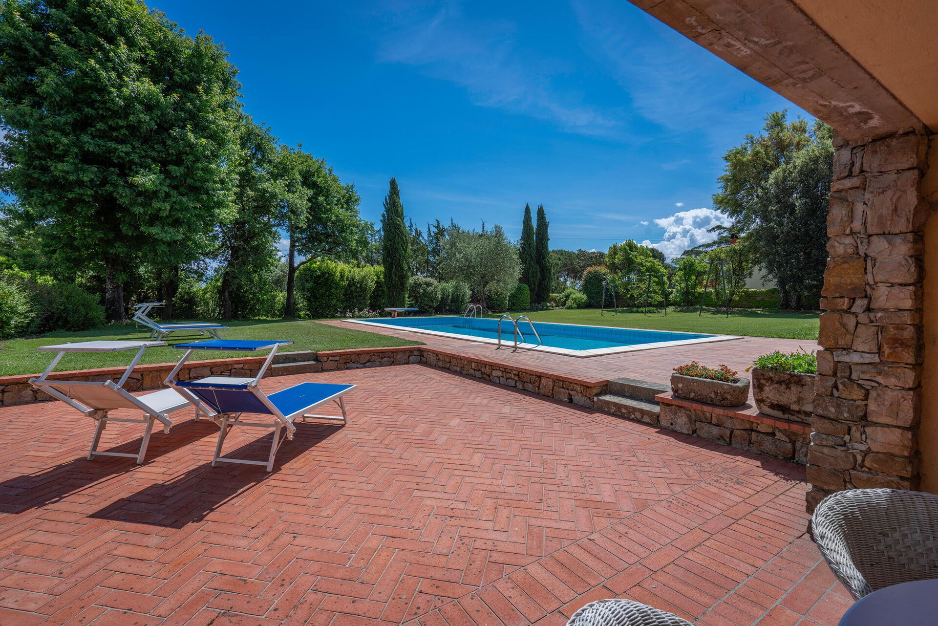 Upon arrival you’ll find a nice clean well-maintained property ideal for a relaxing vacation in Tuscany. For your pleasure you will find a private pool where you can unwind while enjoying a nice cold beverage after a busy day of sightseeing. Sharing a meal with friends and family is a big part of the Tuscan culture. Take advantage of the well-equipped kitchen to prepare meals using local produce while on your holiday. The kitchen includes coffee machine, stove and refrigerator, as well as, plenty of tableware and cutlery for up to eight people.