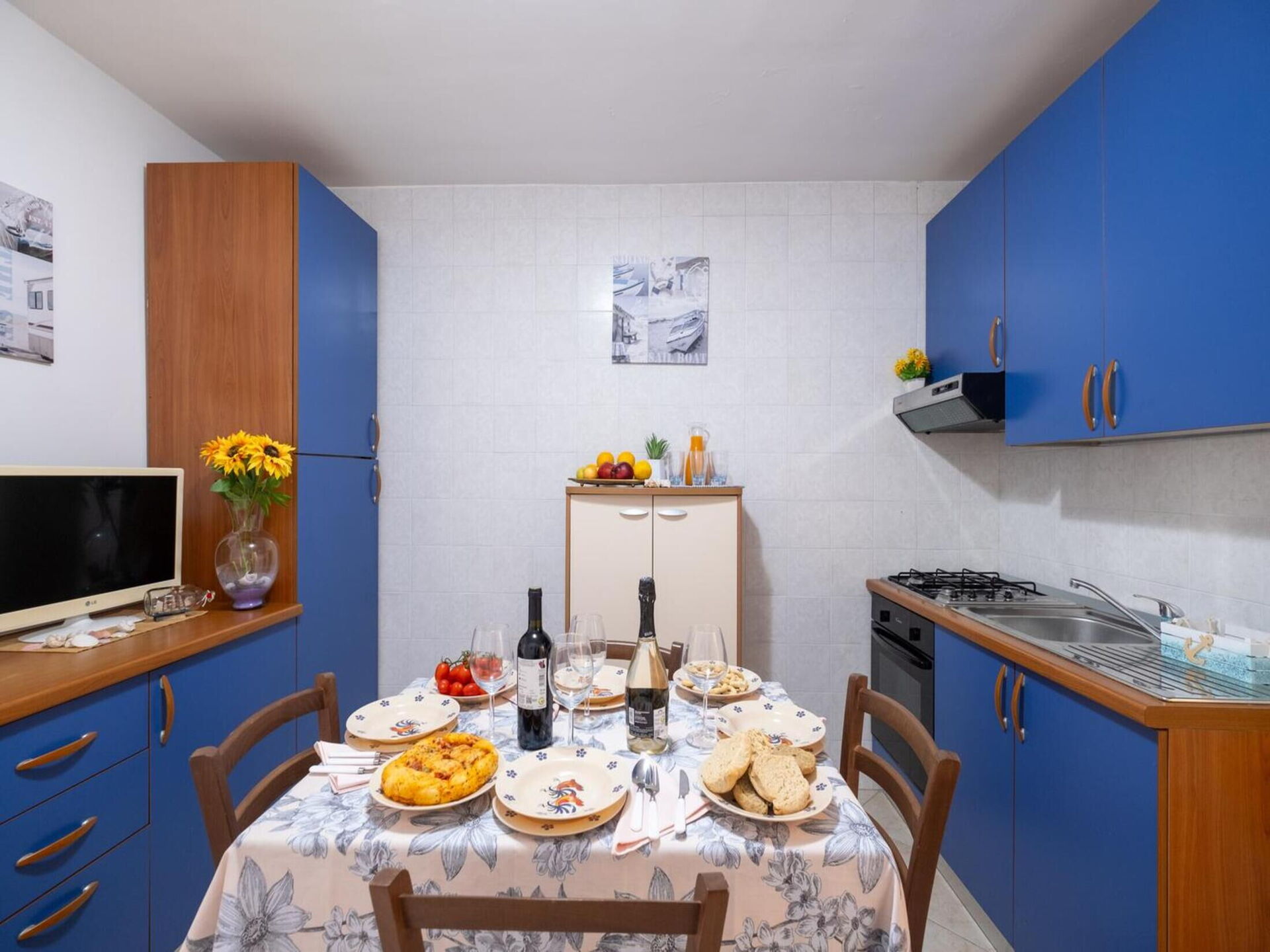 Kitchen: well equipped kitchen, dining table, fridge, freezer, stove top, oven, WIFI internet, television.