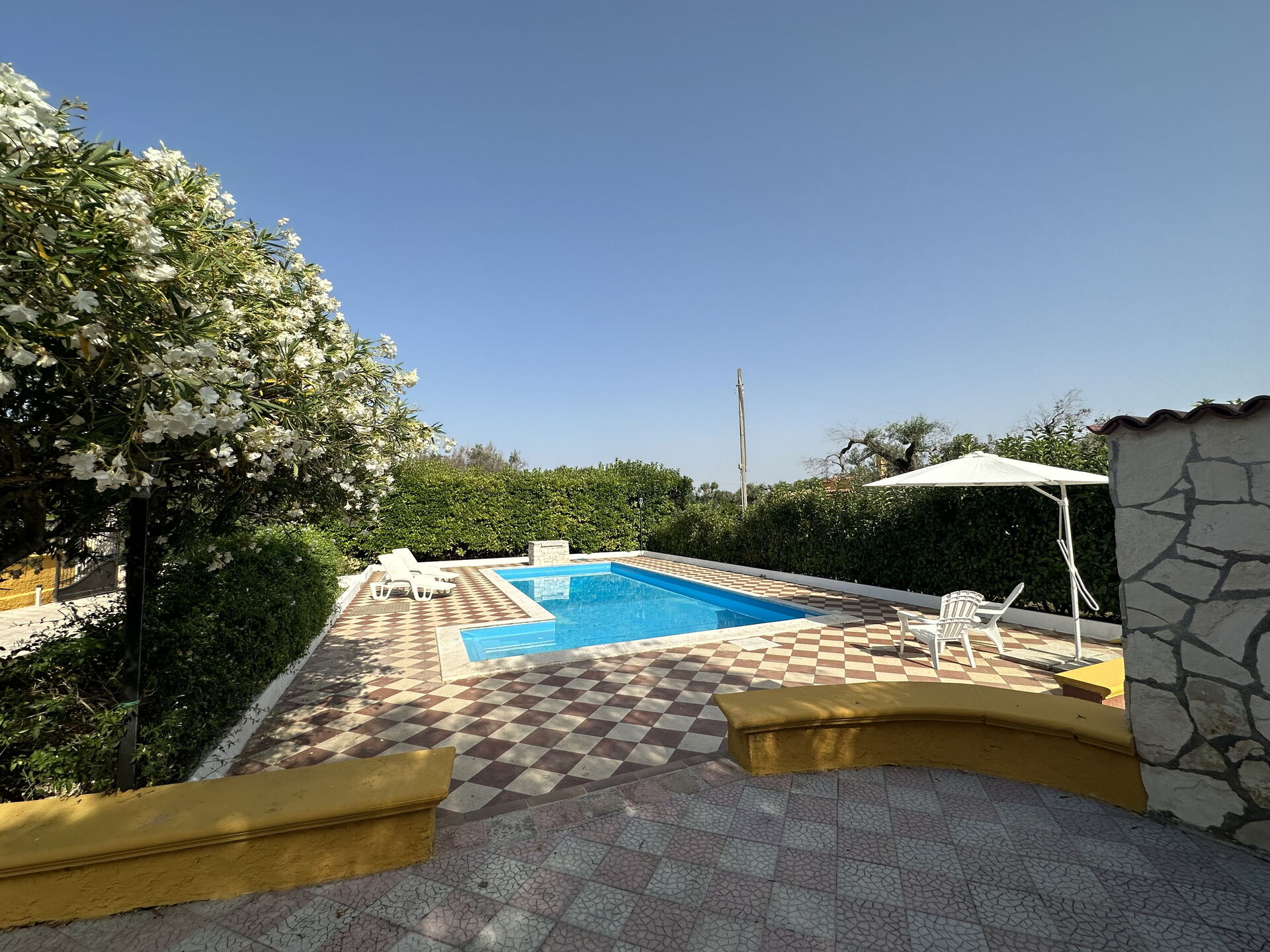 Upon arrival you will be welcomed by the owner or manager where you’ll find a lovely clean well-maintained property ideal for a splendid vacation in Apulia. For your enjoyment you will find a private pool where you can relax while enjoying a nice cold beverage after a busy day of shopping.