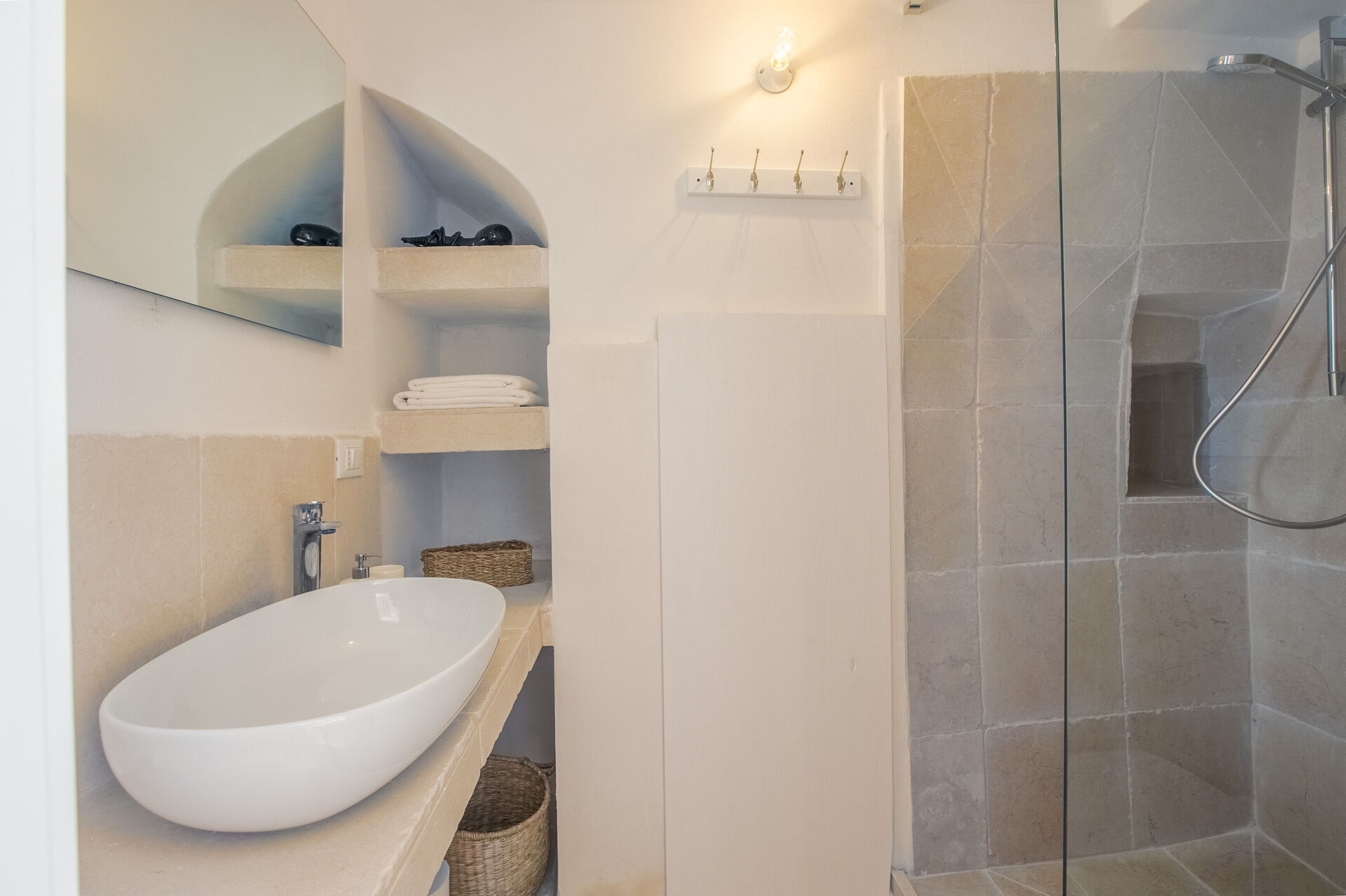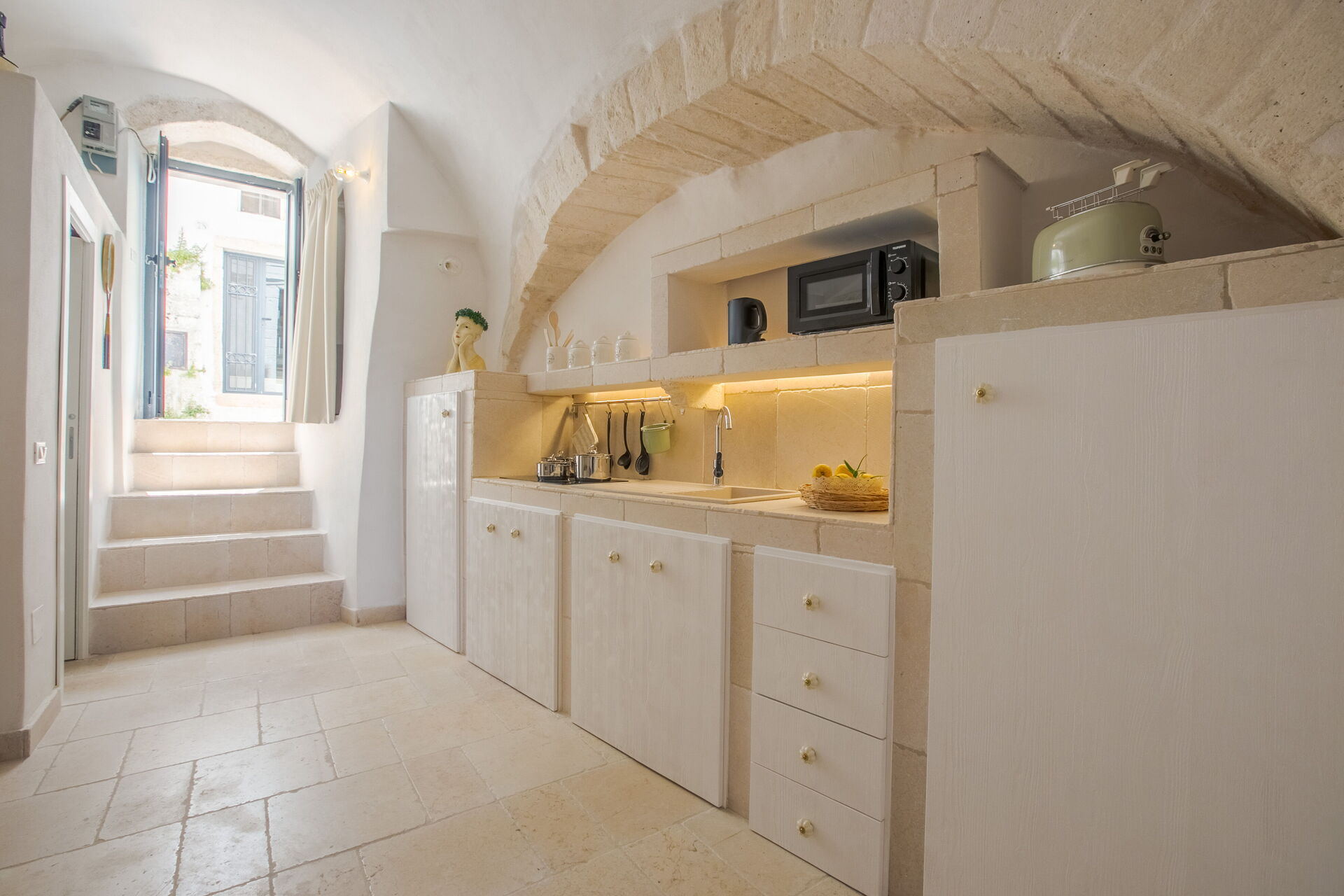 For a true luxury experience that is undeniably specific to Apulia, Masseria Isaia is the perfect way to go. A historic masseria, a type of fortified farmhouse estate typically built in Apulia in the 16th century, this incredible property is spacious, lovely, and abounds in character and style. Located minutes from the gorgeous coastline and the famous, “white city,” of Ostuni, right in the Piana degli Ulivi Monumentali, a large expanse of the region that is cultivated with olive trees, the villa is surrounded by centuries-old and thousand-year-old trees, with the glittering city and sea visible in the distance. It would be hard to imagine a dreamier location for a holiday in Apulia!