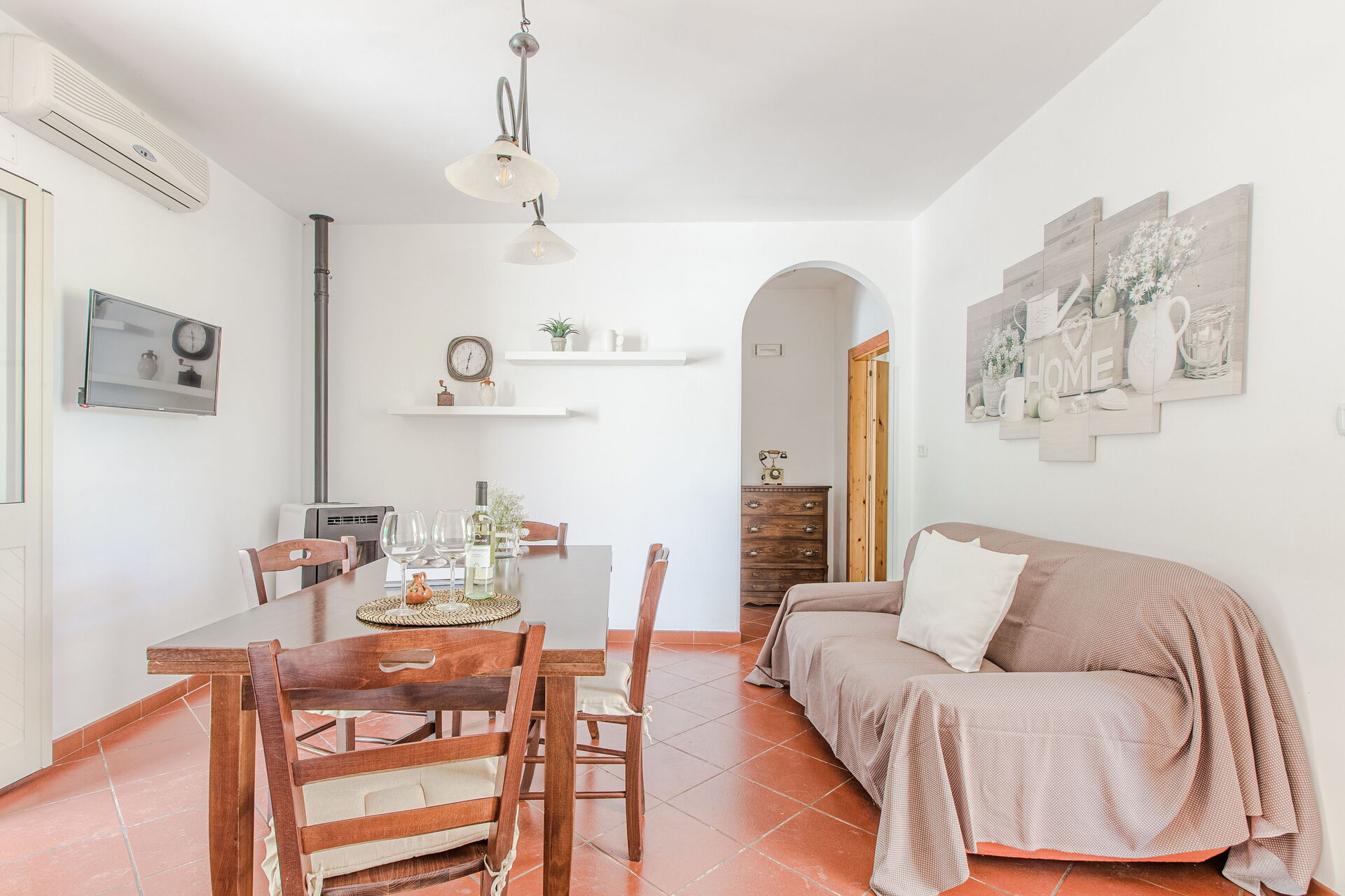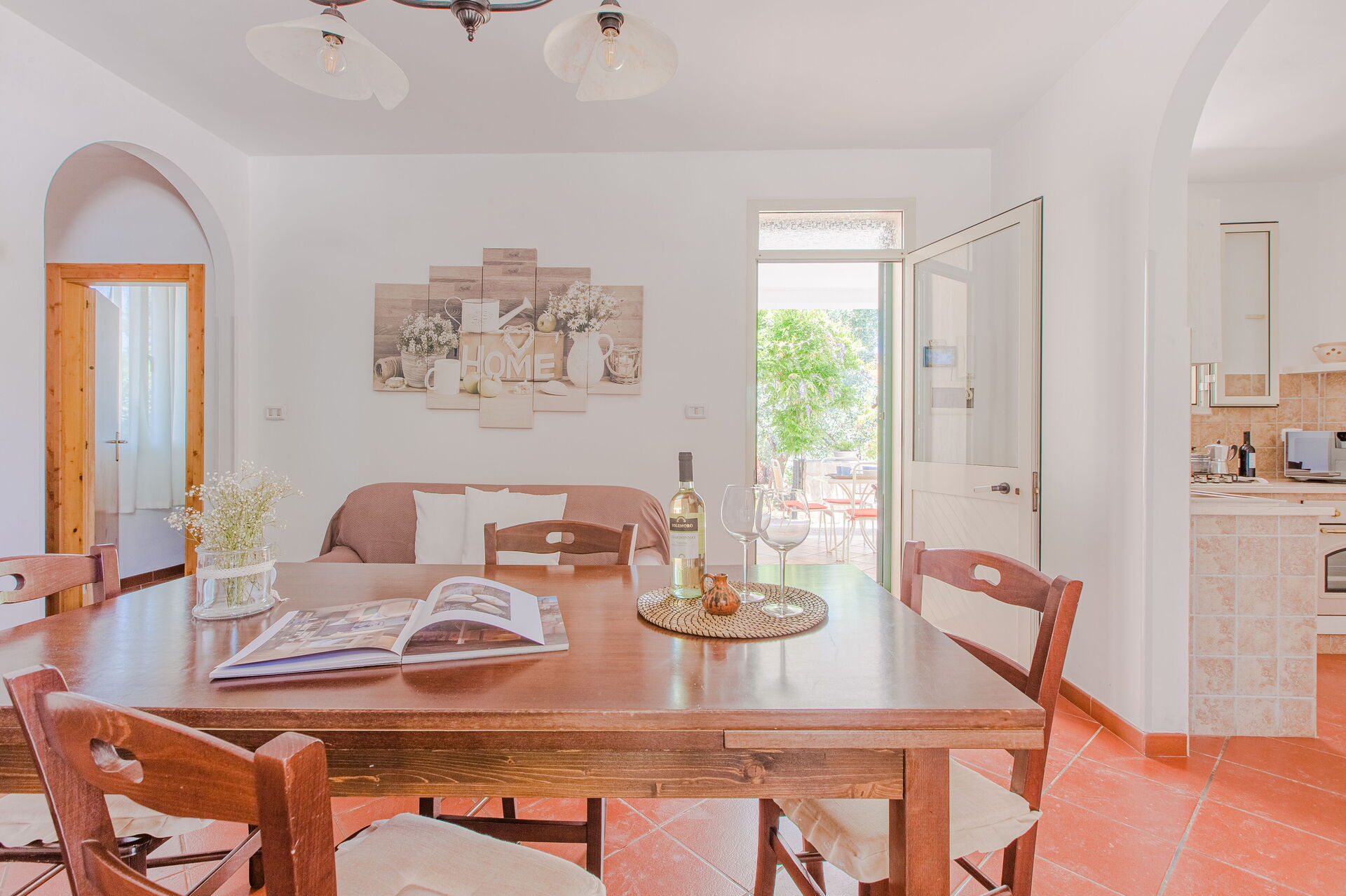 Open space: sofa, dining table, single bed, sofa bed, WIFI internet, air conditioning, television, fridge, stove top, freezer, well equipped kitchen, oven, italian coffee machine, exit to the garden, exit to the patio.