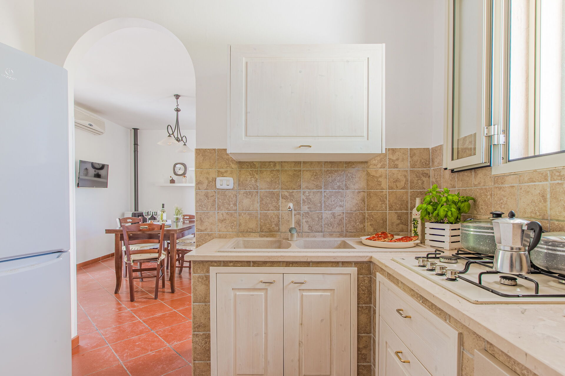 When you arrive you will be welcomed by the owner or manager where you’ll find a beautiful clean well-maintained property ideal for a splendid holiday in Apulia. Regardless of how you spend your days - shopping, sightseeing, visiting museums or just driving in the countryside, when you arrive home you can relax with your family and friends at the pool for a perfect ending to another day in Apulia. Sharing a meal with friends and family is a huge part of the Italian culture. Take advantage of the well-equipped kitchen to prepare meals using local produce while on your holiday. The kitchen includes coffee machine and microwave, as well as, plenty of tableware and cutlery for up to six people.