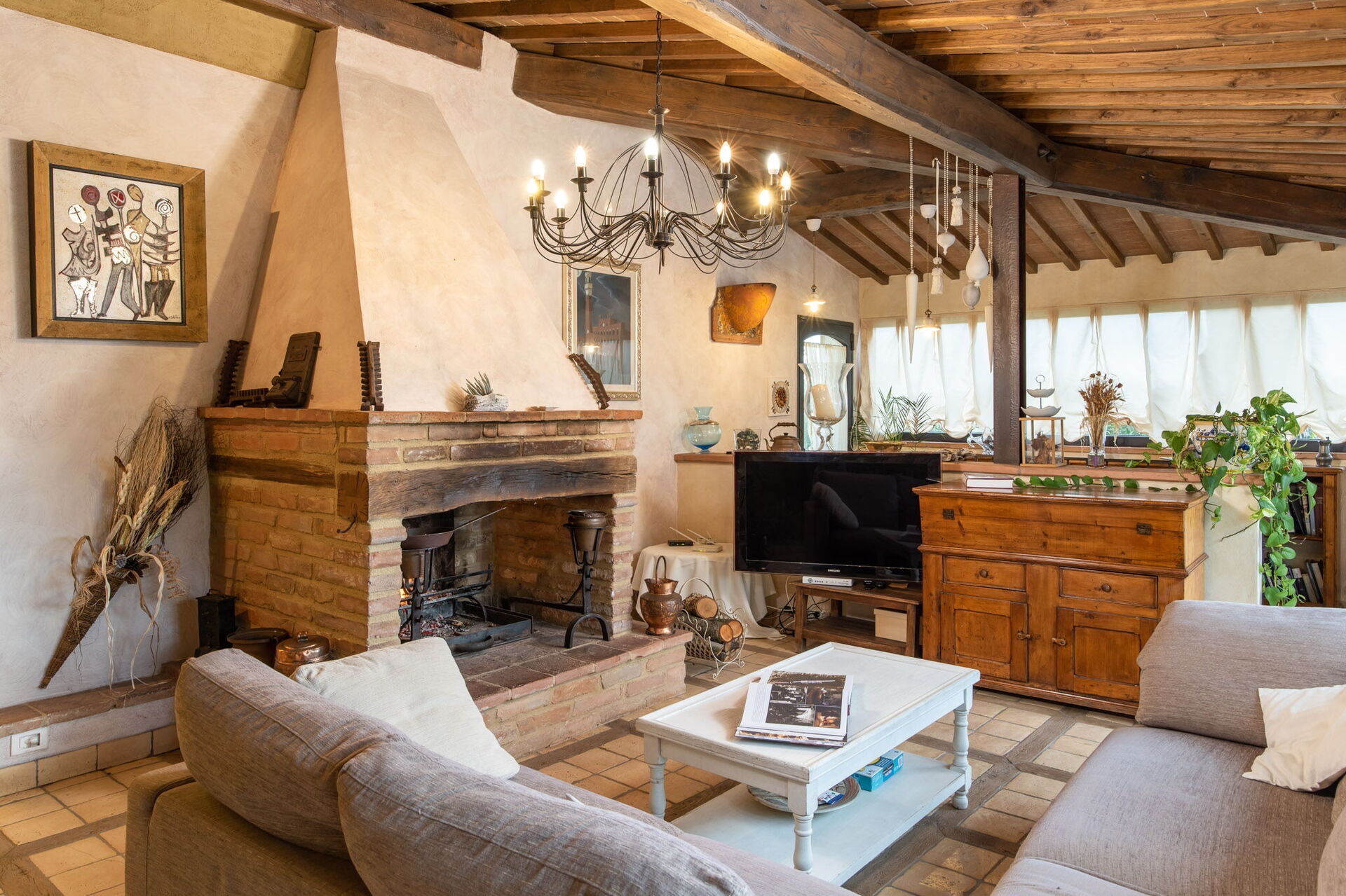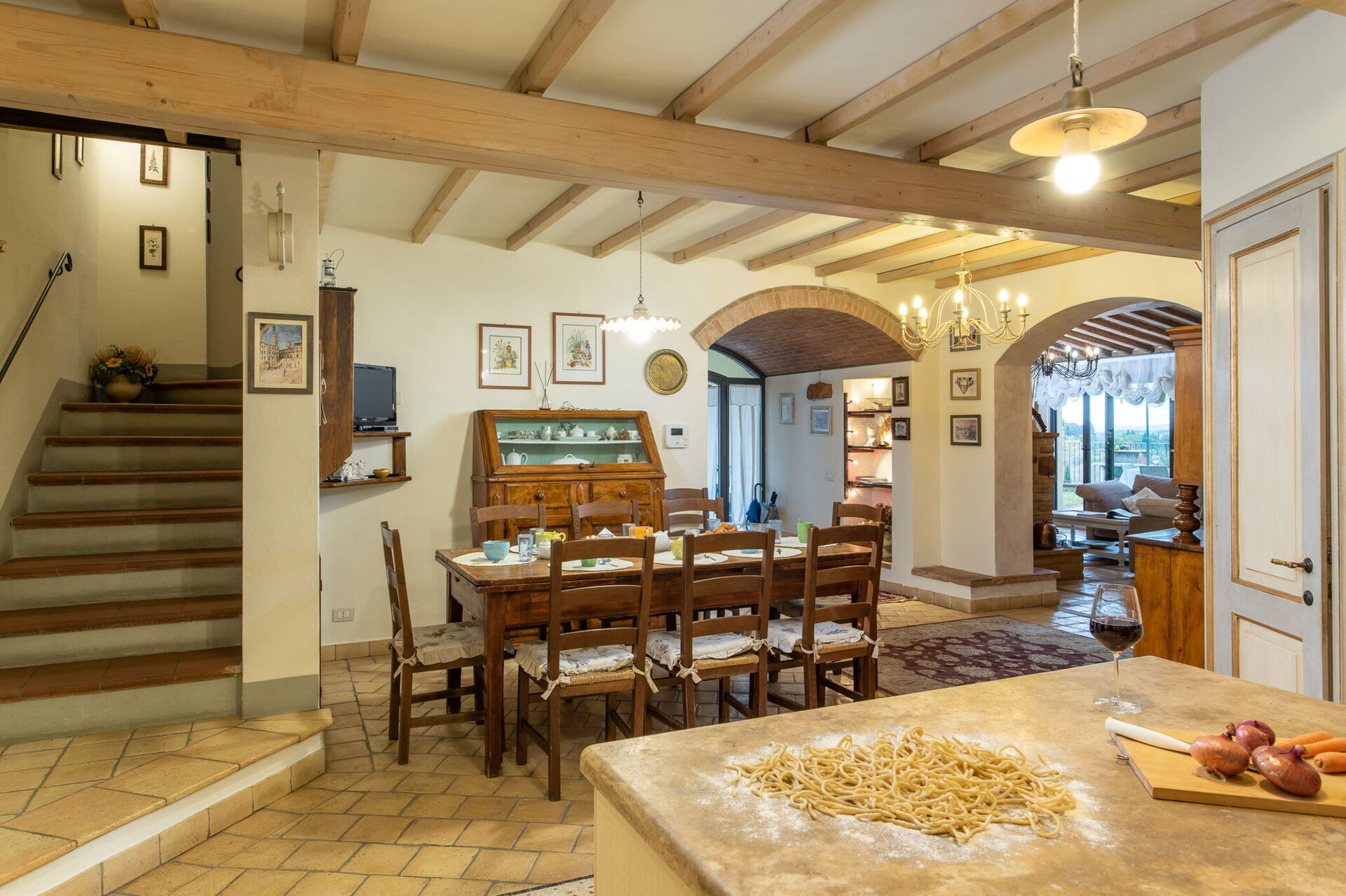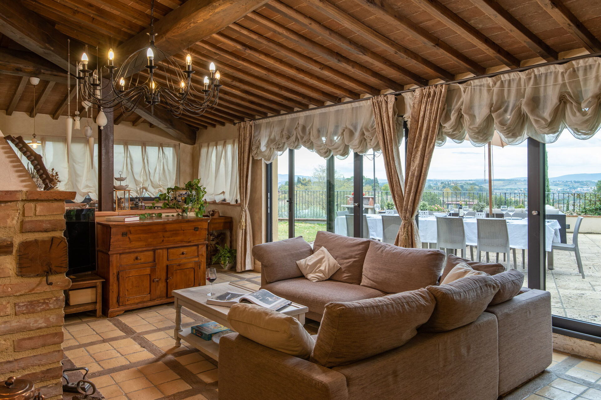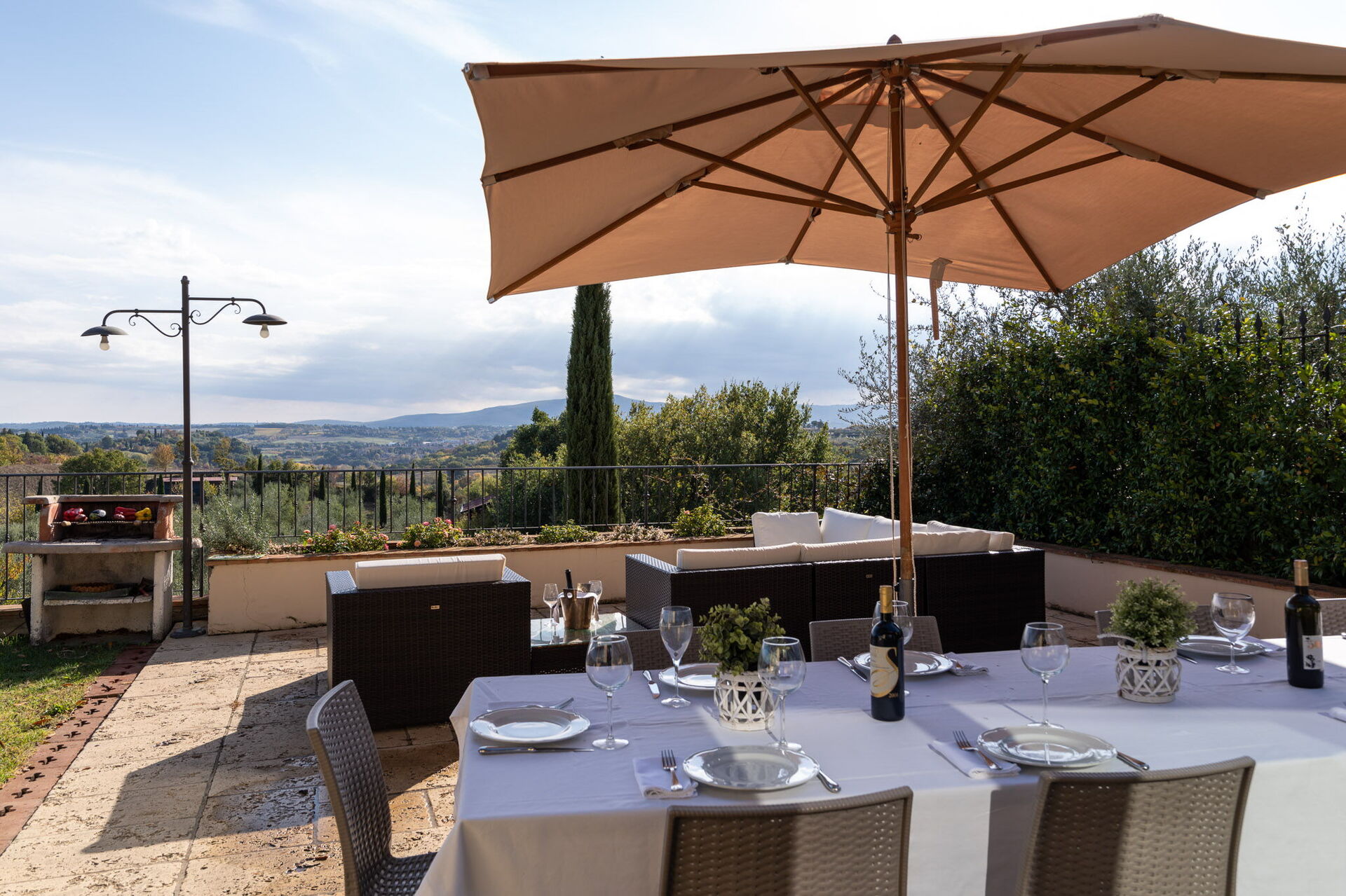 After arriving at Villa L'elsa Beautiful Country Home With View you’ll find a lovely clean well-maintained property with views of the hills perfect for a splendid holiday in Tuscany. After a hectic day of visiting museums, spend some time with friends and family poolside enjoying a glass of wine - a perfect way to relax at the end the day. Outside you will also find a hot tub and barbecue grill. Dining with friends and family is a big part of the Tuscan culture. Take advantage of the well-equipped kitchen to prepare meals using local produce while on your holiday. The kitchen includes coffee machine, microwave, toaster, stove and refrigerator, as well as, plenty of tableware and cutlery for up to 14 people. Dine 'al fresco' like a real Tuscan, the fully furnished veranda is the perfect setting to enjoy food, family and the lovely Tuscan weather.