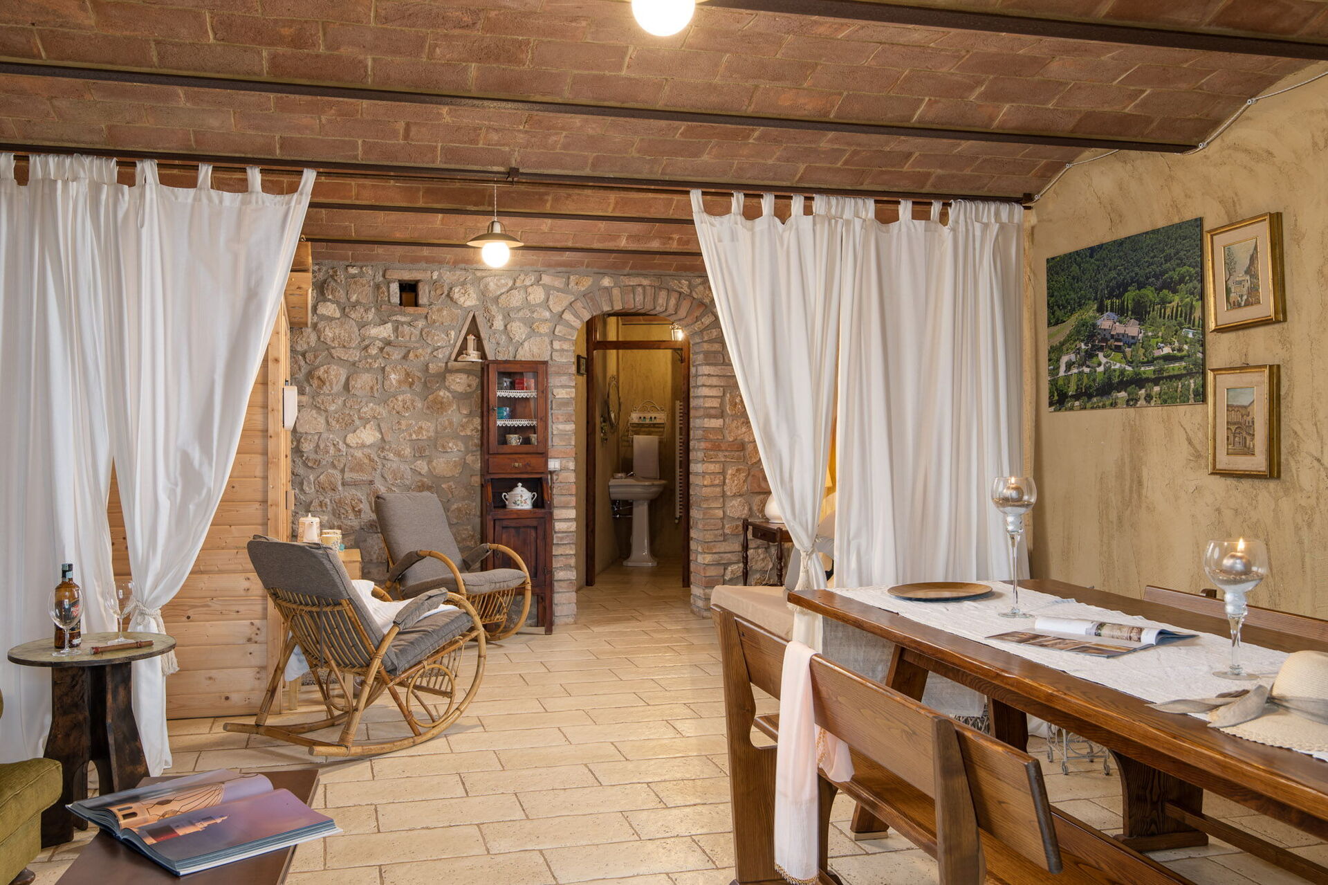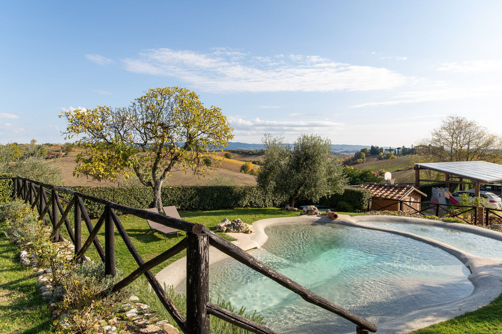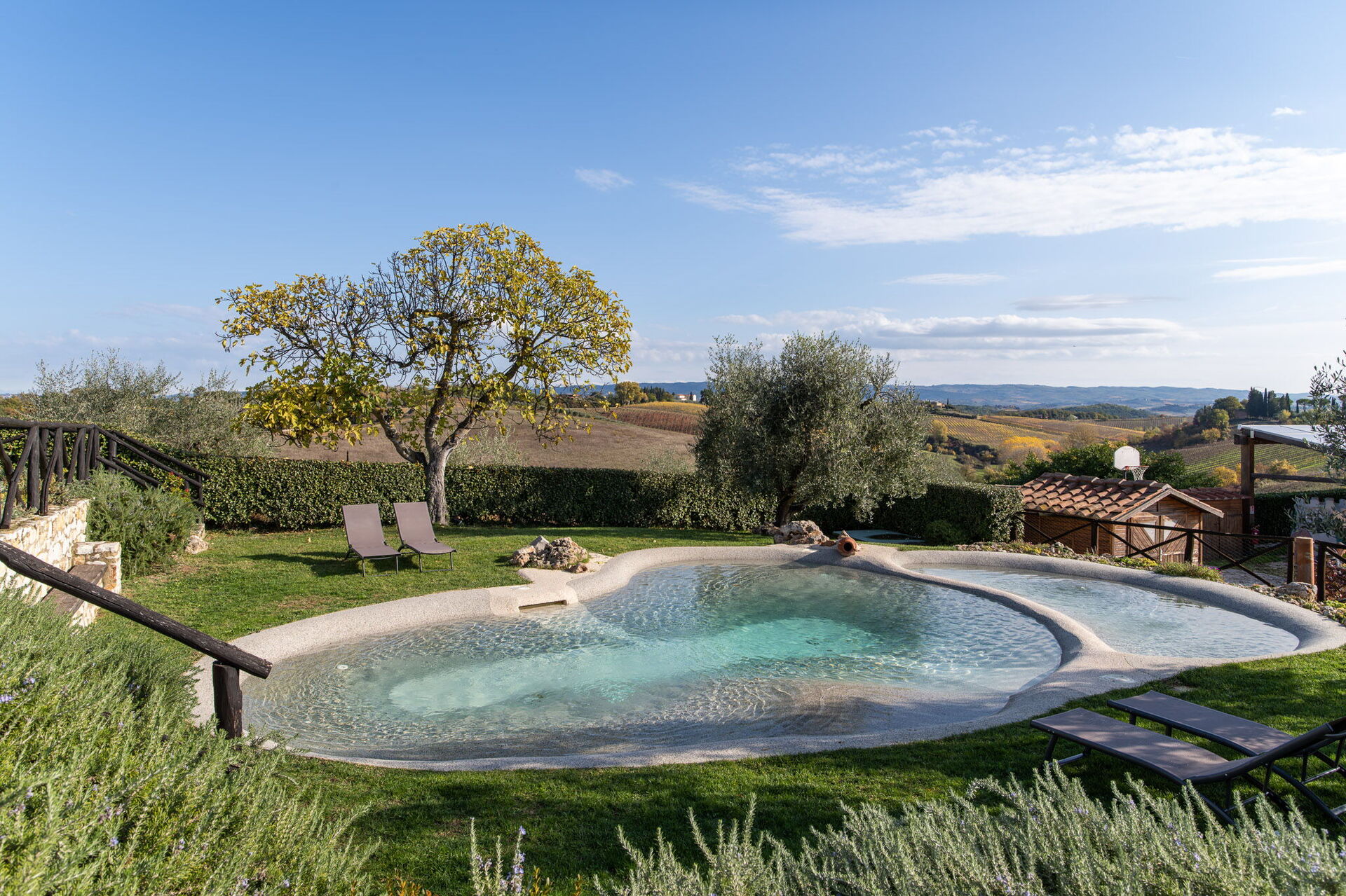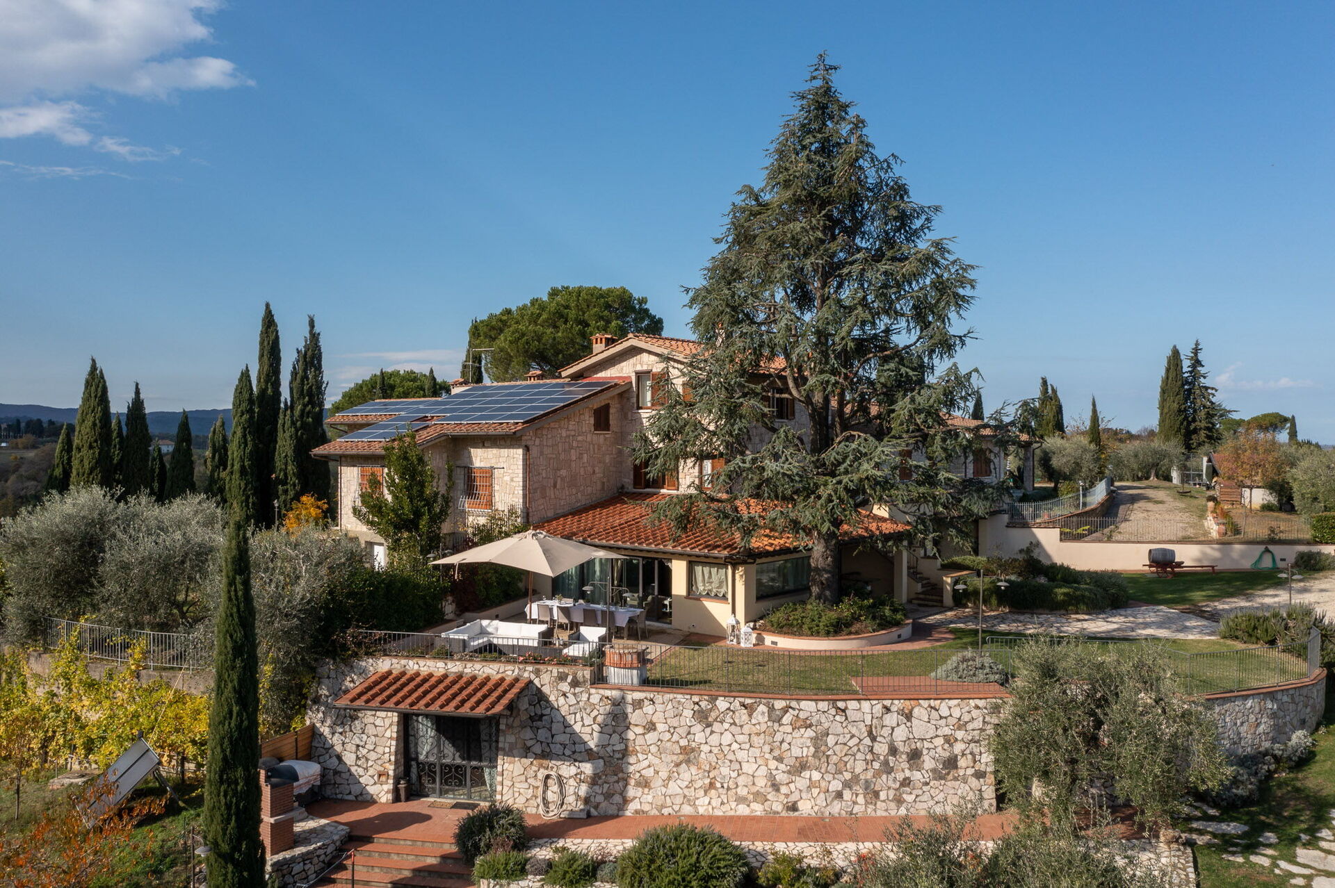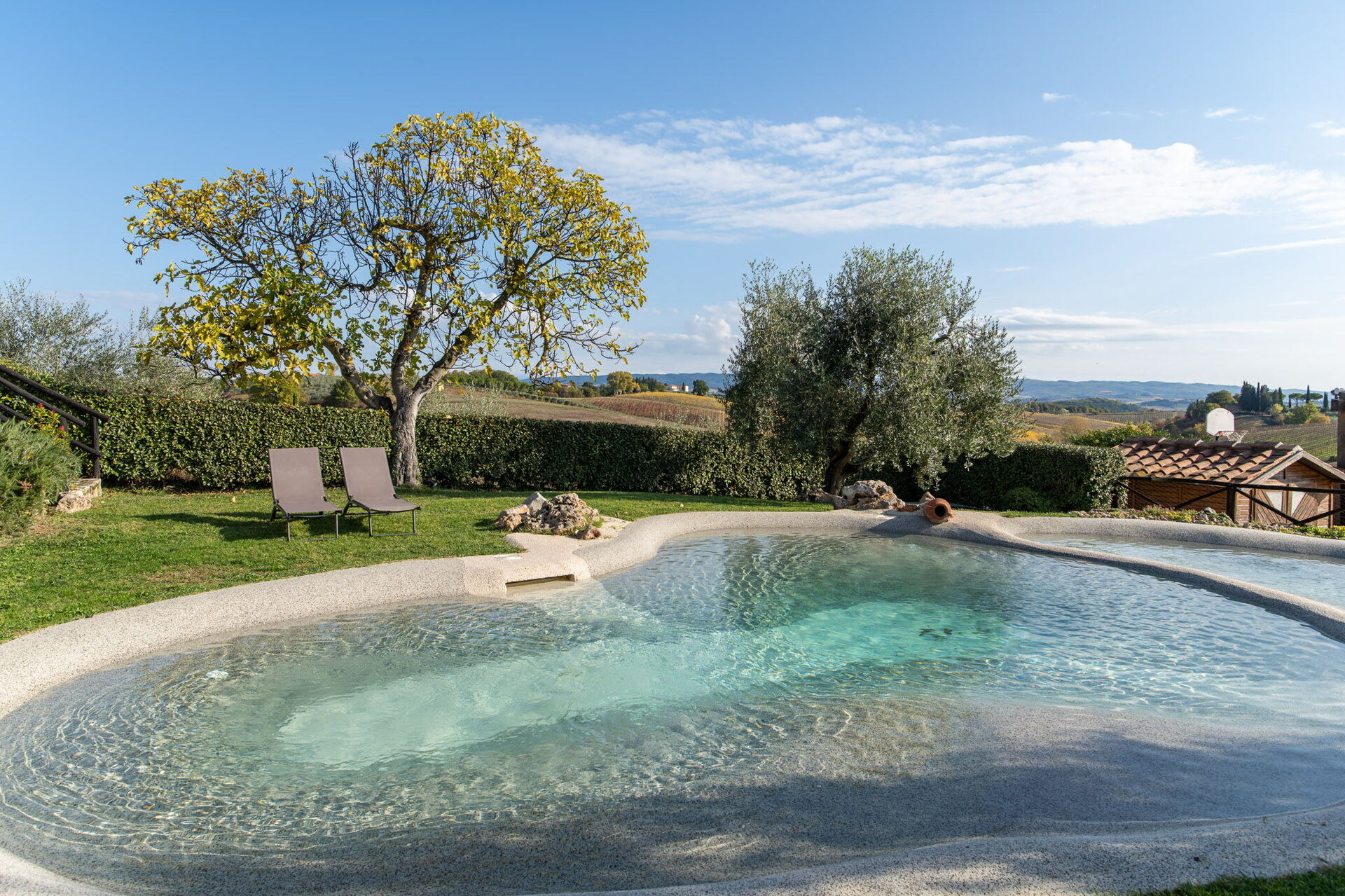 After arriving at Villa L'elsa Beautiful Country Home With View you’ll find a lovely clean well-maintained property with views of the hills perfect for a splendid holiday in Tuscany. After a hectic day of visiting museums, spend some time with friends and family poolside enjoying a glass of wine - a perfect way to relax at the end the day. Outside you will also find a hot tub and barbecue grill. Dining with friends and family is a big part of the Tuscan culture. Take advantage of the well-equipped kitchen to prepare meals using local produce while on your holiday. The kitchen includes coffee machine, microwave, toaster, stove and refrigerator, as well as, plenty of tableware and cutlery for up to 14 people. Dine 'al fresco' like a real Tuscan, the fully furnished veranda is the perfect setting to enjoy food, family and the lovely Tuscan weather.