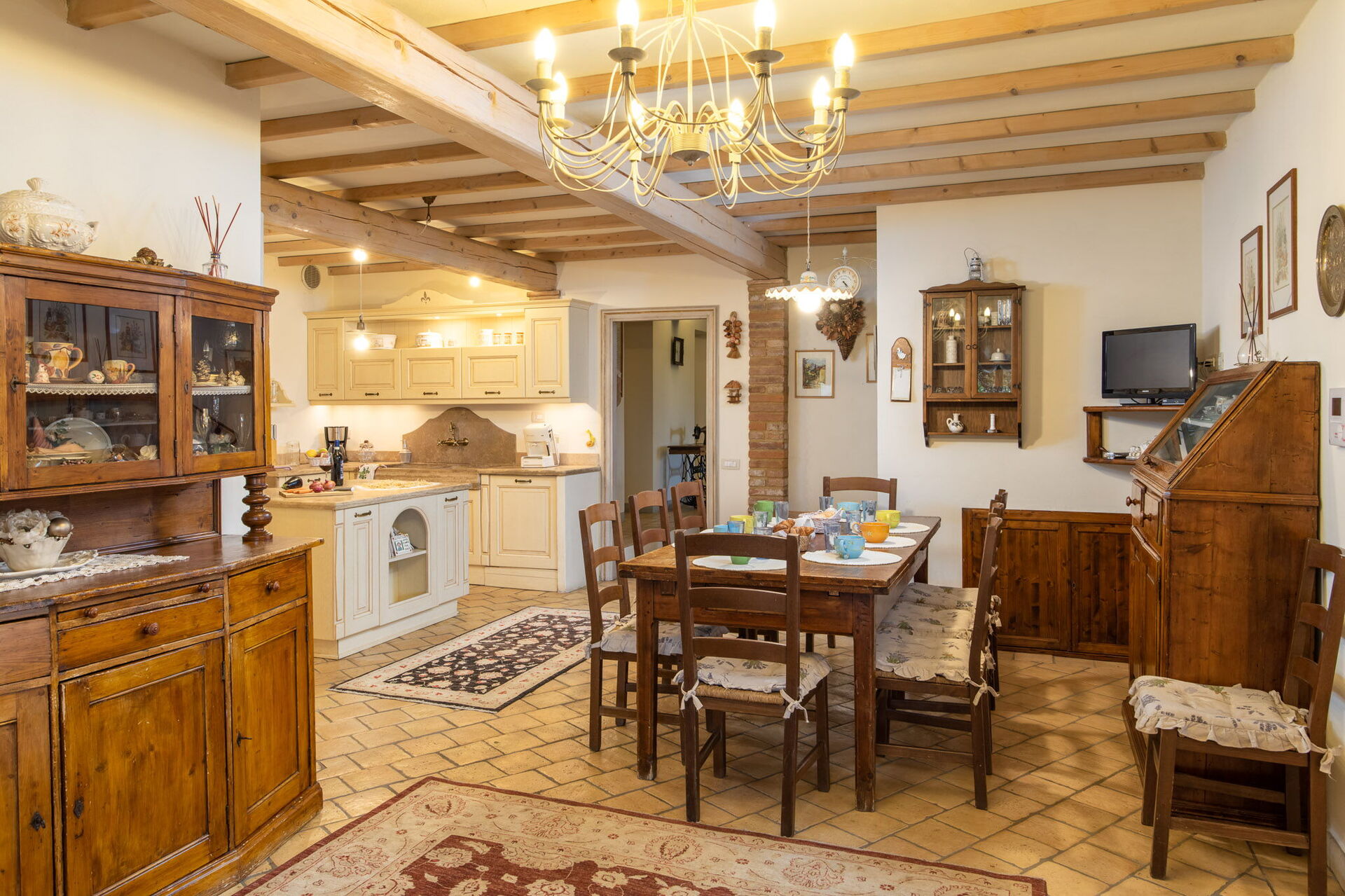 Dining room: dining table (people: 14), WIFI internet, co2 detector, exit to the garden, exit to the terrace.