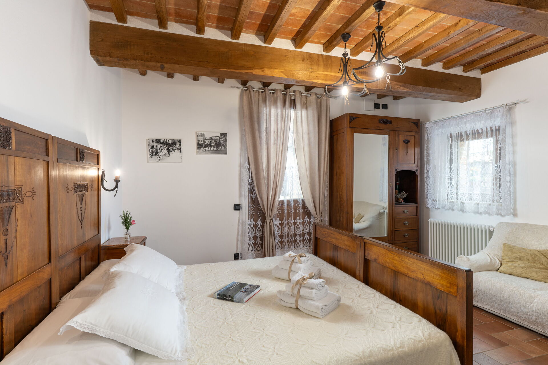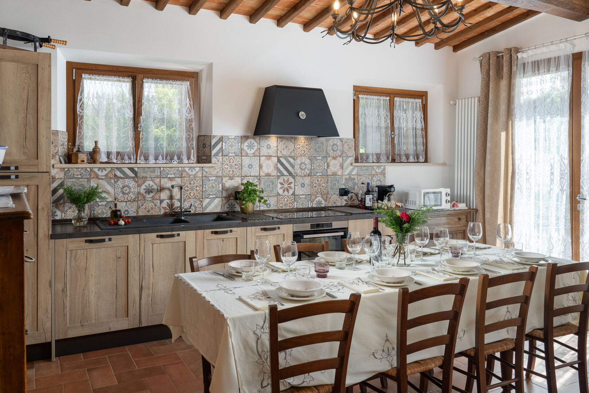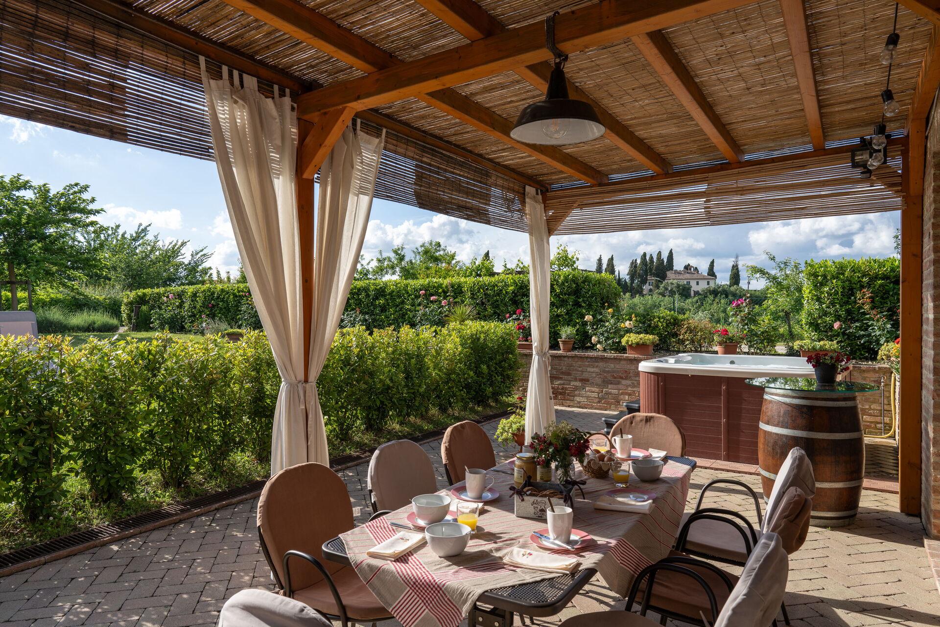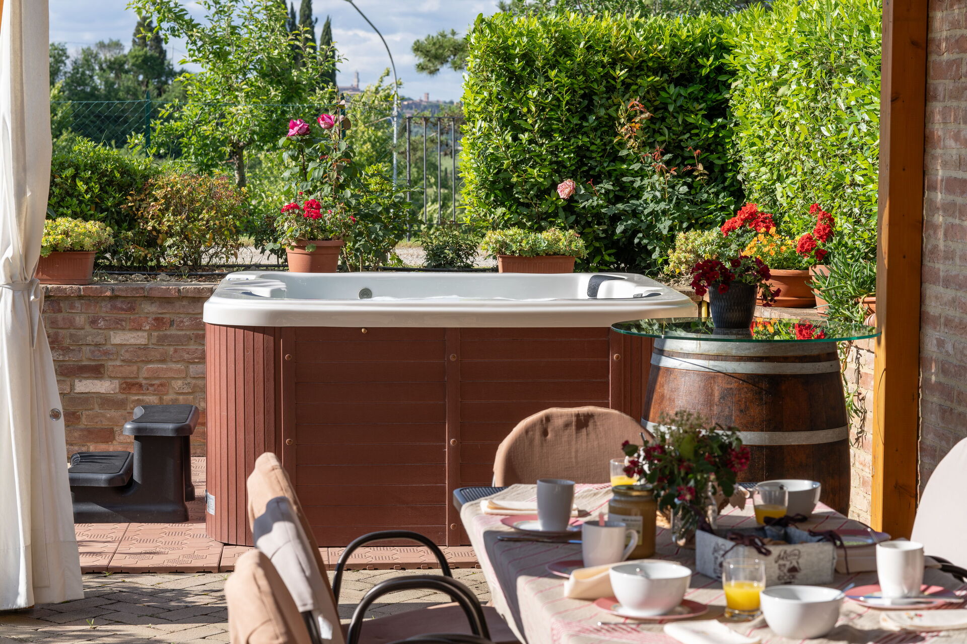 When you arrive at Capanna Di Elfo you’ll find a lovely clean well-maintained property with views of the hills ideal for a splendid vacation in Tuscany. For your enjoyment you will find a private garden where you can unwind while enjoying a nice cold beverage after a busy day of sightseeing. A real benefit of renting a home, instead of multiple hotel rooms, is the ability to relax after a busy day of sightseeing with family and friends. Enjoy a meal together along with some local wine to finish the day. Also available outdoors are a barbecue grill, hot tub and patio. Dining with friends and family is a big part of the Tuscan culture. Take advantage of the well-equipped kitchen to prepare meals using local produce while on your holiday. The kitchen includes coffee machine, toaster, stove and refrigerator, as well as, plenty of tableware and cutlery for up to eight people. Dine 'al fresco' like a real Tuscan, the fully furnished veranda is the ideal setting to enjoy food, family and the lovely Tuscan weather.