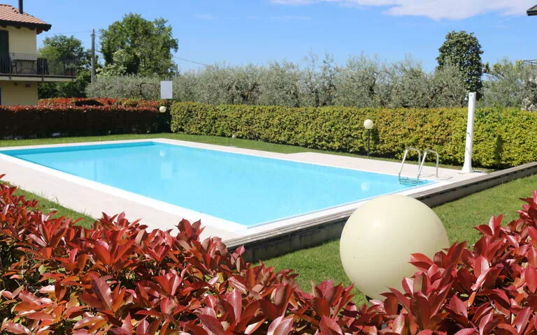 The outdoor spaces at Residence "Romeo e Giulietta" invite you to unwind in a serene natural setting. The shared grounds feature a well-maintained lawn complemented by lush plants and greenery, creating a welcoming environment ideal for relaxation. The swimming pool, measuring 6 x 12 metres, is available for shared use during the seasonal period running from 1 June to 30 September, making it the perfect amenity to enjoy during the warmer months. The fenced property ensures a safe and private atmosphere, allowing you to make the most of the exterior areas with complete peace of mind.