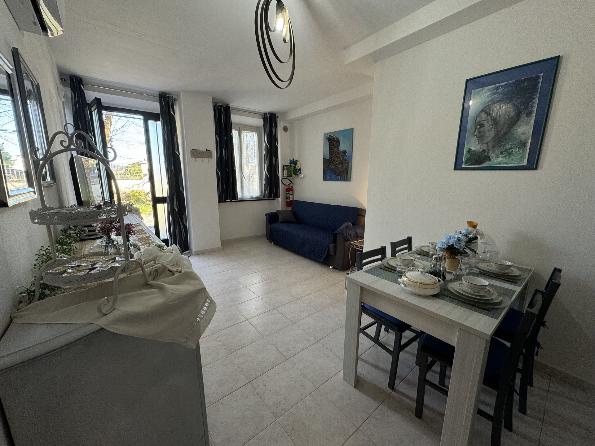 Kitchen + living room: well equipped kitchen, dining table (people: 4), fridge, freezer, stove top, oven, toaster, american coffee machine, sofa bed (width: 1.4m), WIFI internet, air conditioning, mosquito net, television, exit to the garden.