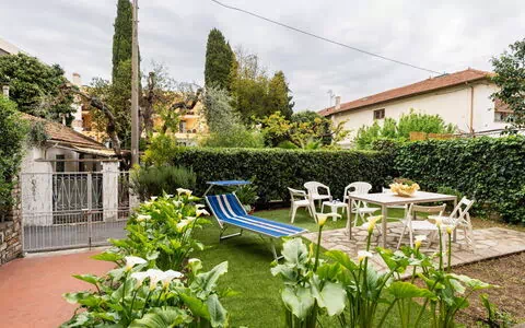 The apartment offers various amenities for your comfort and convenience. It is equipped with gas heating and air conditioning (heating is available only from November 1st to April 15th). The terrace spanning 20 square meters and the garden provide outdoor spaces for relaxation. Terrace furniture is included for your enjoyment. You will also have access to a washing machine, a baby cot for up to 2-year-olds, and a hair dryer. Internet (WiFi) is provided free of charge. Parking and a garage at the house are available for your use.