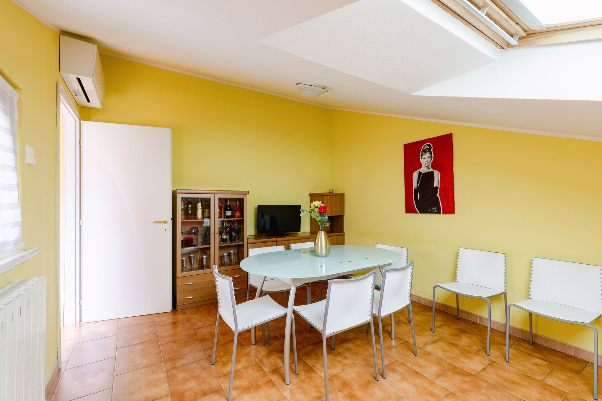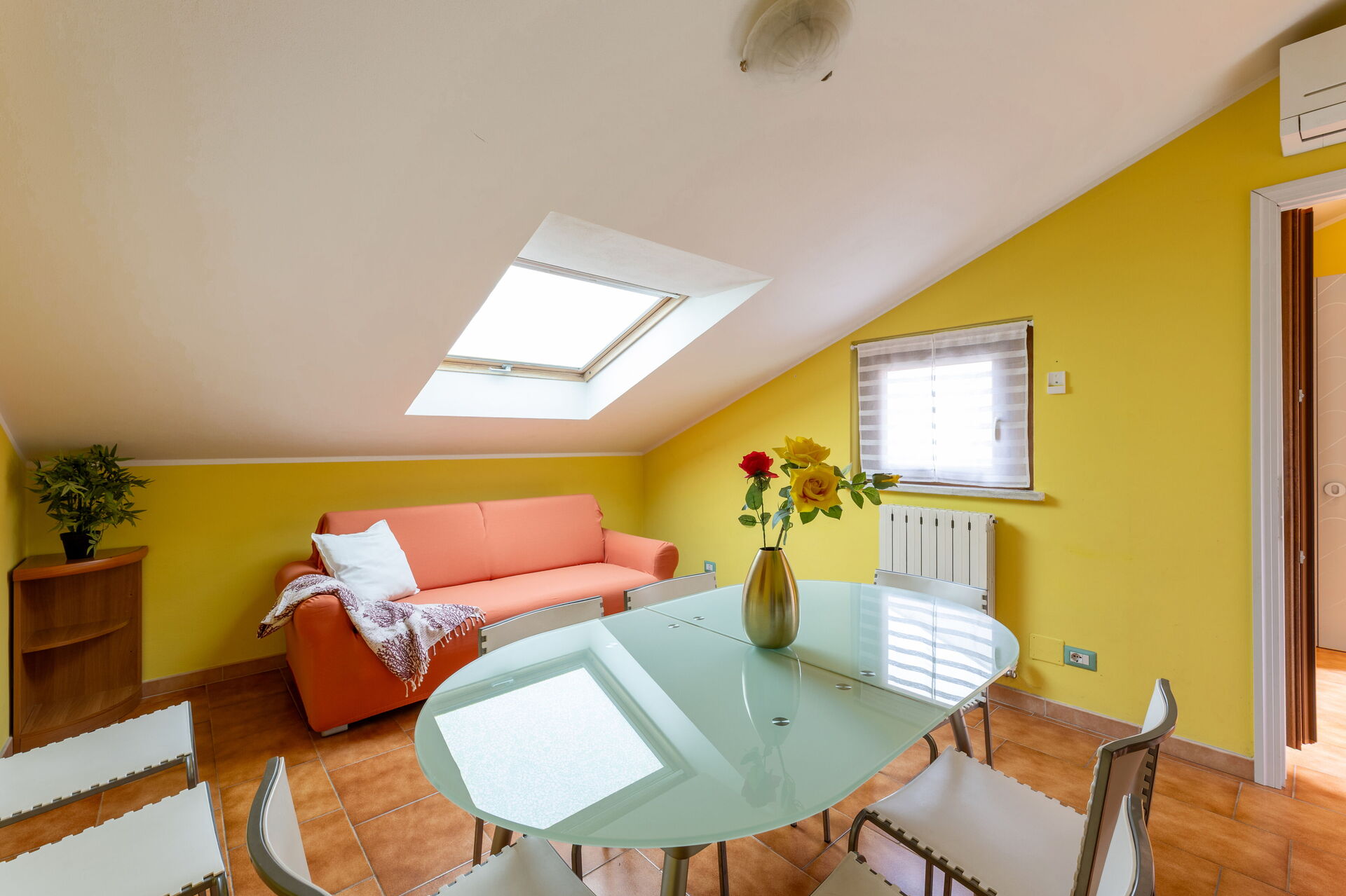 Living room: dining table, sofa bed double, WIFI internet, satellite tv, exit to the terrace.
