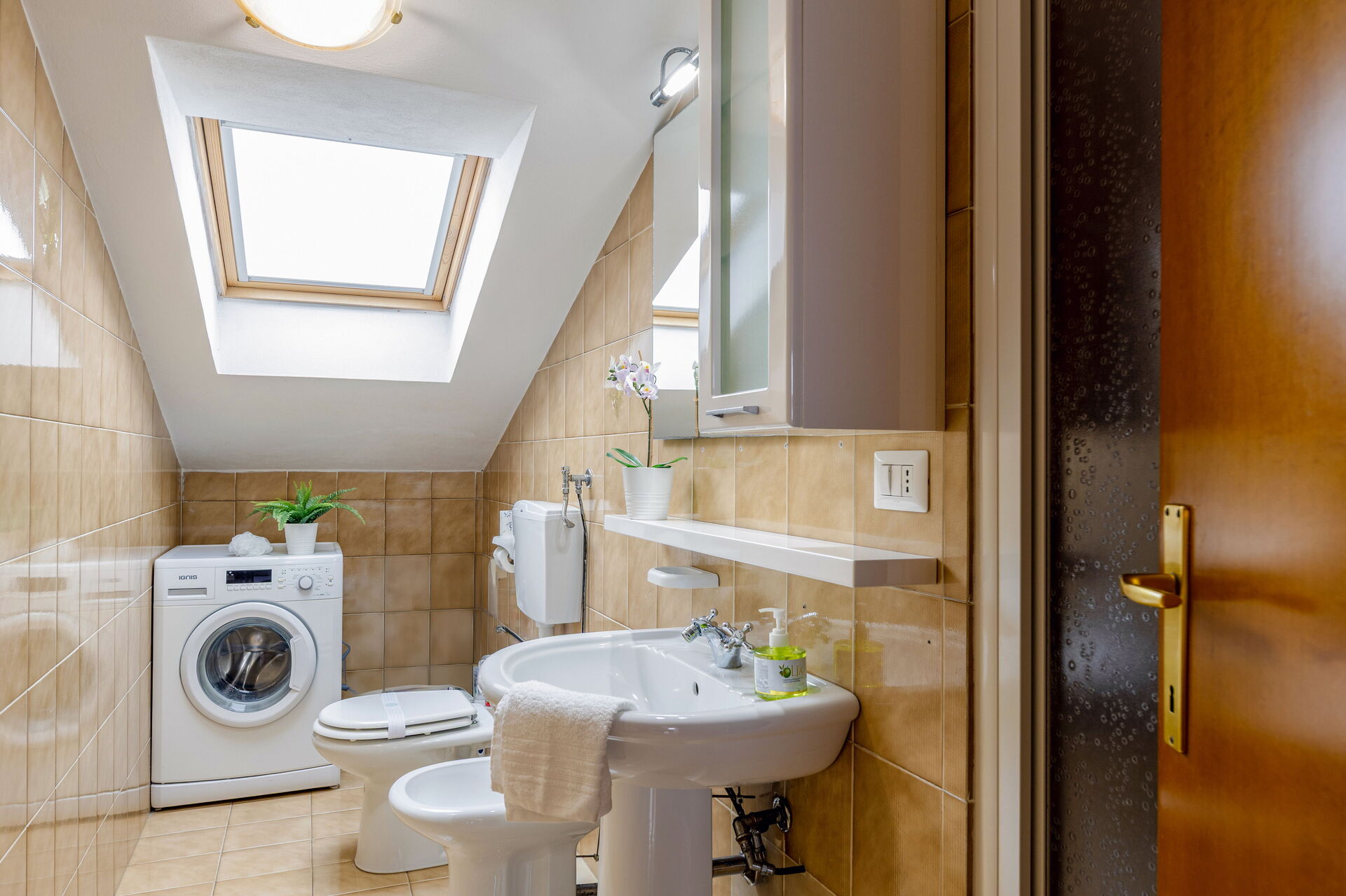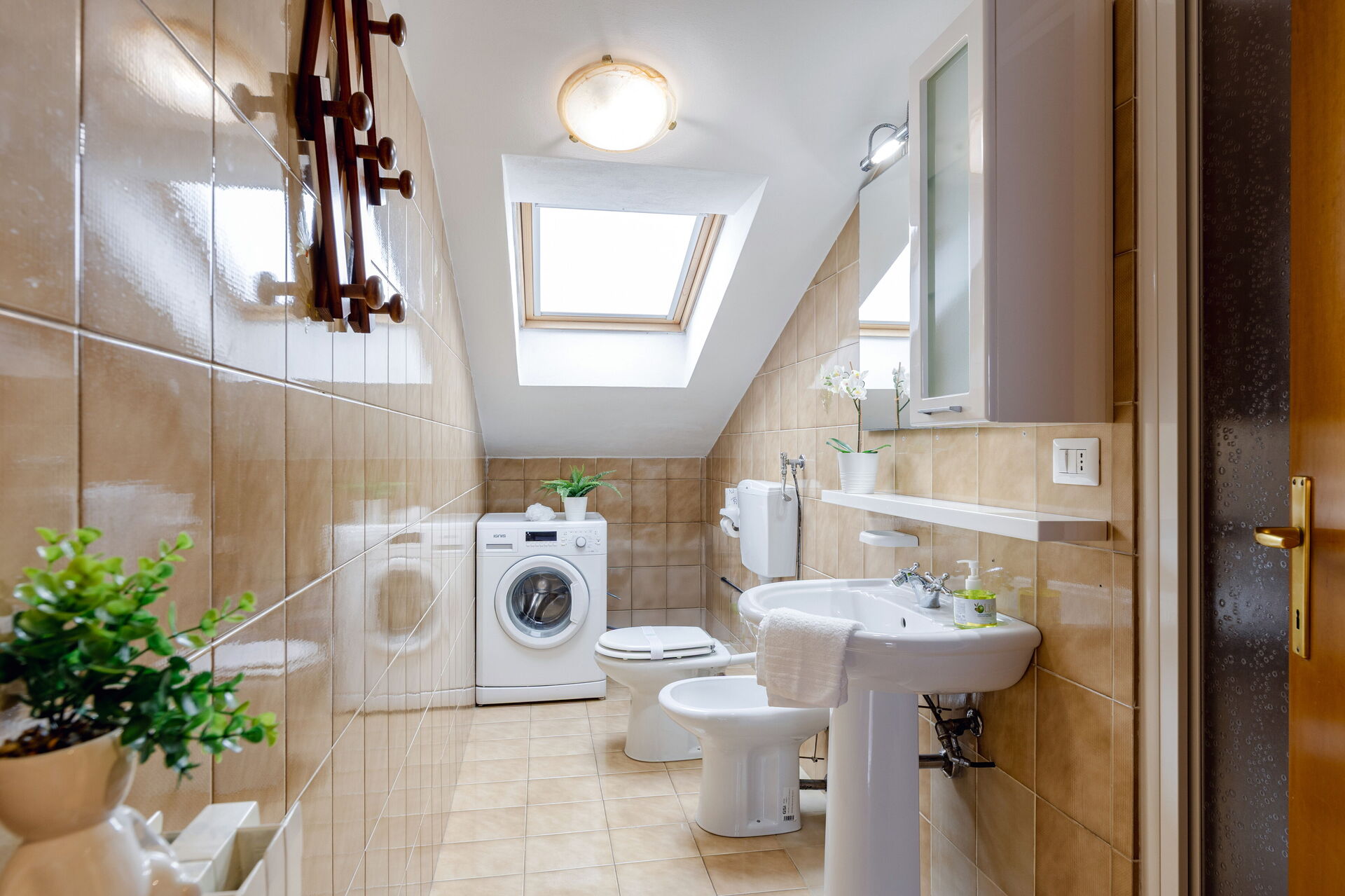 Bathroom: basin, toilet, bidet, shower, hairdryer, washing machine.