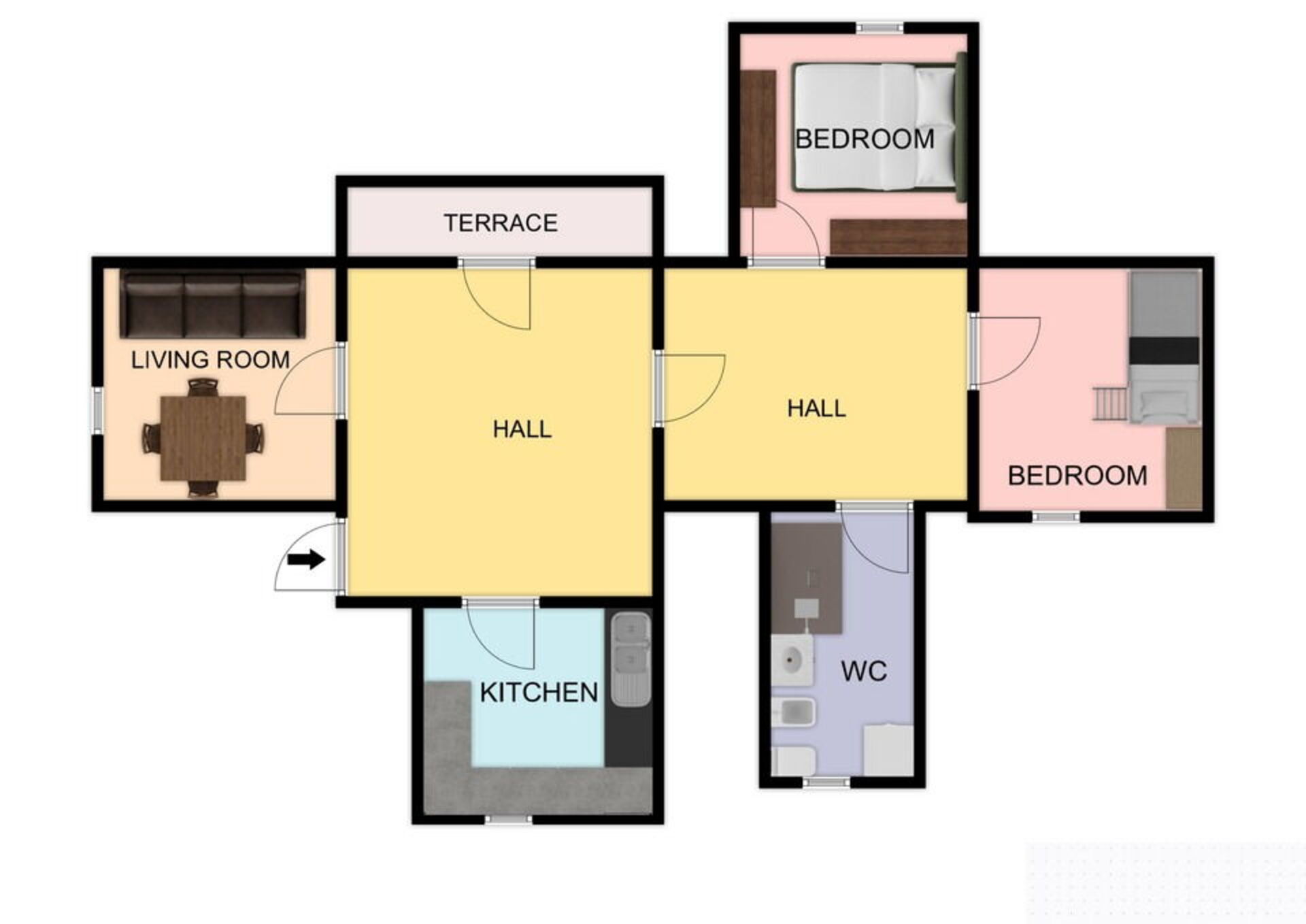 Including: kitchen, living room, 2 bedrooms, bathroom.