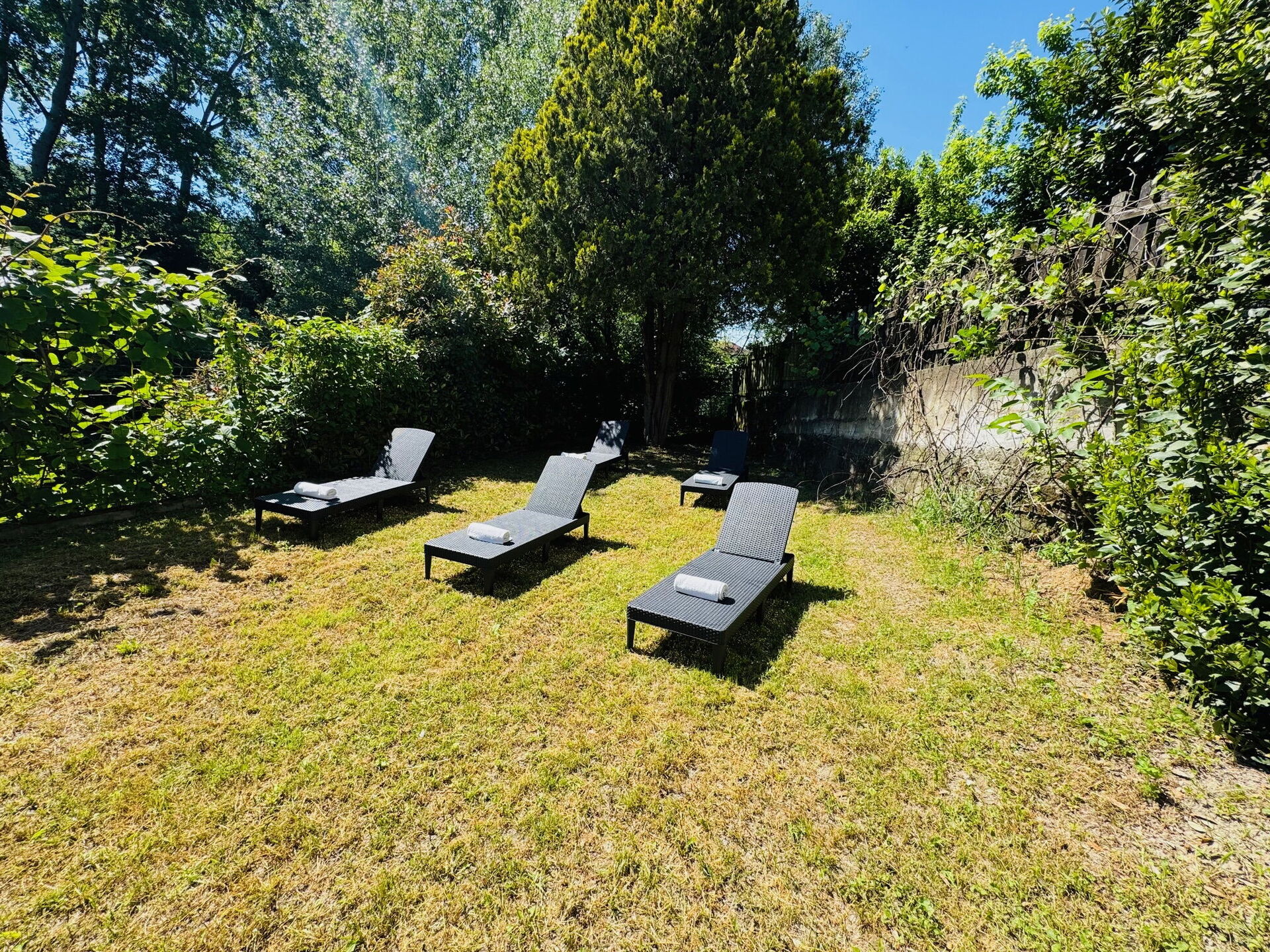 Garden (500 m2): swimming pool, barbecue, al fresco dining, dining table (people: 9), garden furniture, terrace furniture, six sunbeds, enclosed property.