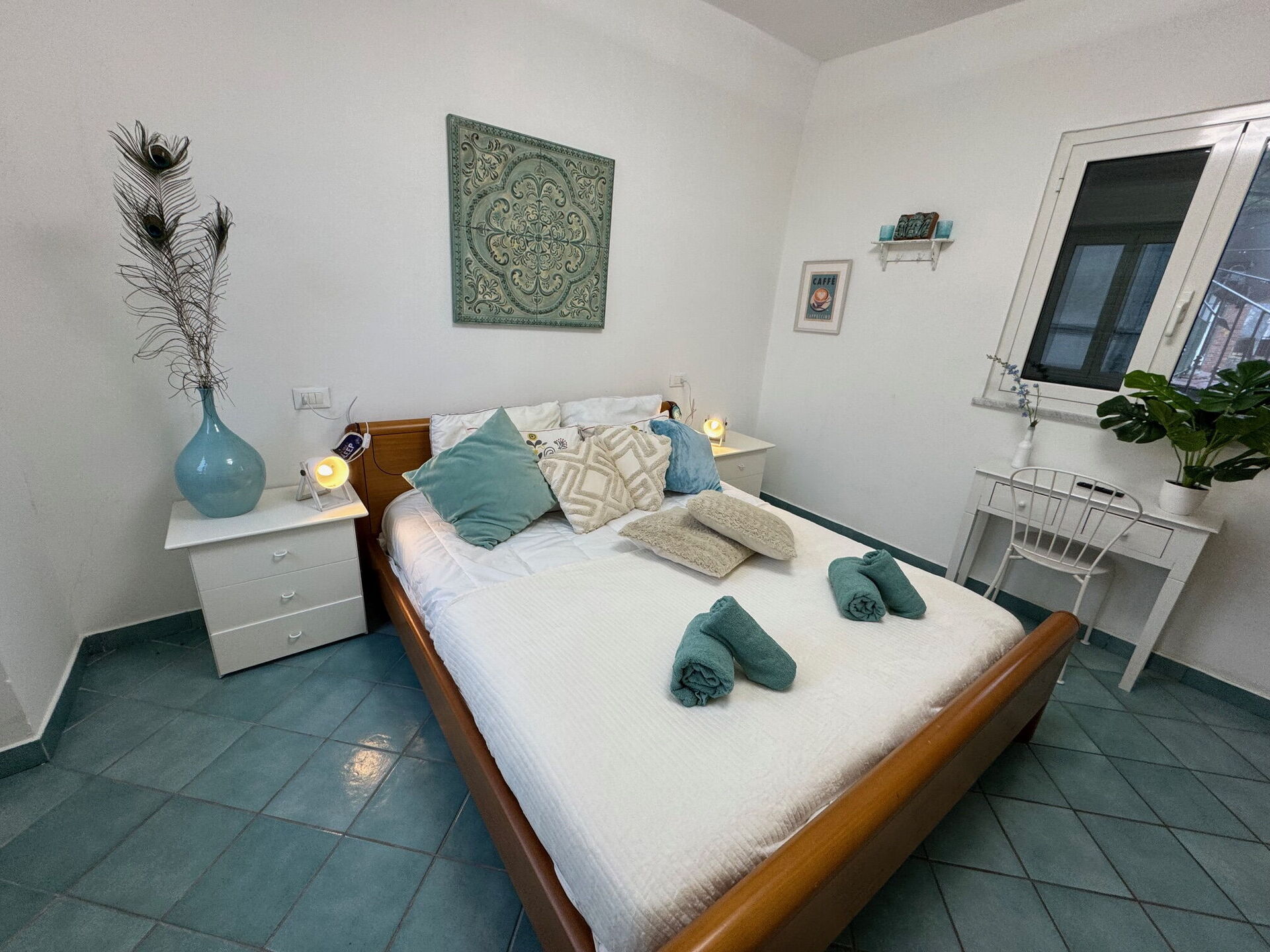 Bedroom 3 (10 m2): double bed, ceiling fan, working desk.
