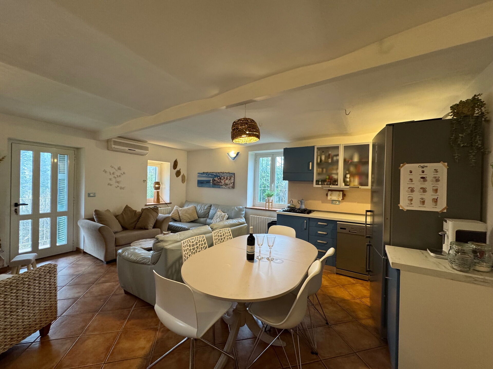 Kitchen + living room (18 m2): well equipped kitchen, dining table, dishwasher, fridge, freezer, stove top, oven, italian coffee machine, two sofas, fireplace, WIFI internet, air conditioning, exit to the garden, exit to the veranda.