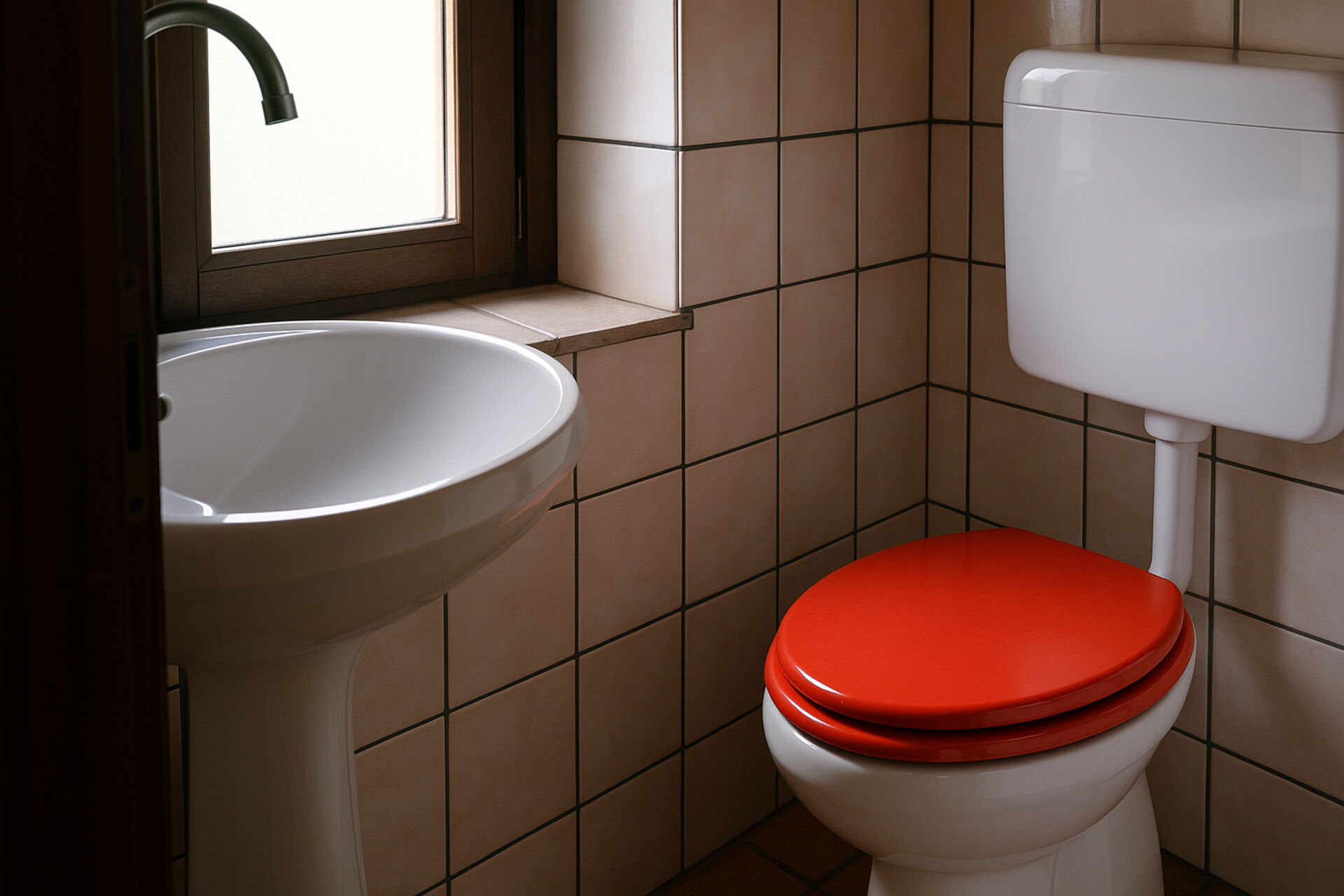Bathroom: basin, toilet, bidet, shower.