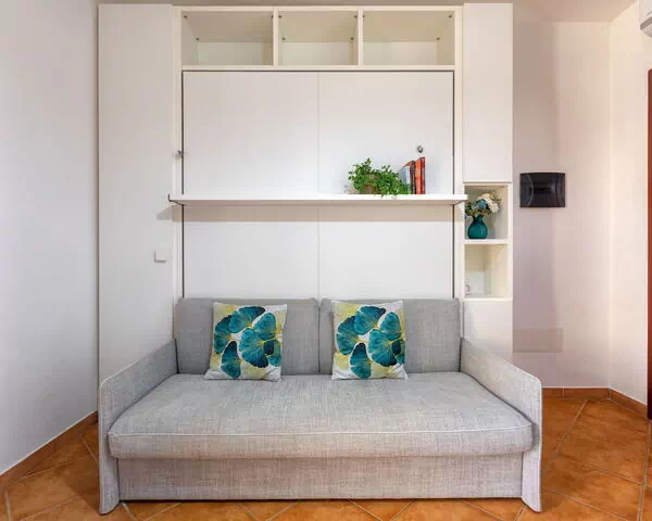 The Sa Domu De Tara accommodation is a 2-room apartment with a total area of 47 square meters, situated on the upper ground floor. The living/dining room features a double wall-trunk bed and a TV with a flat screen. It also has an exit leading to the garden. There is one double bedroom in the unit. The kitchenette is equipped with an oven, 4 gas rings, a toaster, a kettle, and a microwave.