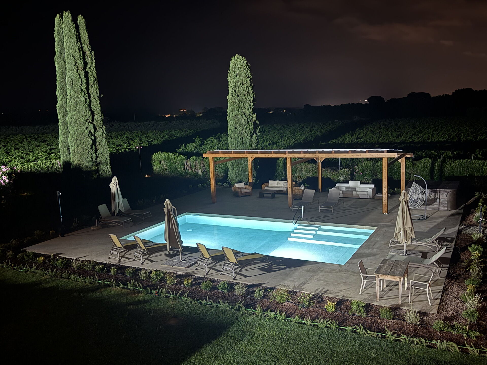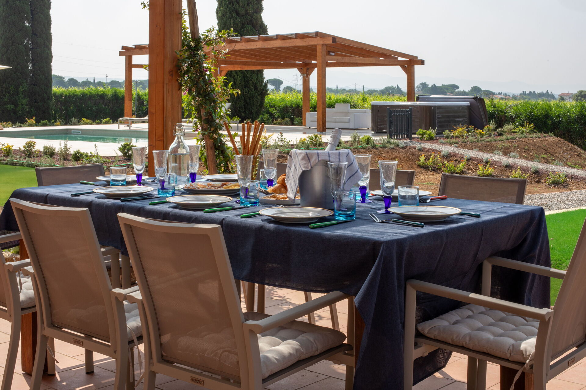 Terrace (60 m2): outdoor hot tub, dining table, WIFI internet, barbecue, garden furniture, terrace furniture, ten sunbeds.