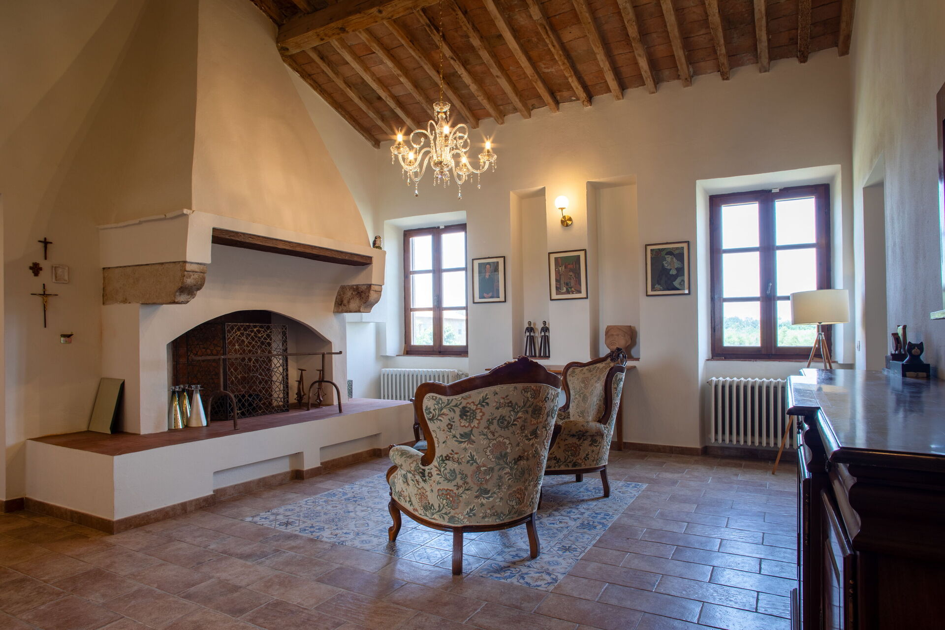 Living room (40 m2): two armchairs, working desk, fireplace, WIFI internet, air conditioning, smoke detector.