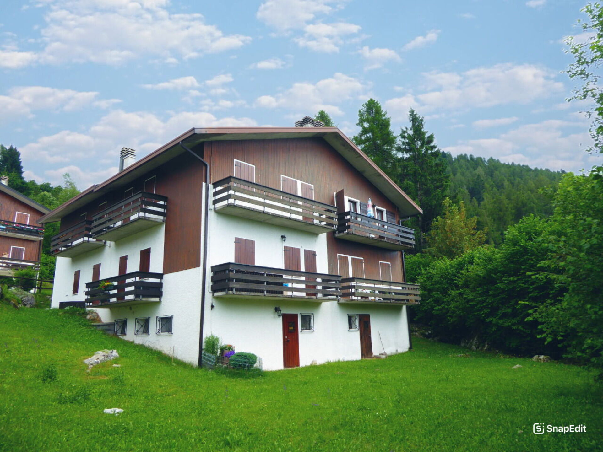 A cozy mountain house at 1,000 meters above sea level, located in a quiet residential hamlet on Mount Nevegal, bordering only on one side with adjacent properties, with which it shares the large outdoor spaces.