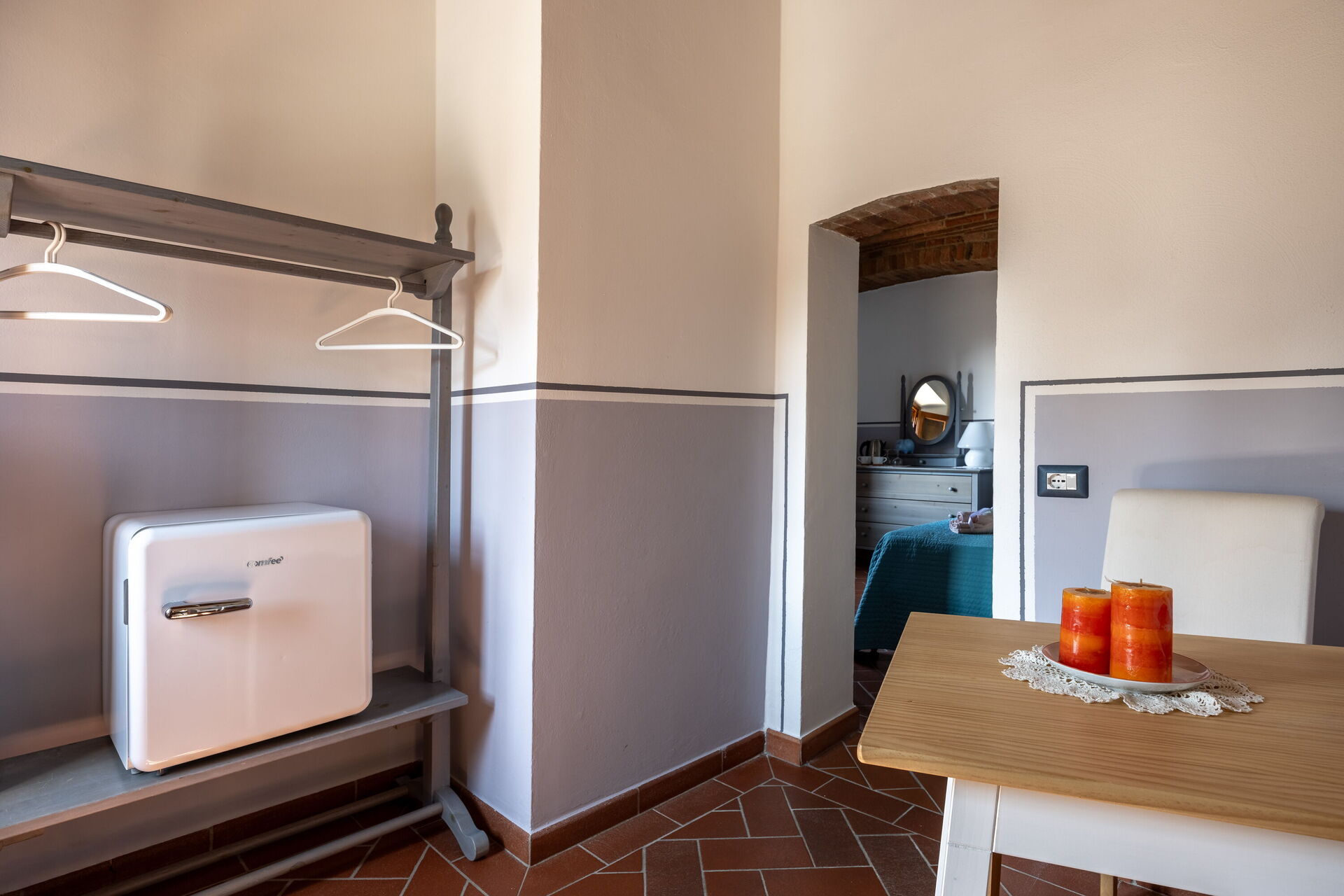 When you arrive you will be greeted by the owner or manager where you’ll find a beautiful clean well-maintained property with views of the hills perfect for a relaxing holiday in Tuscany. For your pleasure you will find a private garden where you can unwind while enjoying a nice cold beverage after a hectic day of shopping. A real benefit of renting a home, instead of multiple hotel rooms, is the ability to relax after a busy day of sightseeing with family and friends. Enjoy a meal together along with some local wine to finish the day. If you enjoy cooking for family and friends there is a well-equipped kitchen including coffee machine, microwave, toaster, stove and refrigerator, as well as, plenty of tableware and cutlery for up to eight people.