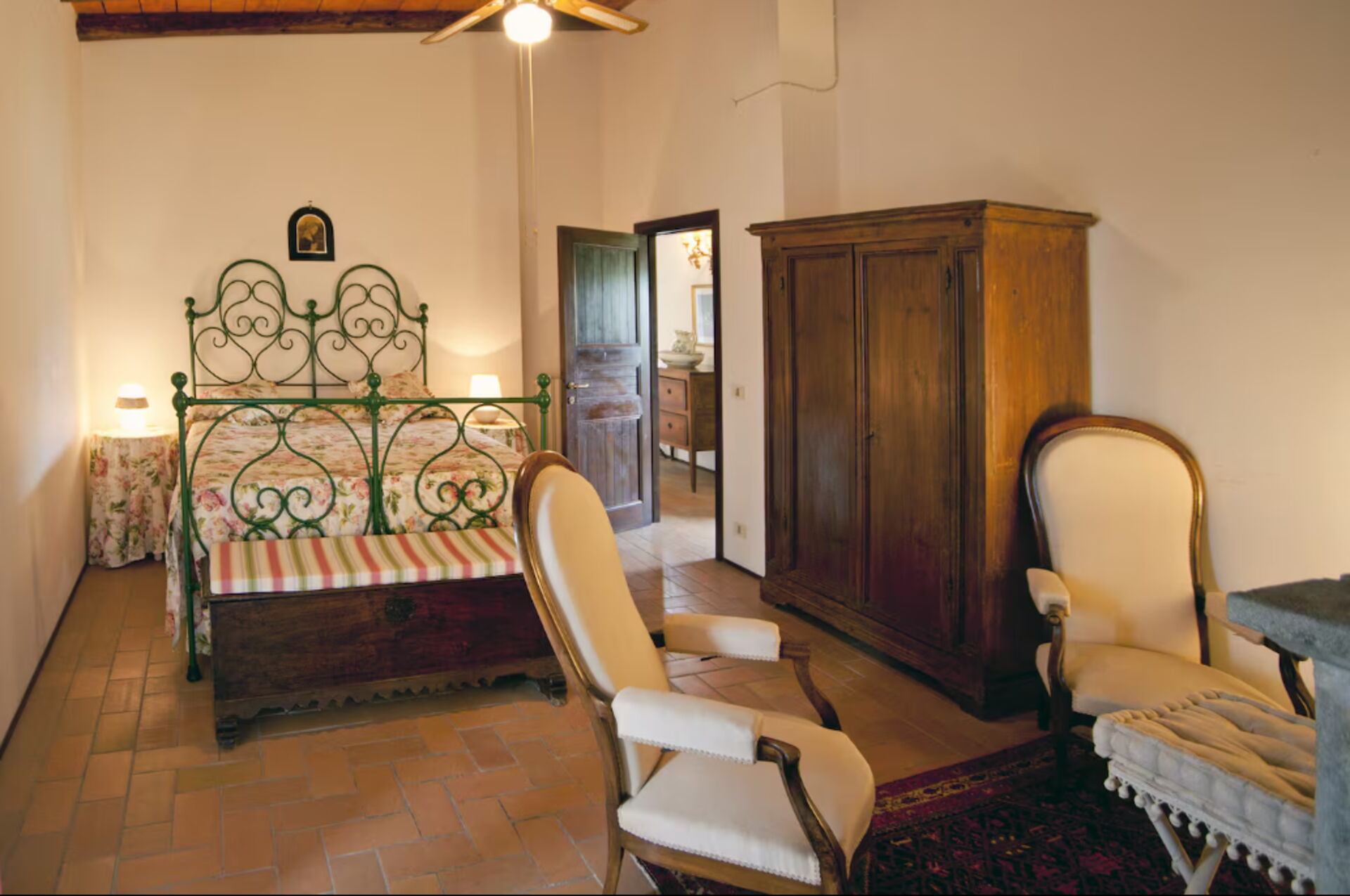 Kitchen + living room: well equipped kitchen, dining table, dishwasher, fridge, freezer, microwave, stove top, stove top, oven, italian coffee machine, washing machine, sofa, fireplace, WIFI internet, mosquito net, television, exit to the garden.
