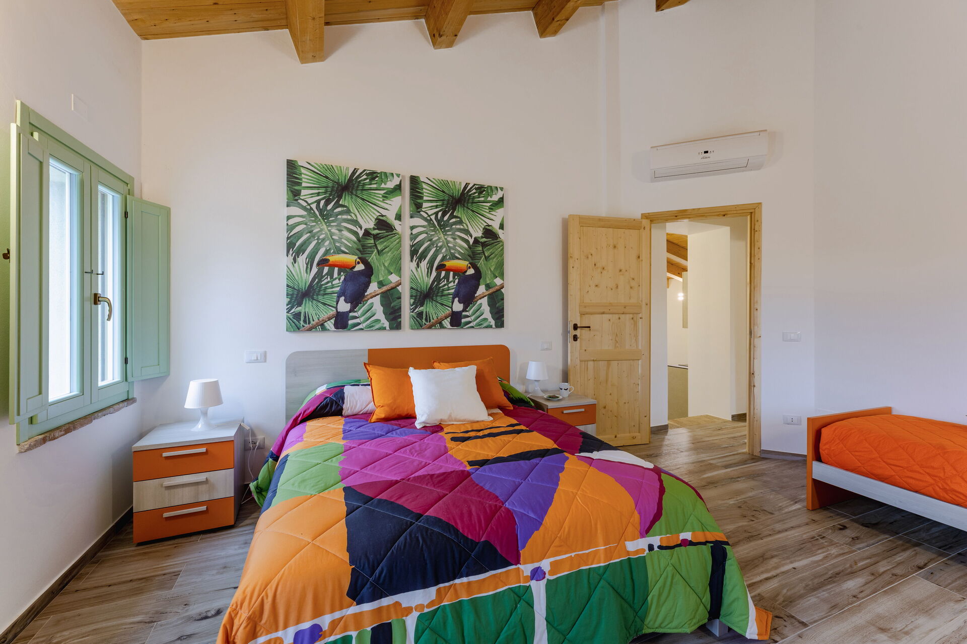 Bedroom 1: double bed, single bed, WIFI internet, air conditioning.