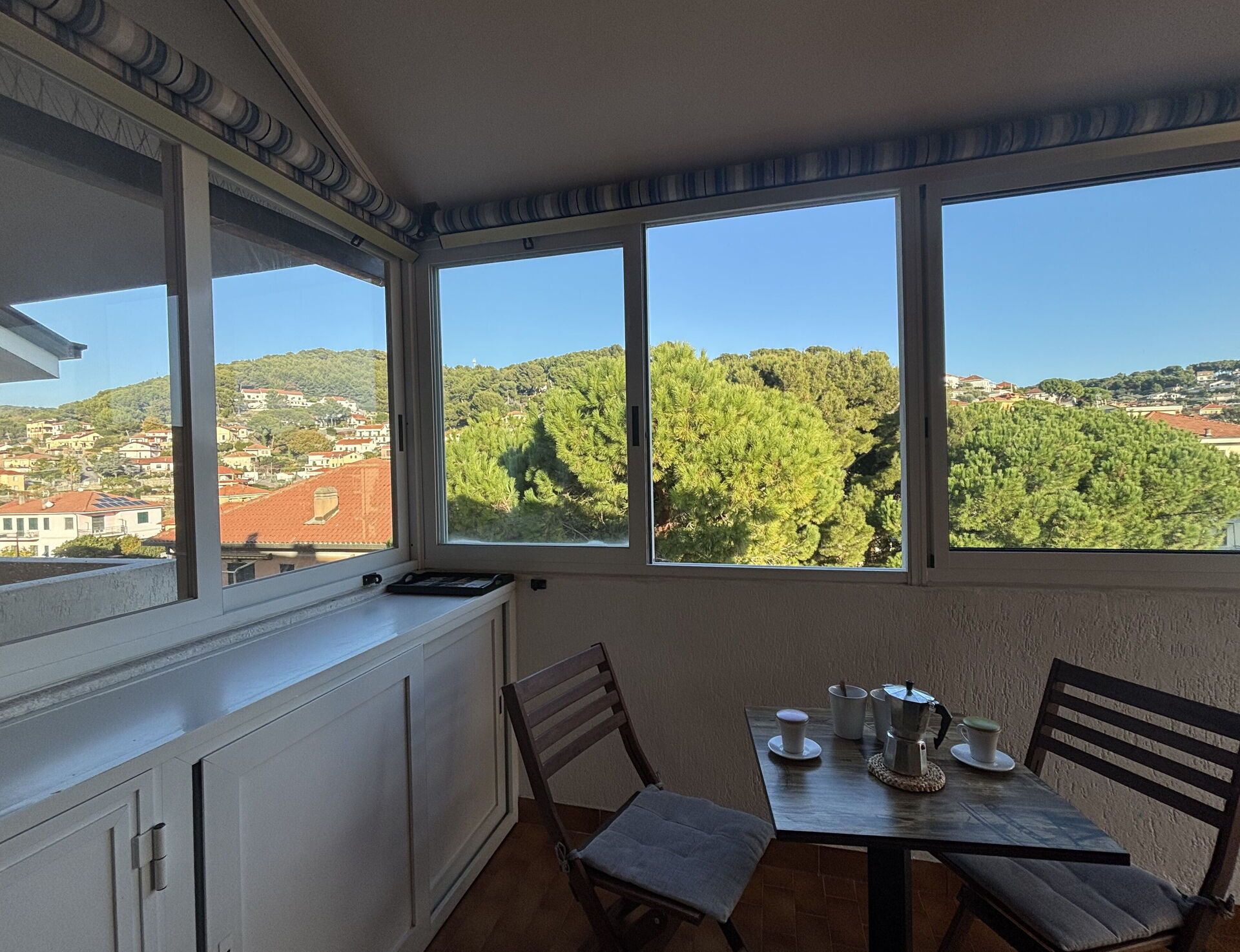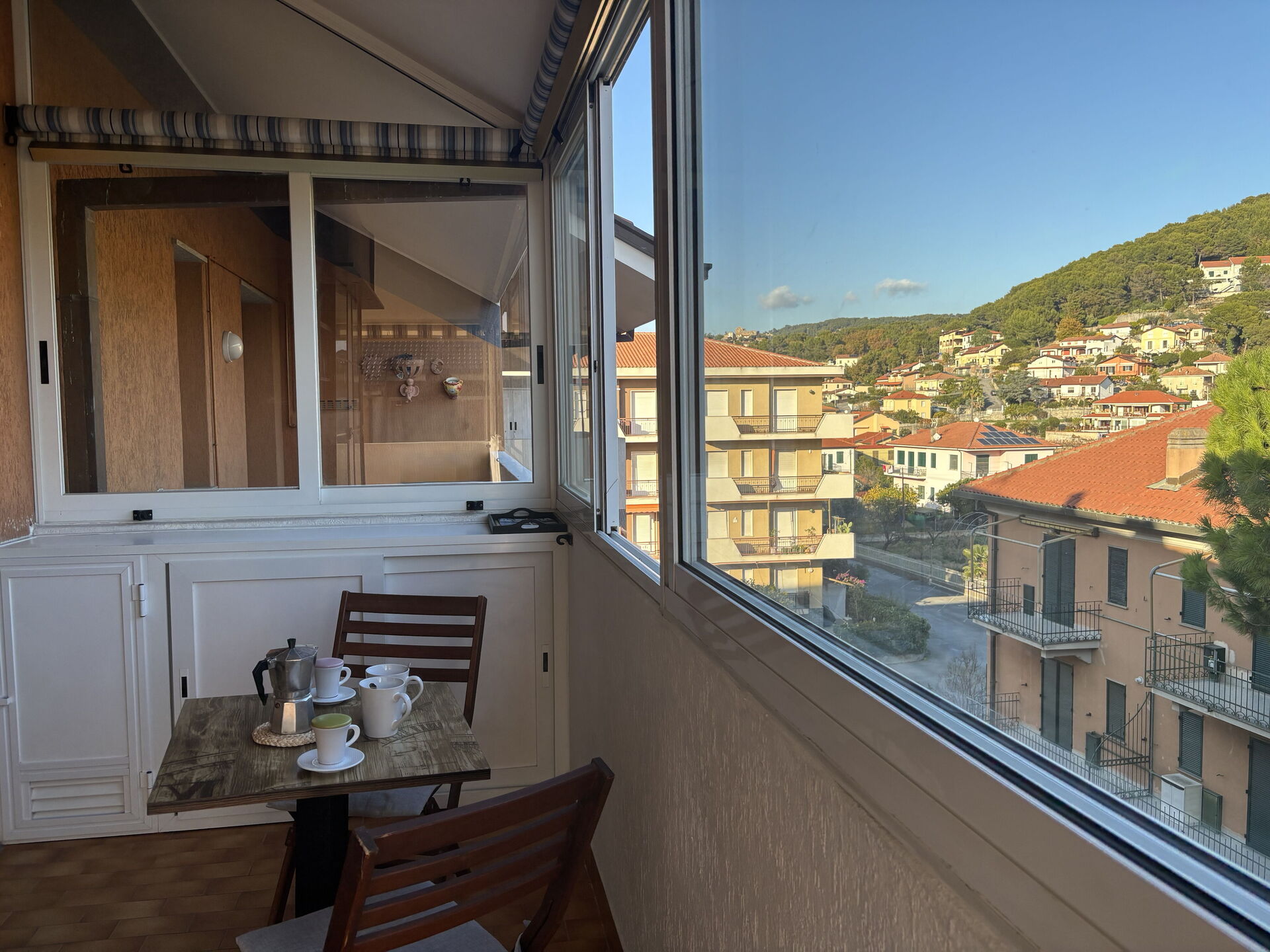 Upon arrival at La Casa di Viviana Terrace, Close to the Beach you’ll find a lovely clean well-maintained property ideal for a relaxing vacation in Liguria. Regardless of how you spend your days - visiting museums, sightseeing, shopping or just driving in the countryside, when you arrive home you can relax with your family and friends for a perfect ending to another day in Liguria. Dining with friends and family is a huge part of the Italian culture. Take advantage of the well-equipped kitchen to prepare meals using local produce while on your holiday. The kitchen includes coffee machine, microwave, stove and refrigerator, as well as, plenty of tableware and cutlery for up to four people. Dine 'al fresco' like a real Italian, the fully furnished veranda is the perfect setting to enjoy food, family and the nice Italian weather.