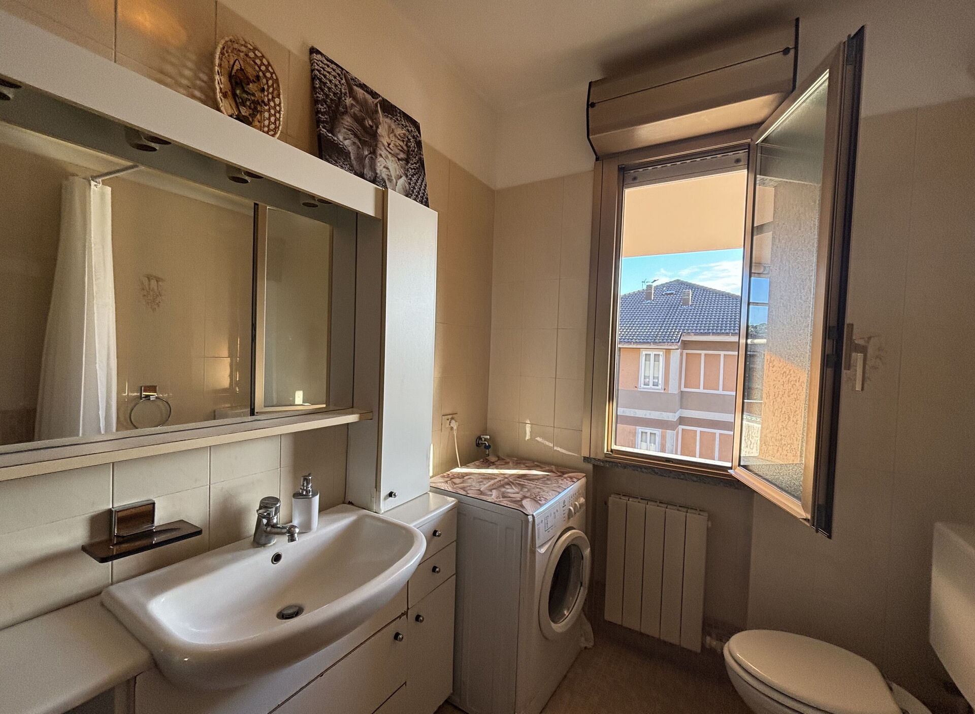 Bathroom: basin, toilet, bidet, shower, hairdryer, washing machine.