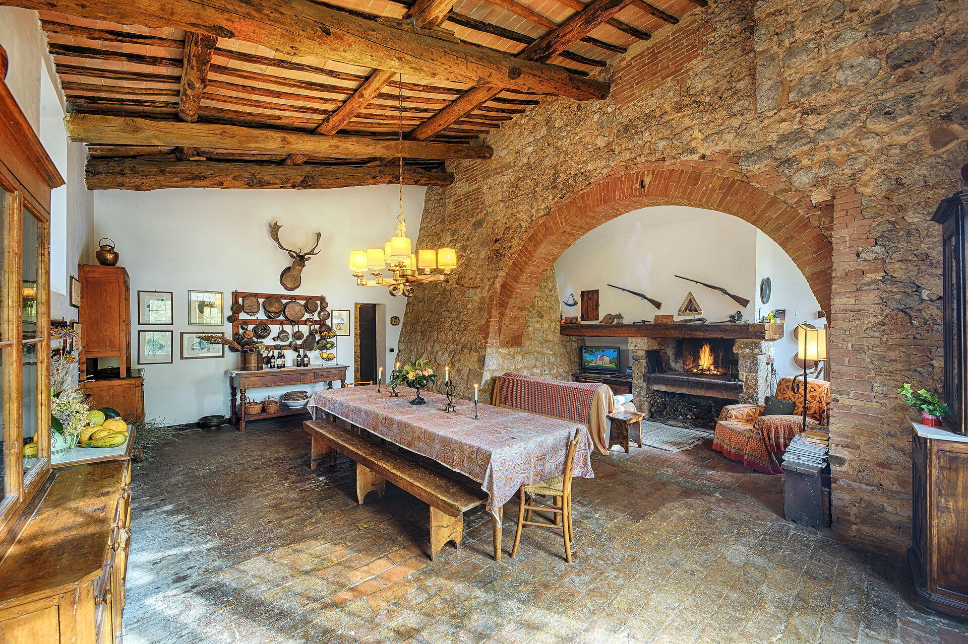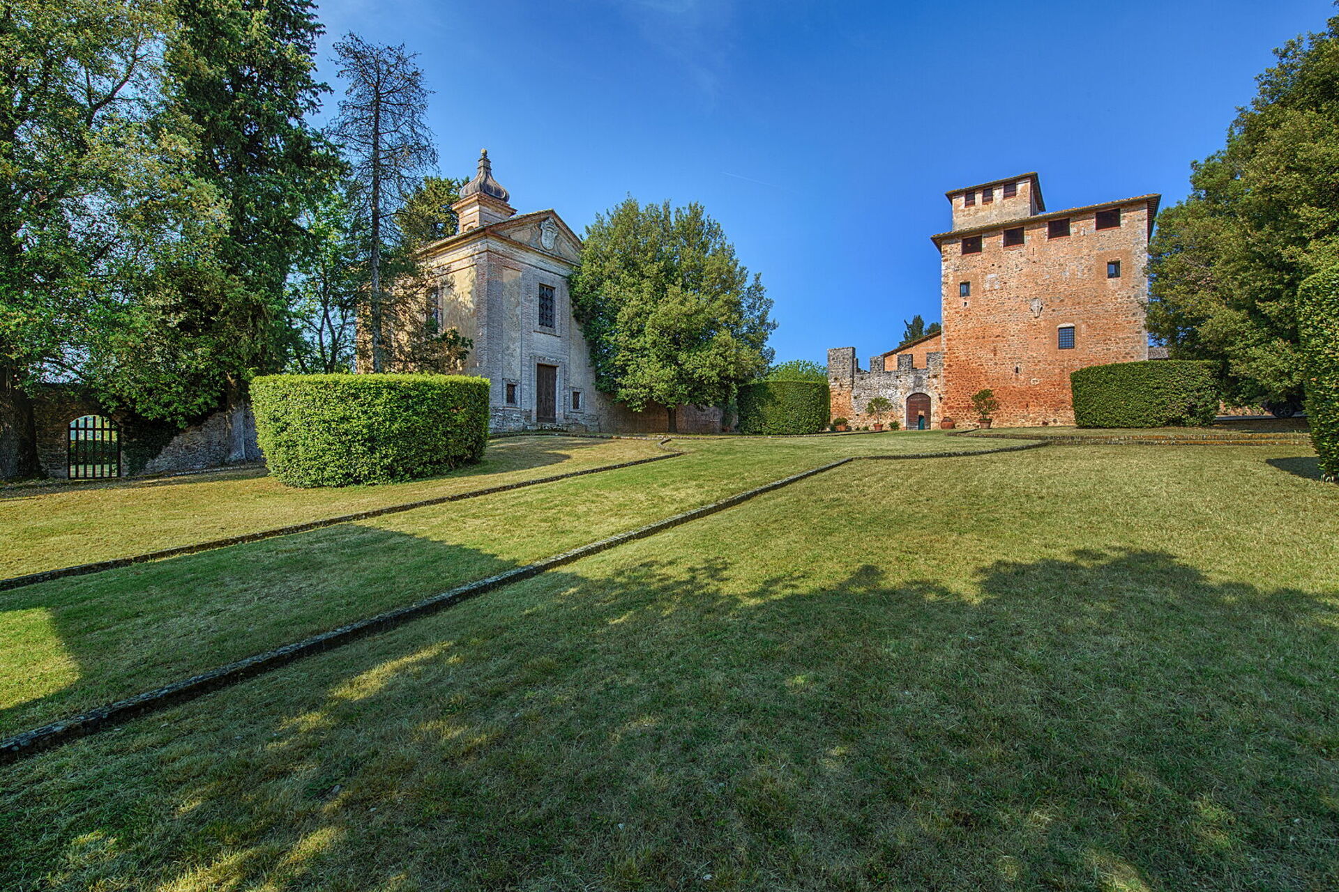 Nestled in the lush greenery of the Montagnola Senese, this magnificent property is a masterfully preserved 13th-century castle located just a 15-minute drive from the historic heart of Siena. The estate has been meticulously restored by its owners, who reside in the main tower in a secluded area that remains entirely private and separate from guest accommodations.