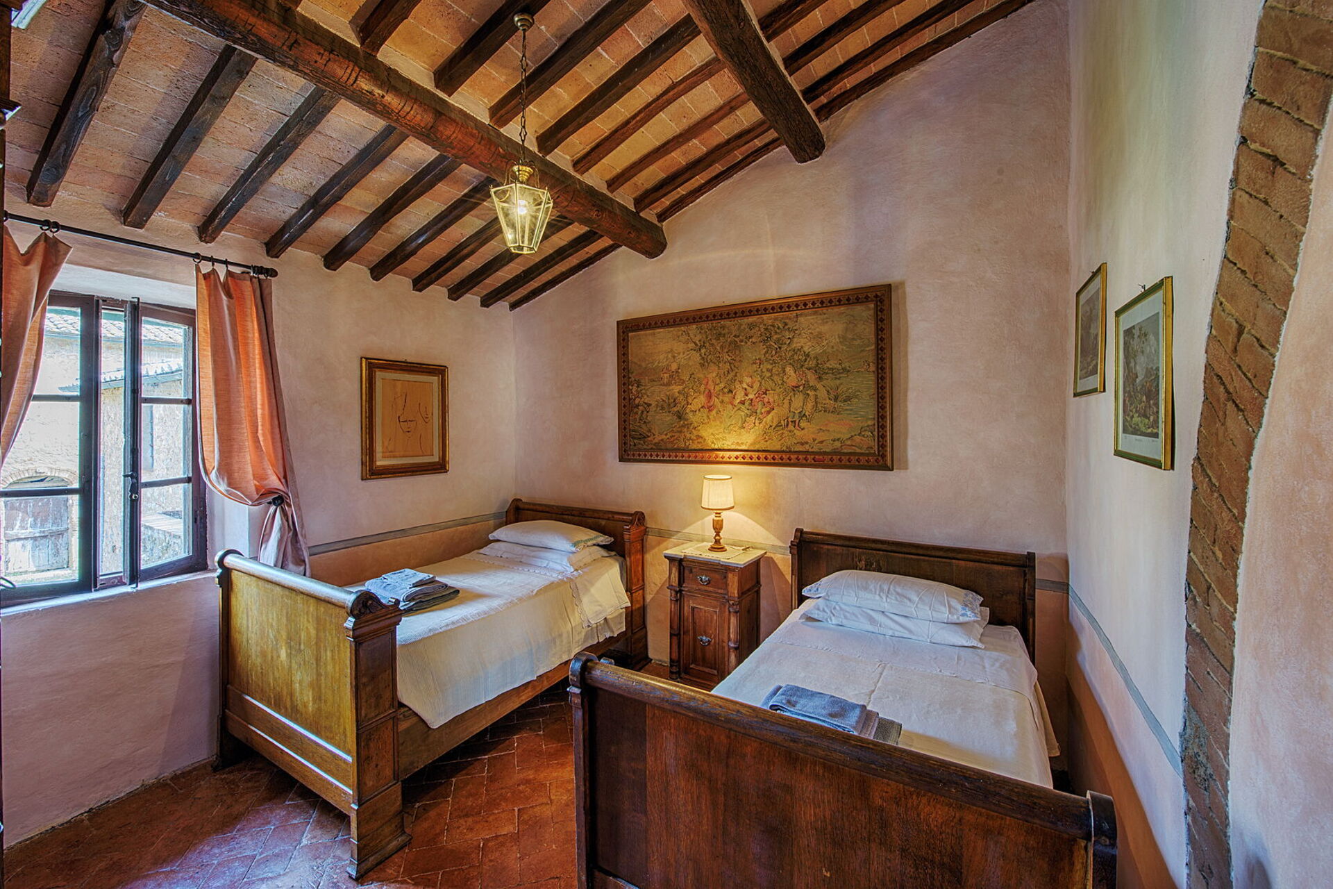 When you arrive at Secluded Wine Rustic Estate: 1300S Castle Suite & you’ll find a lovely clean well-maintained property with views of the hills ideal for a relaxing holiday in Tuscany. For your pleasure you will find a private pool where you can relax while enjoying a nice cold beverage after a busy day of visiting museums. Outdoors you will also find a playground and barbecue grill. Sharing a meal with friends and family is a big part of the Tuscan culture. Take advantage of the well-equipped kitchen to prepare meals using local produce while on your vacation. The kitchen includes coffee machine, microwave, toaster, stove and refrigerator, as well as, plenty of tableware and cutlery for up to 12 people. Dine 'al fresco' like a real Tuscan, the fully furnished balcony is the perfect setting to enjoy food, family and the beautiful Tuscan weather.