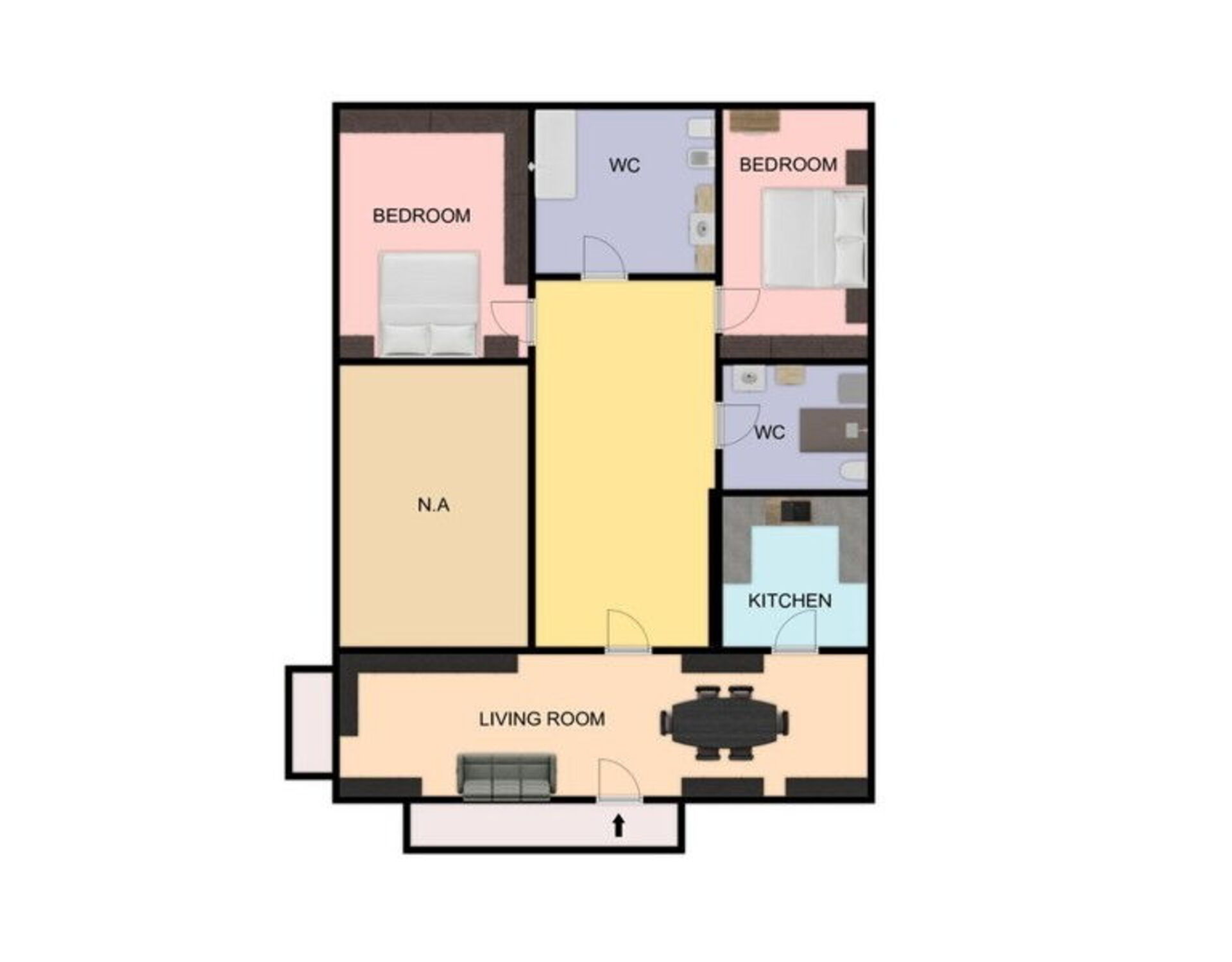 Bedroom 2: double bed, WIFI internet, armchair, working desk.