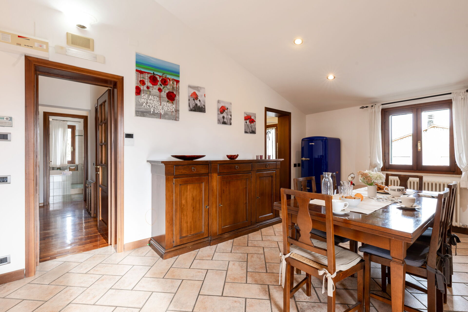 Upon arrival you will be greeted by the owner or manager where you’ll find a lovely clean well-maintained property with views of the hills perfect for a splendid vacation in Umbria. After a hectic day of visiting museums, spend some time with friends and family enjoying a glass of wine - a perfect way to unwind at the end the day. Sharing a meal with friends and family is a huge part of the Italian culture. Take advantage of the well-equipped kitchen to prepare meals using local produce while on your vacation. The kitchen includes stove and refrigerator, as well as, plenty of tableware and cutlery for up to six people.