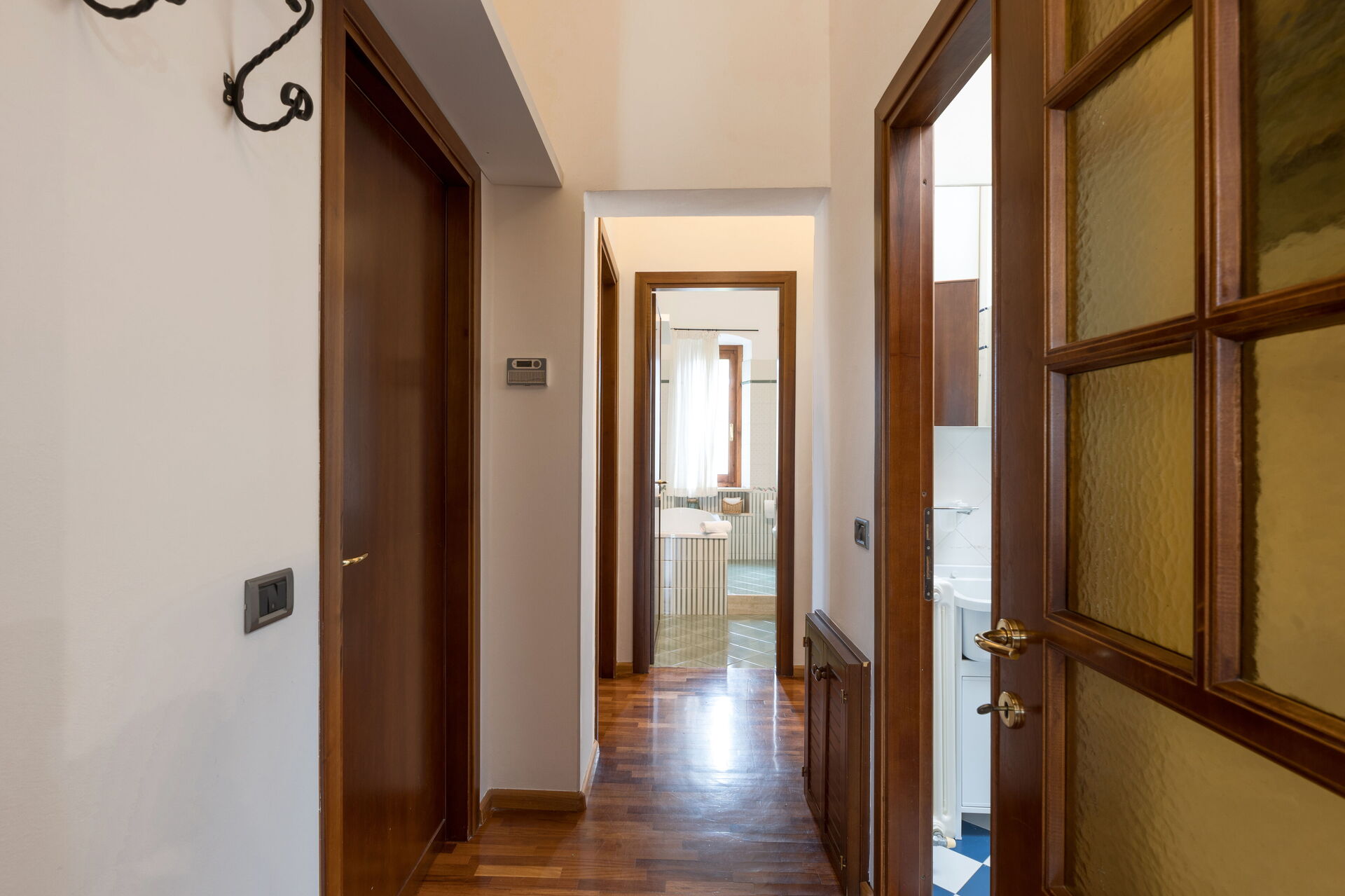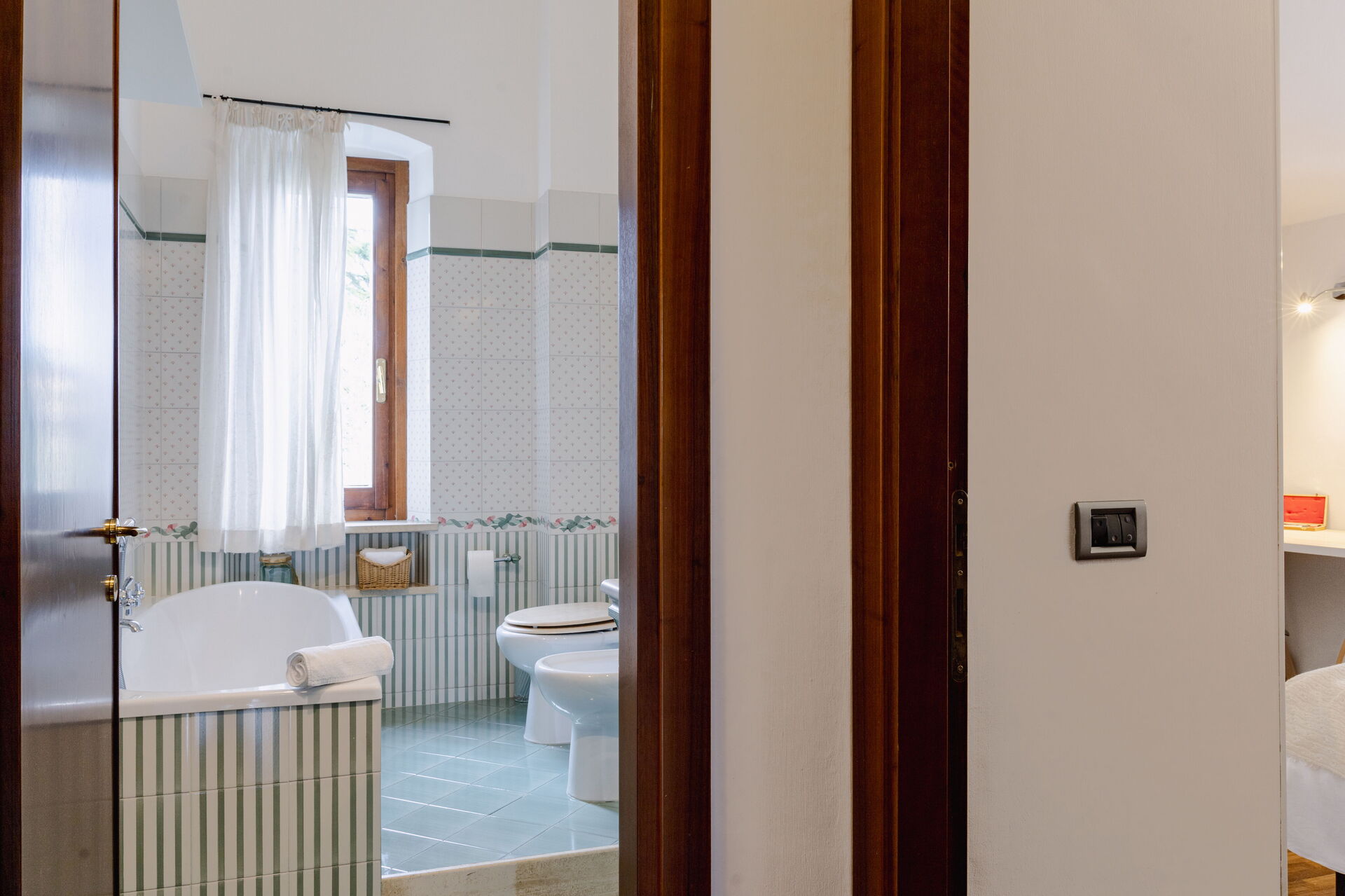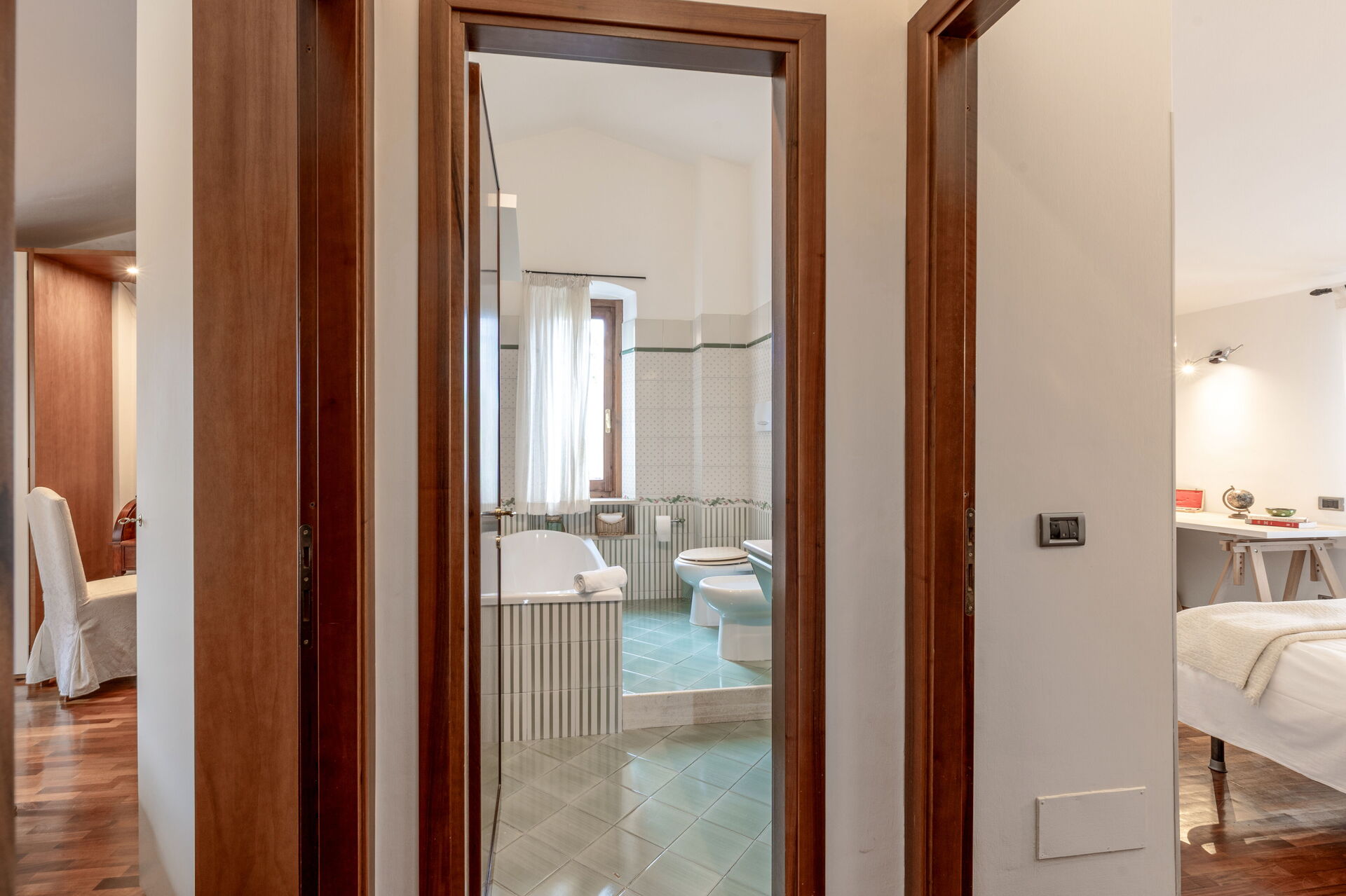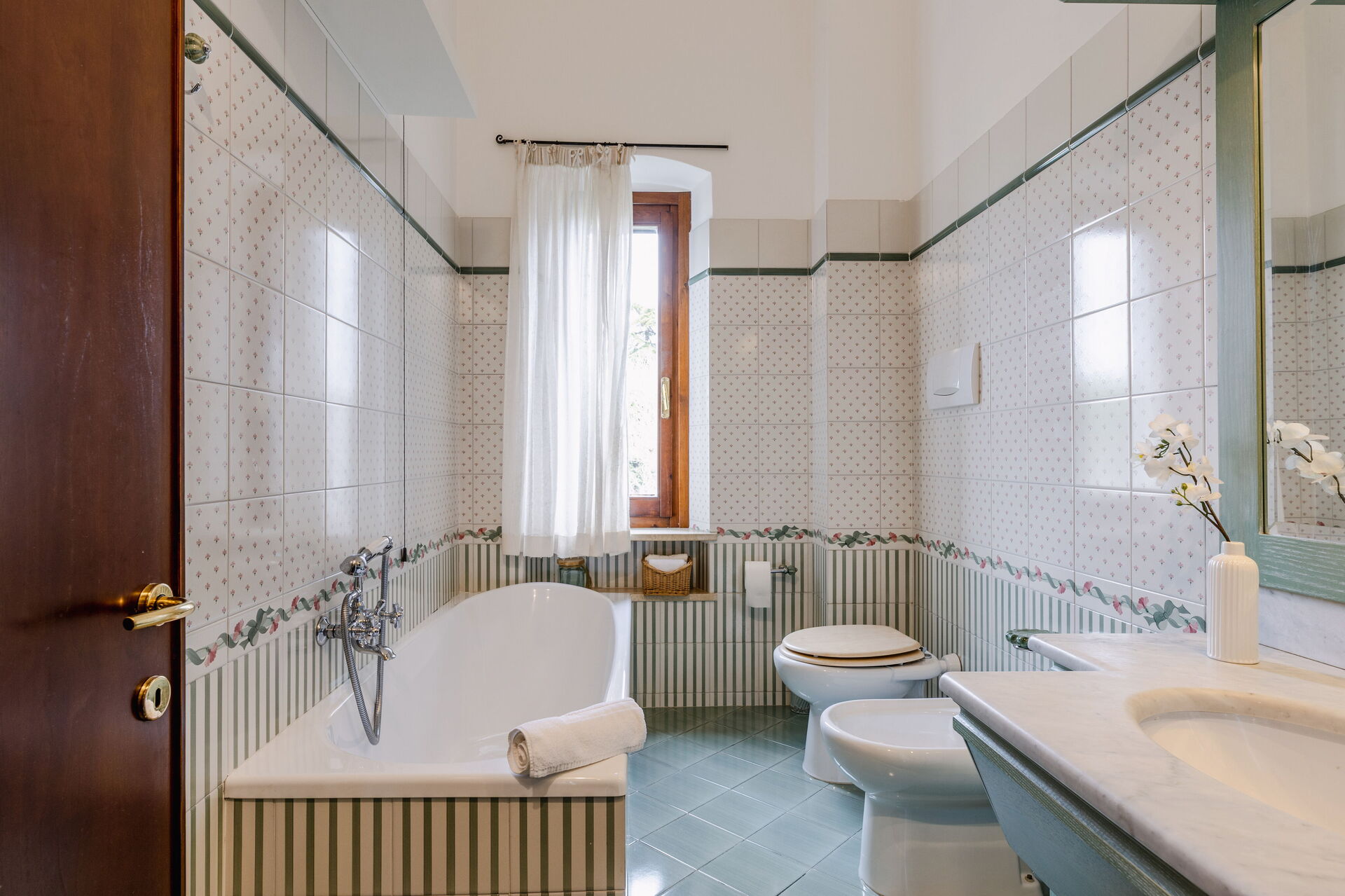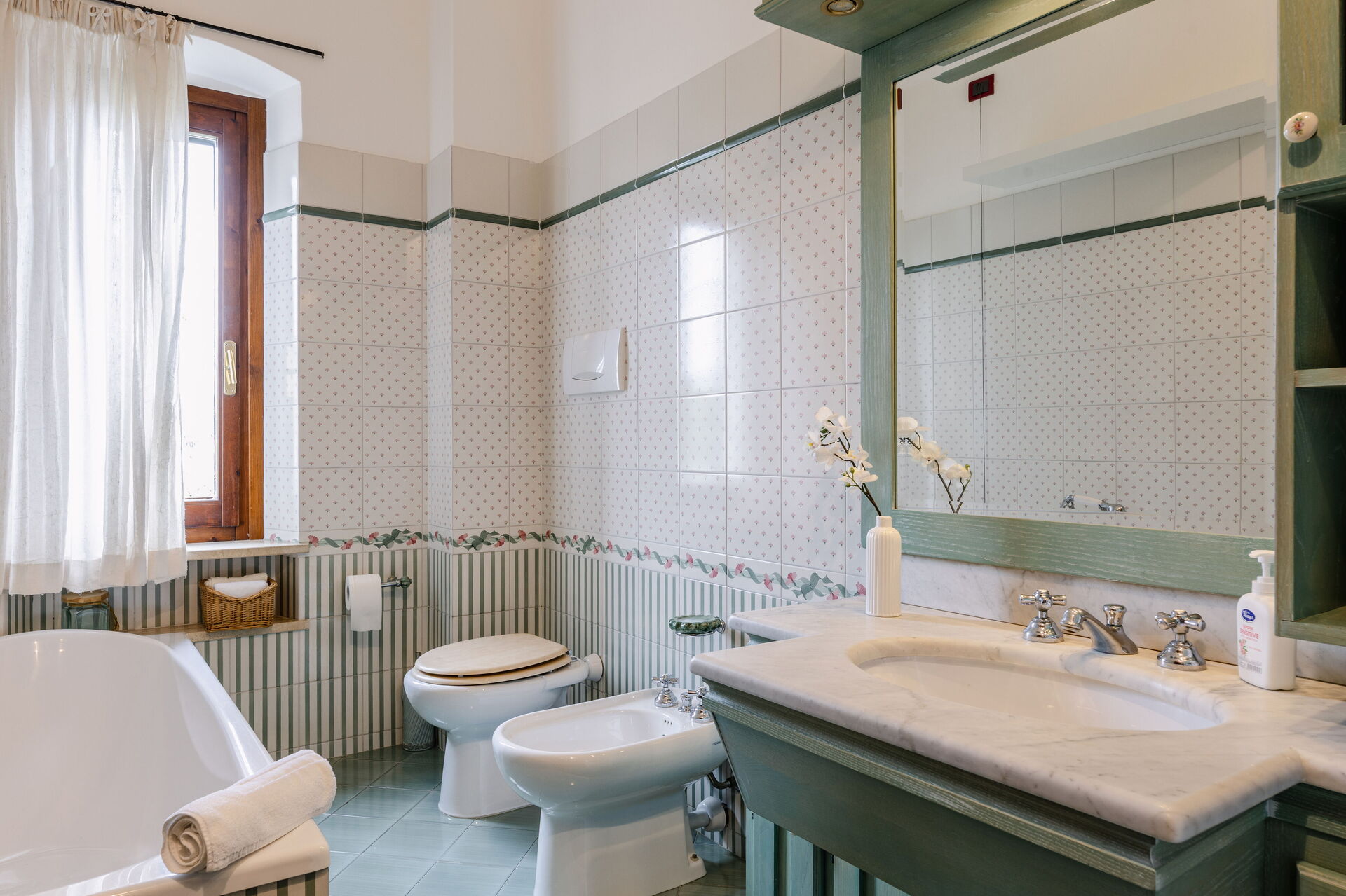 Bathroom 2: basin, toilet, bidet, bathtub, shower, iron, hairdryer.