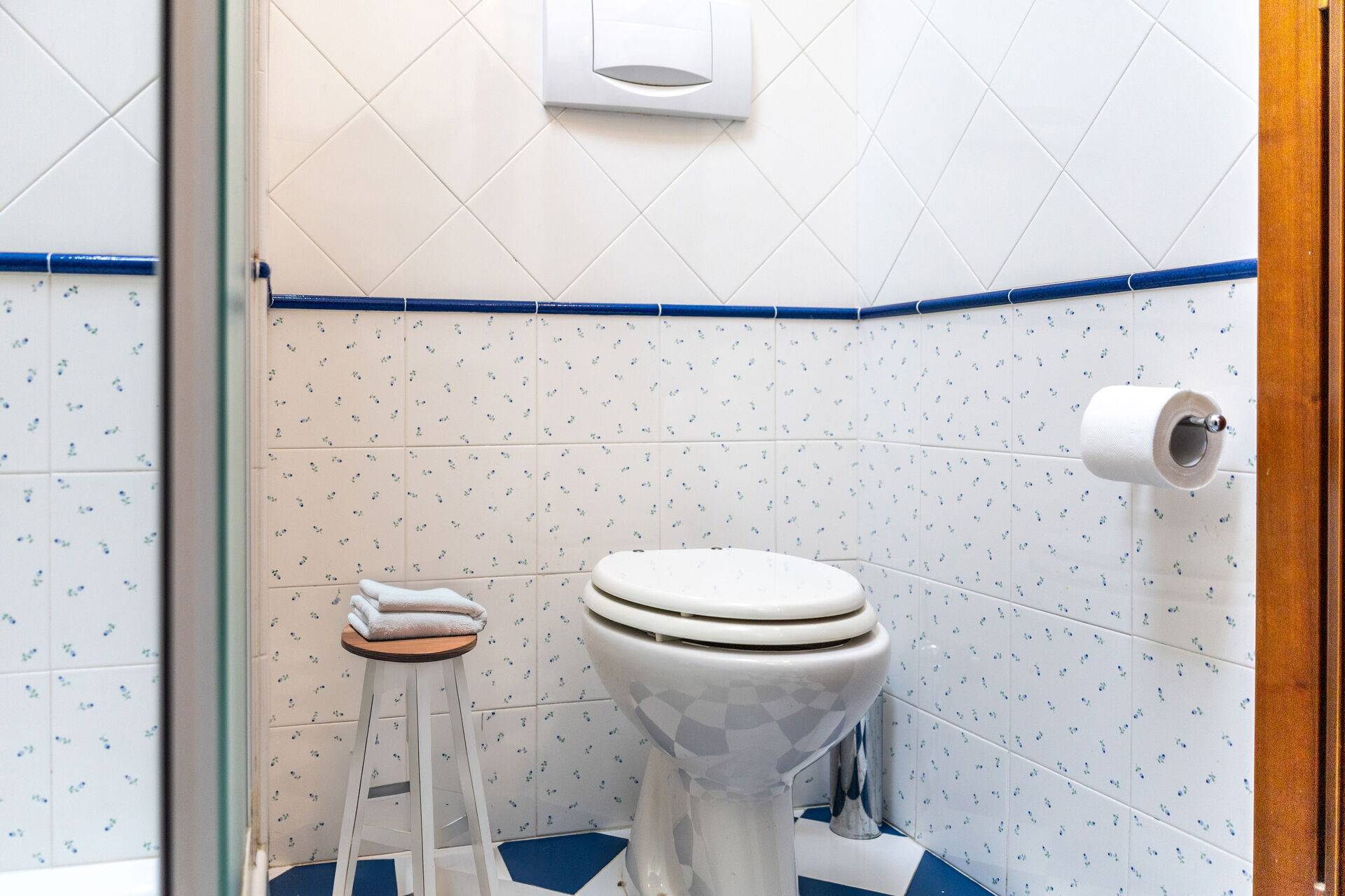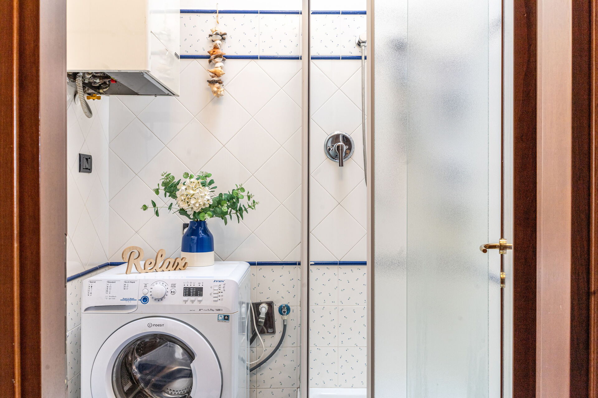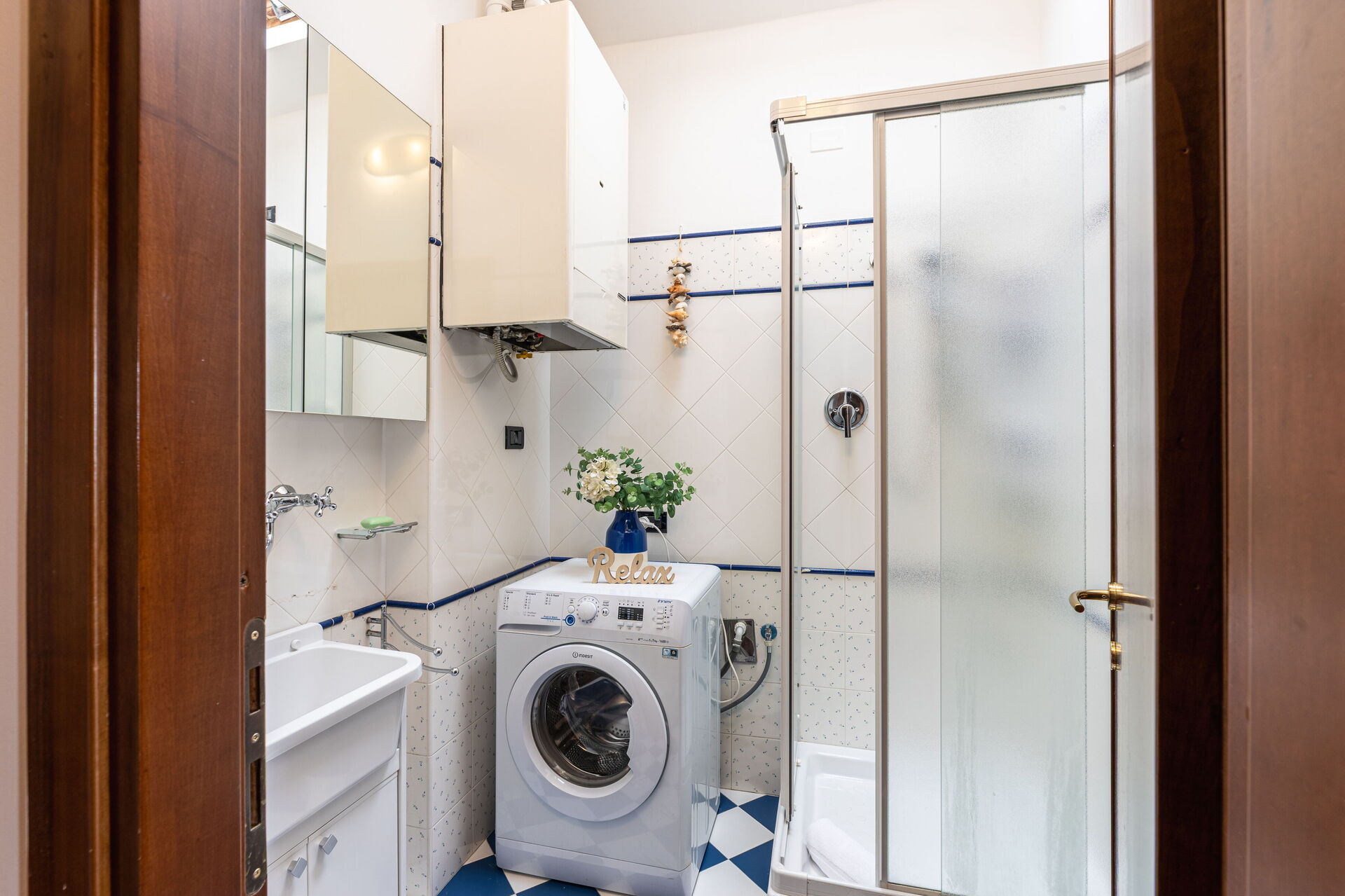 Bathroom 1: basin, toilet, shower, hairdryer, washing machine.