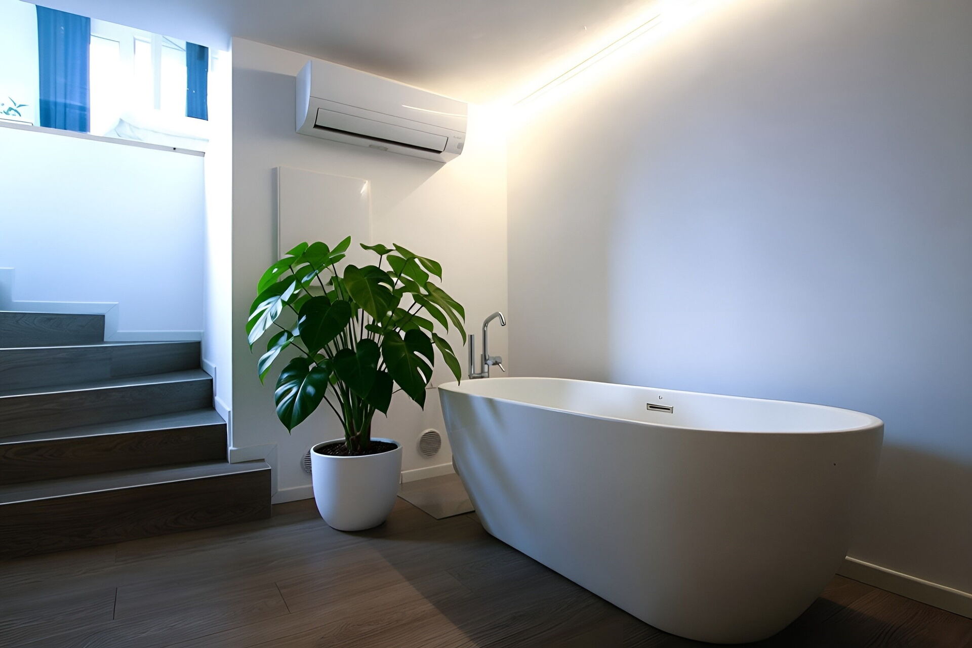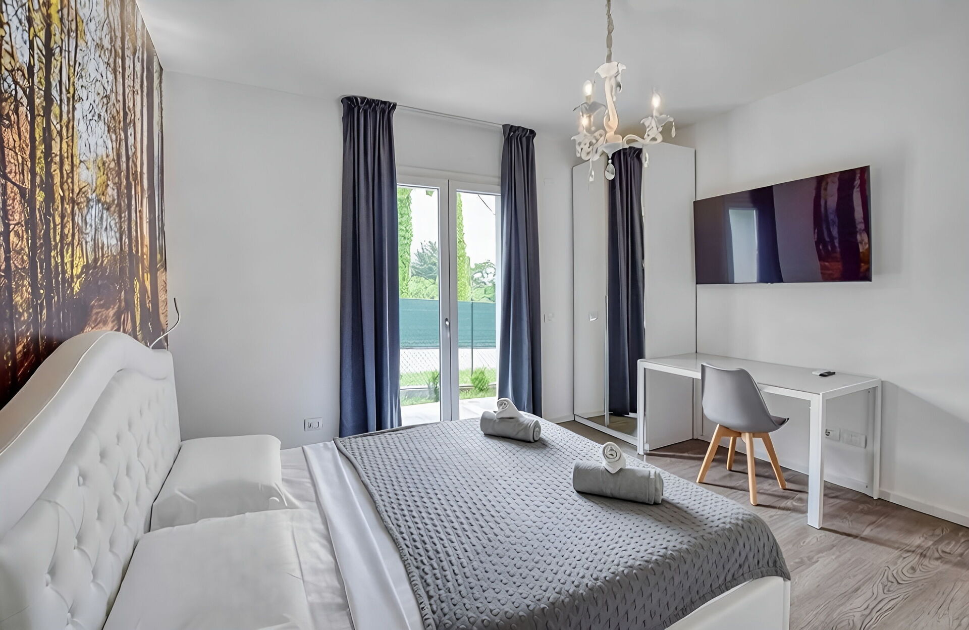 Bedroom + Ensuite Bathroom 1: double bed, WIFI internet, air conditioning, television, basin, toilet, bidet, bathtub, shower, hairdryer, exit to the garden.