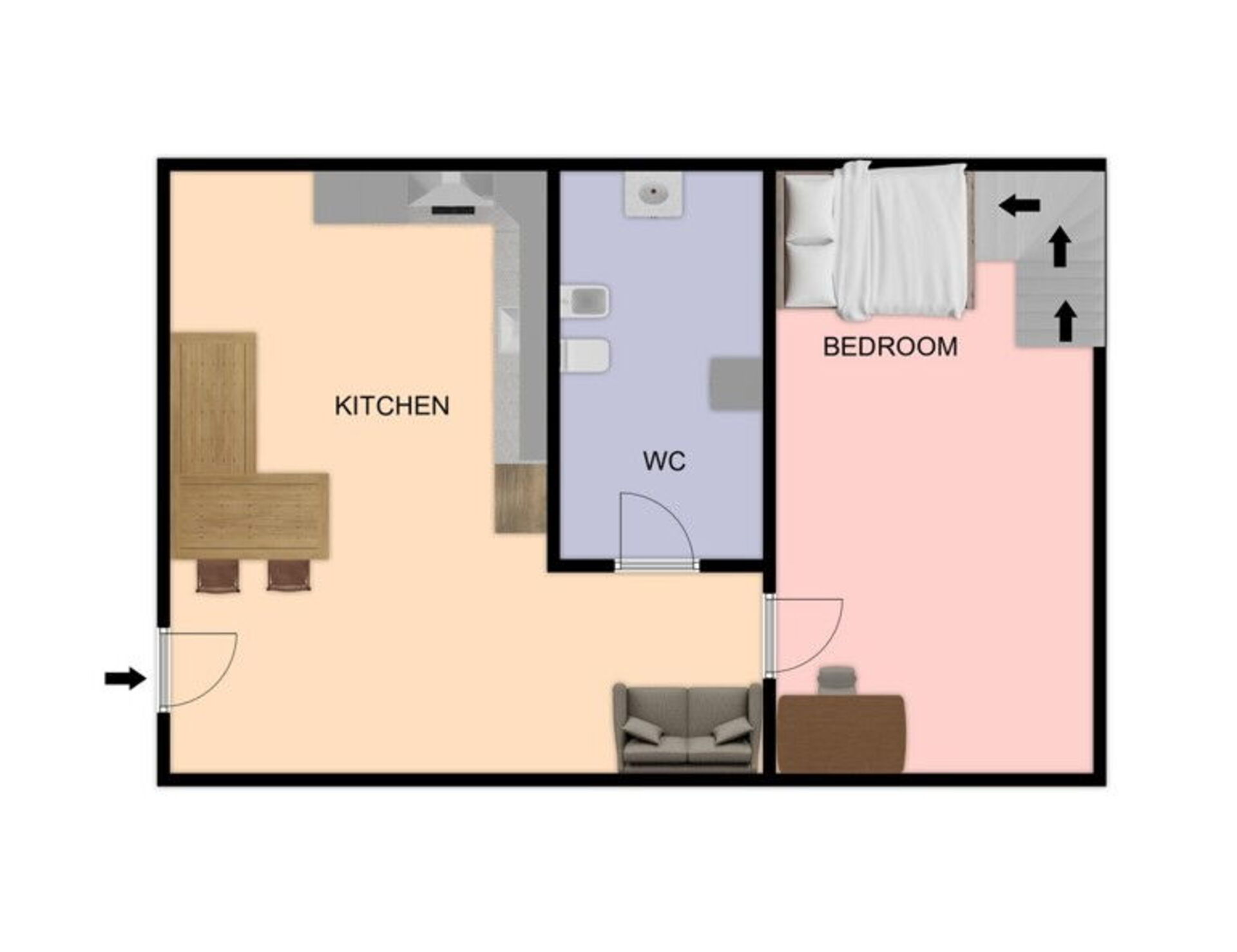 Bedroom: double bed, sofa bed double, WIFI internet, air conditioning, armchair, working desk.