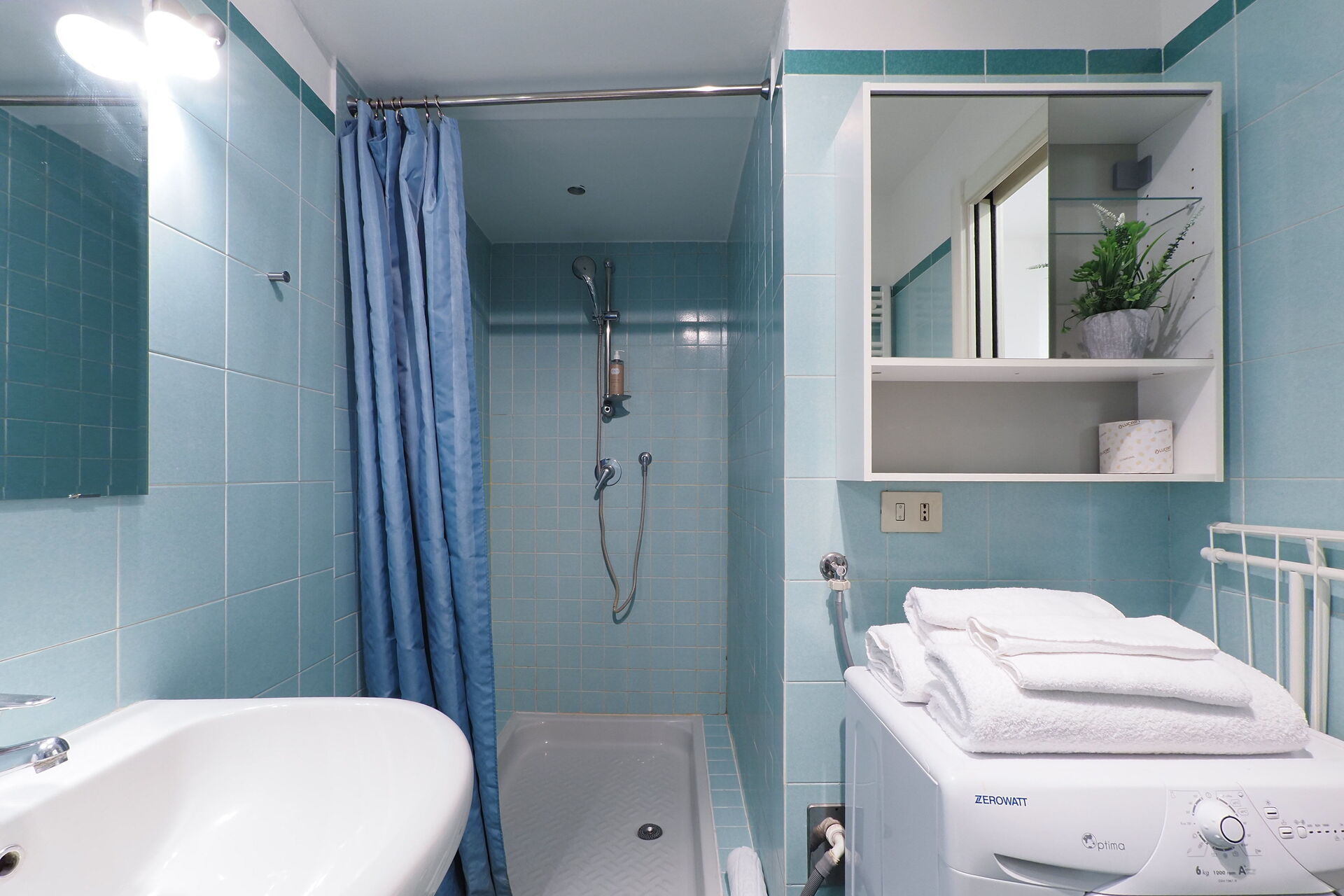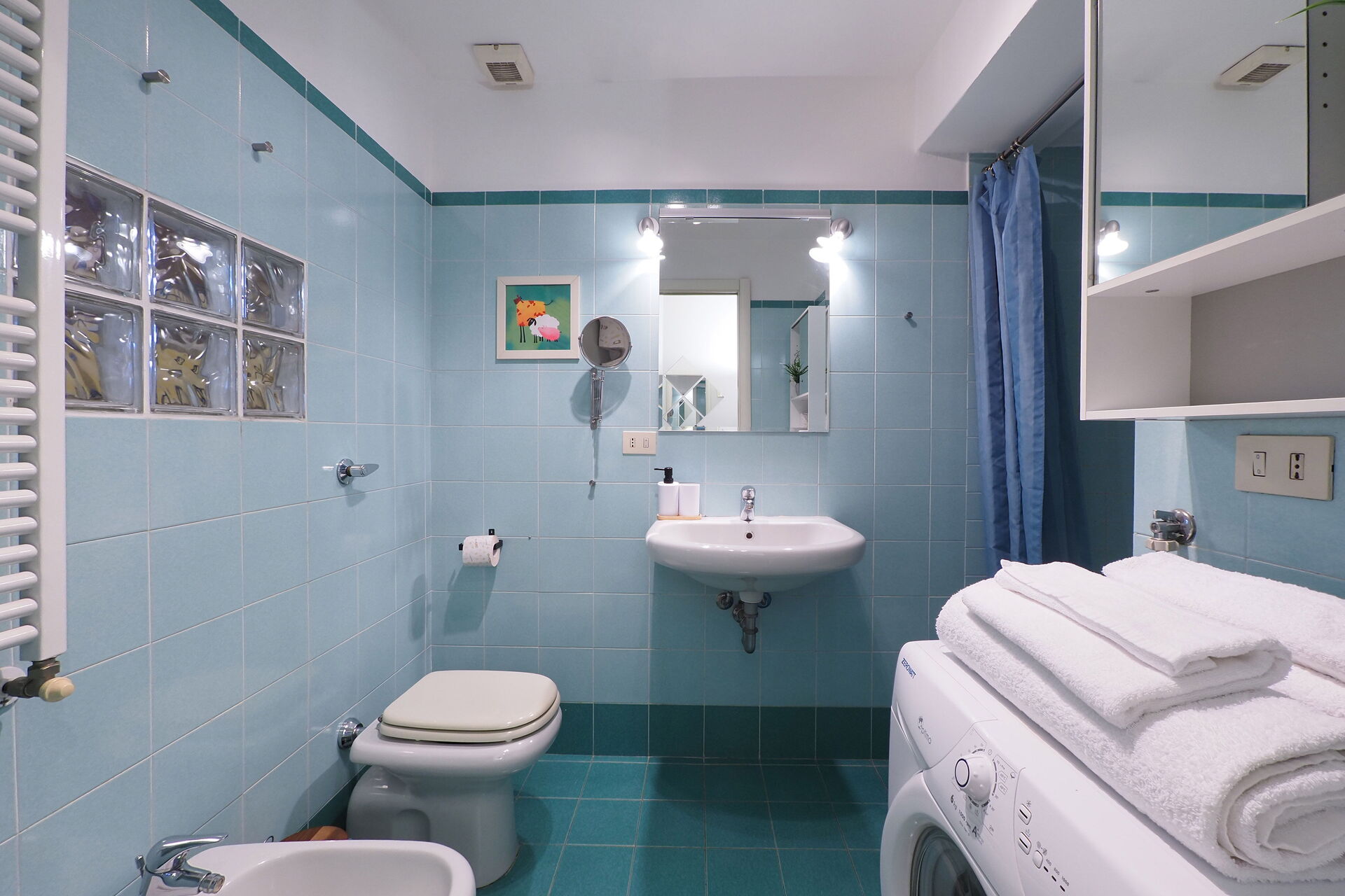 Bathroom: basin, toilet, bidet, shower, hairdryer, washing machine.