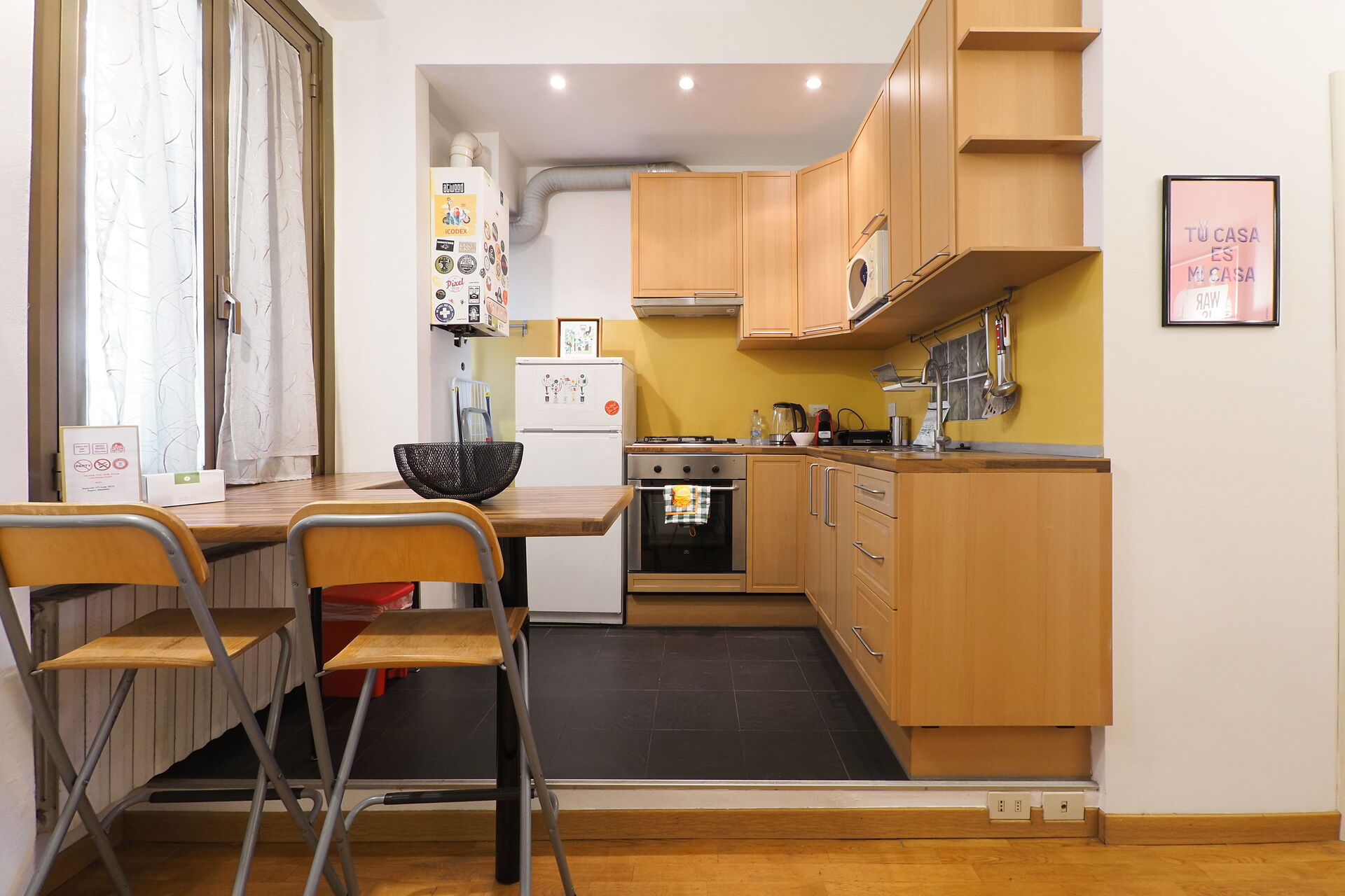 Kitchen: well equipped kitchen, dining table, fridge, freezer, stove top, oven, italian coffee machine, american coffee machine, WIFI internet, smoke detector, co2 detector.